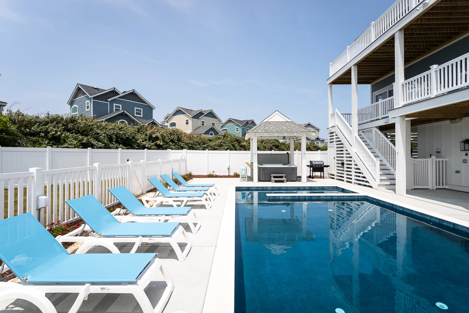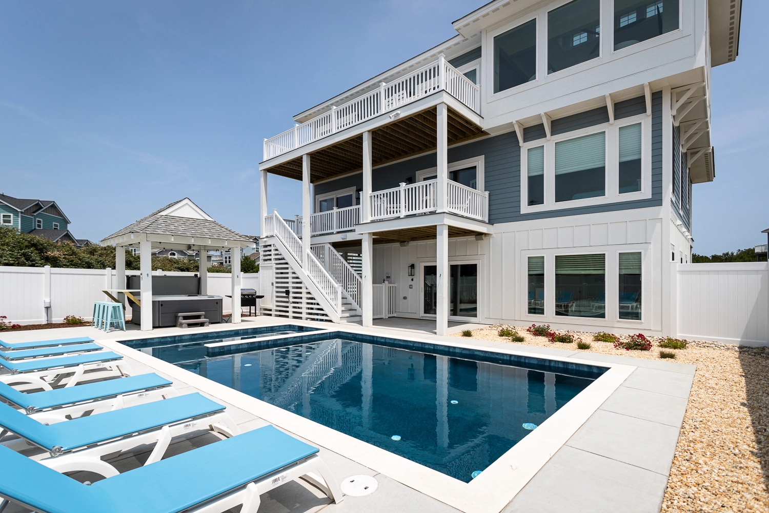 "The layout of the house was absolutely perfect! We very much appreciated the kids bunk room being on the 2nd level rather than all the way down on the bottom level in most houses for safety reasons. Every bedroom being a king master made every room "the best one" and was perfect for our families. The game room/wet bar and walkout to the pool was extremely convenient and made hanging out at the house very enjoyable! We've stayed in the outer banks more than a handful of times and this was by far our favorite house!"