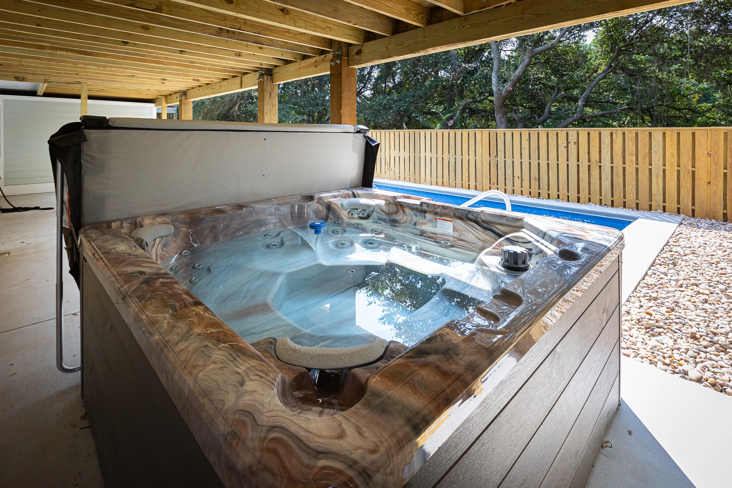 Private pool, hot tub, outdoor shower. Access to Monteray Shores community pool, tennis and pickleball courts.