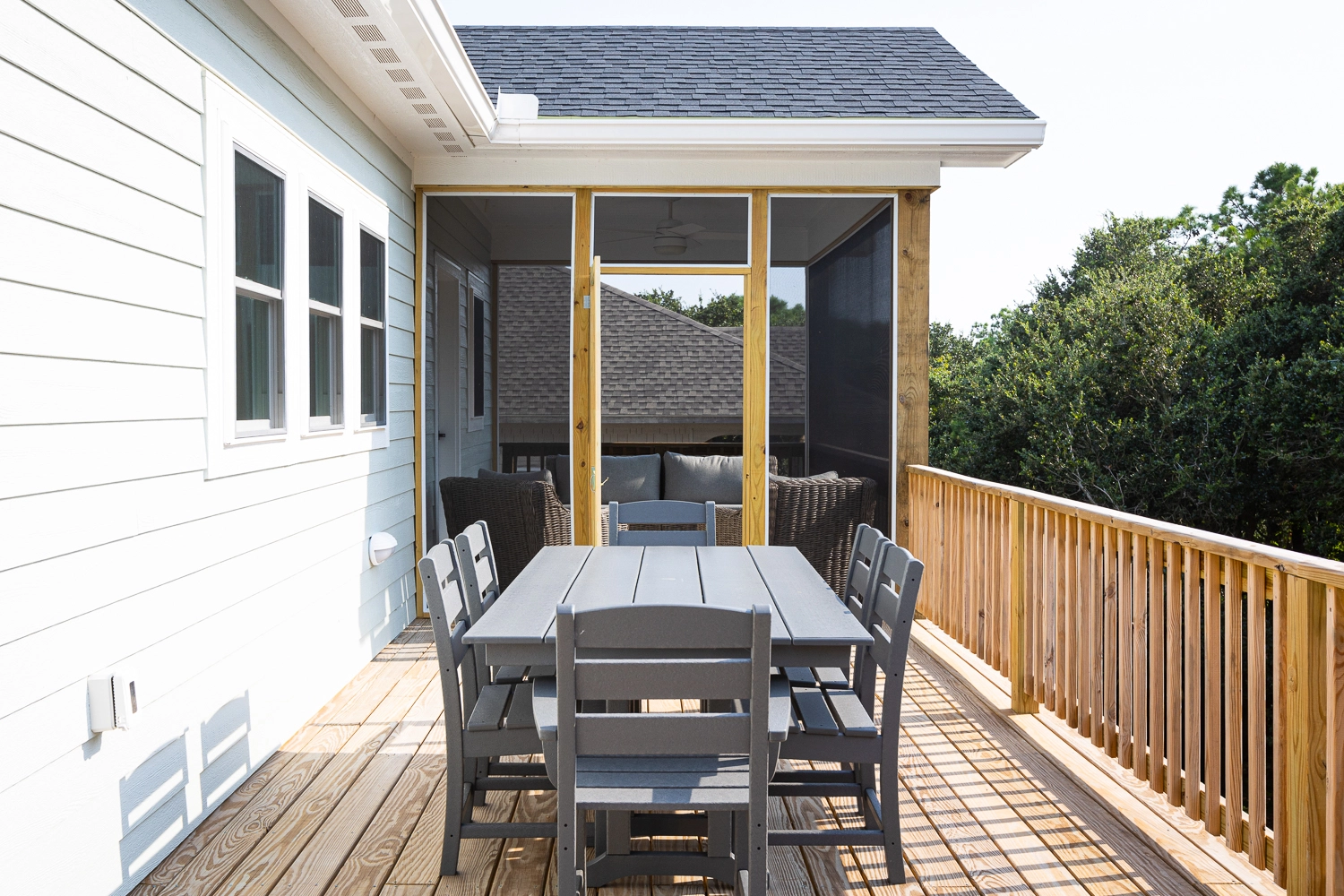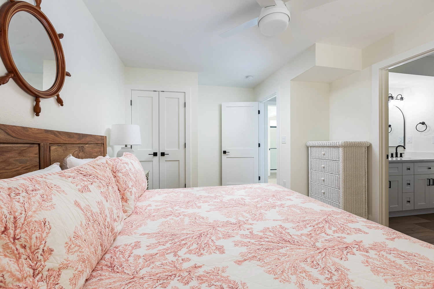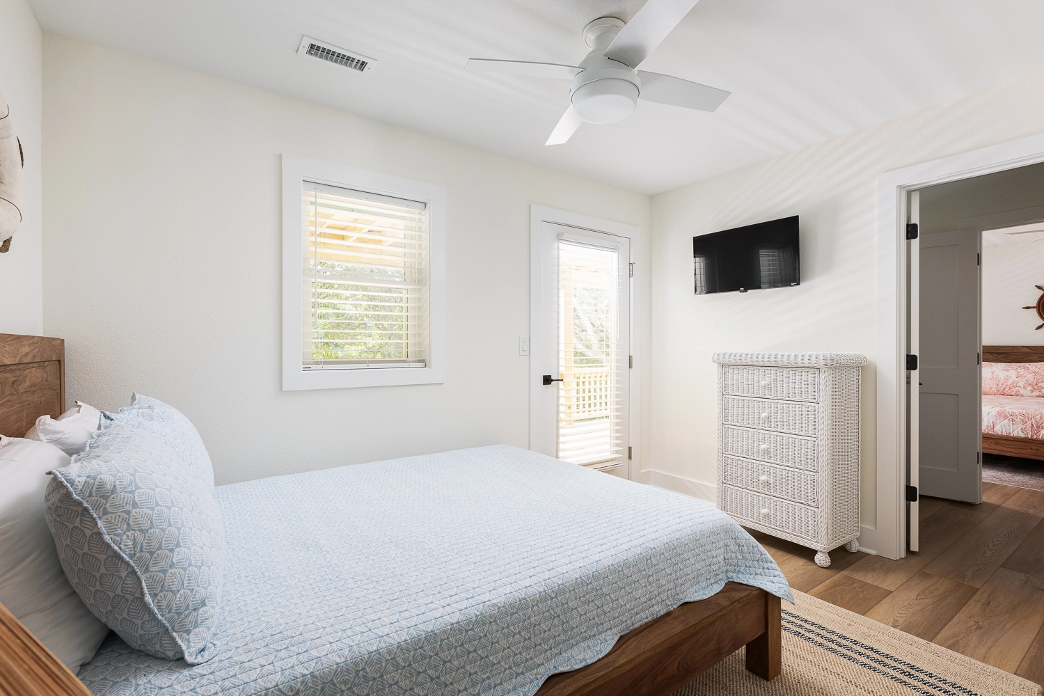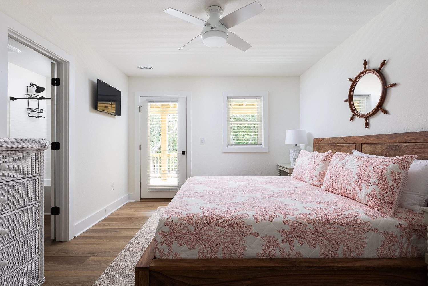 Queen, Shared bath with Room 1, Shower/tub combo, Deck access