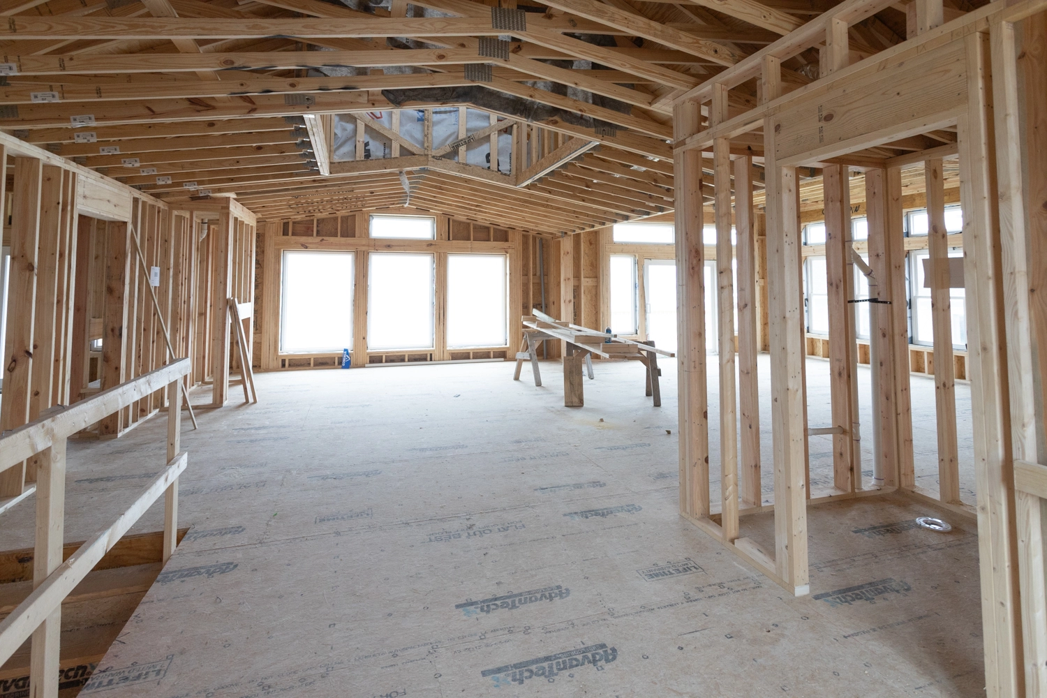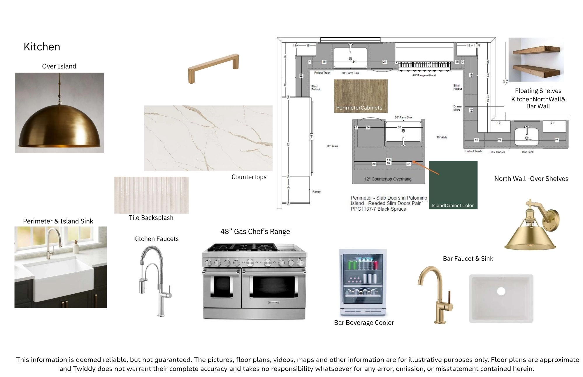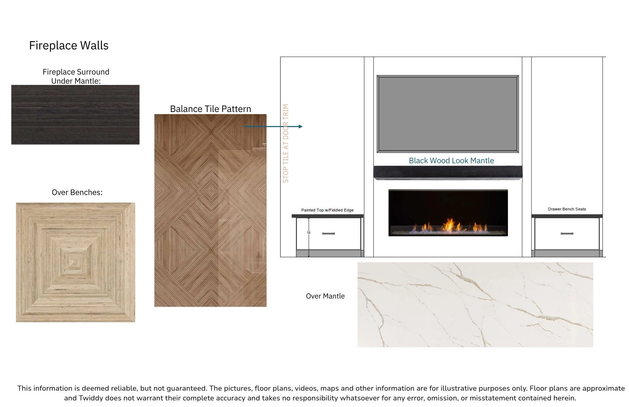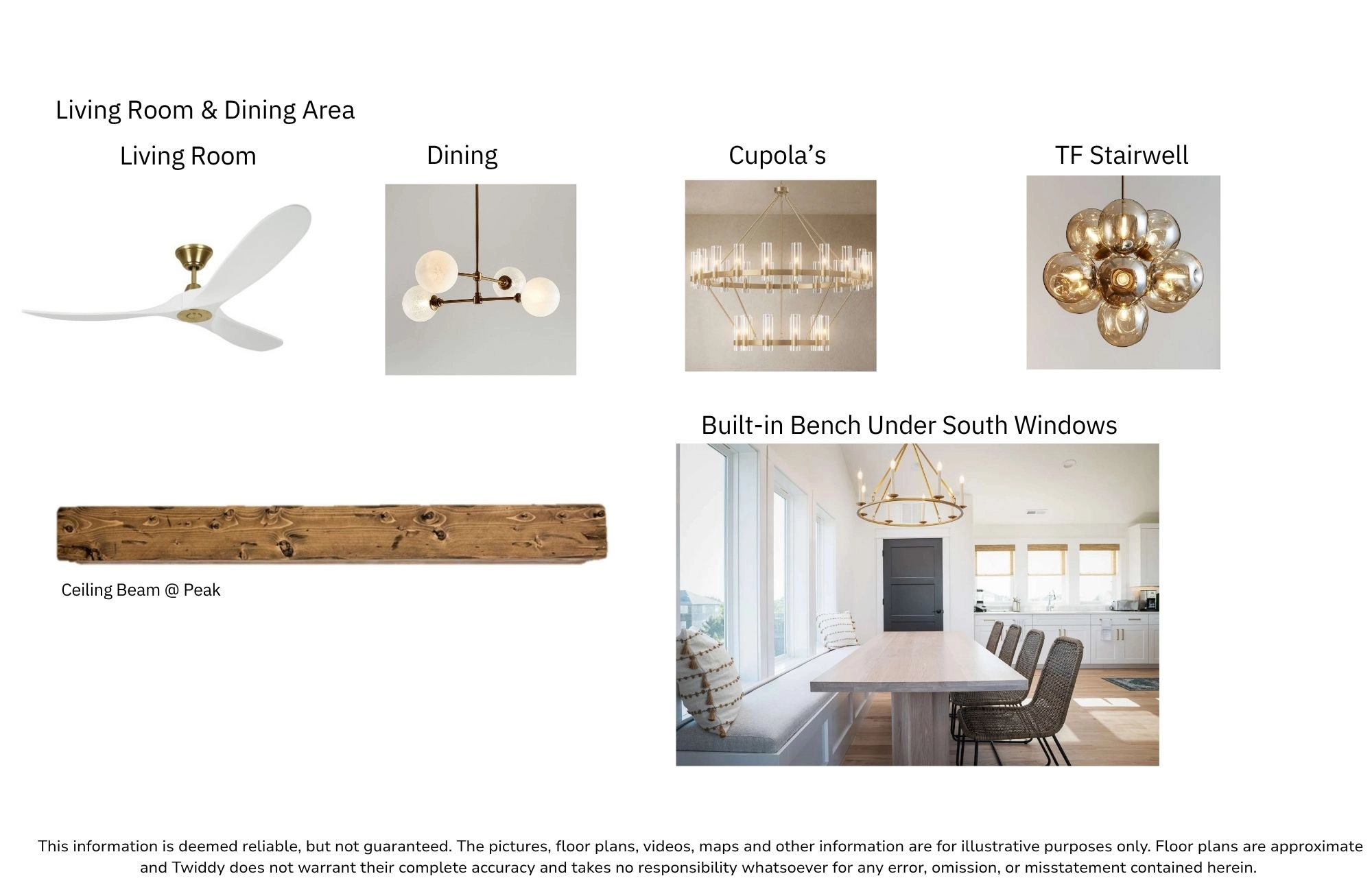 Great room with gas fireplace and shuffleboard; kitchen; dining area.