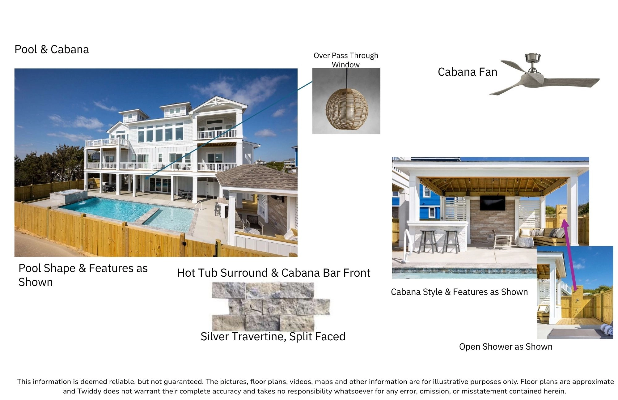 Elevator, private pool with tanning ledge and optional pool heat, poolside cabana, hot tub, gas grill, and fenced-in dog run. For 2026, beach cabana service provided May 24 - September 11 only (provides morning set-up and afternoon take-down of a tent and 6 beach chairs), service provided by Mac Bros. Beach Setup, contact them for add-ons for a fee, 252-435-4586.