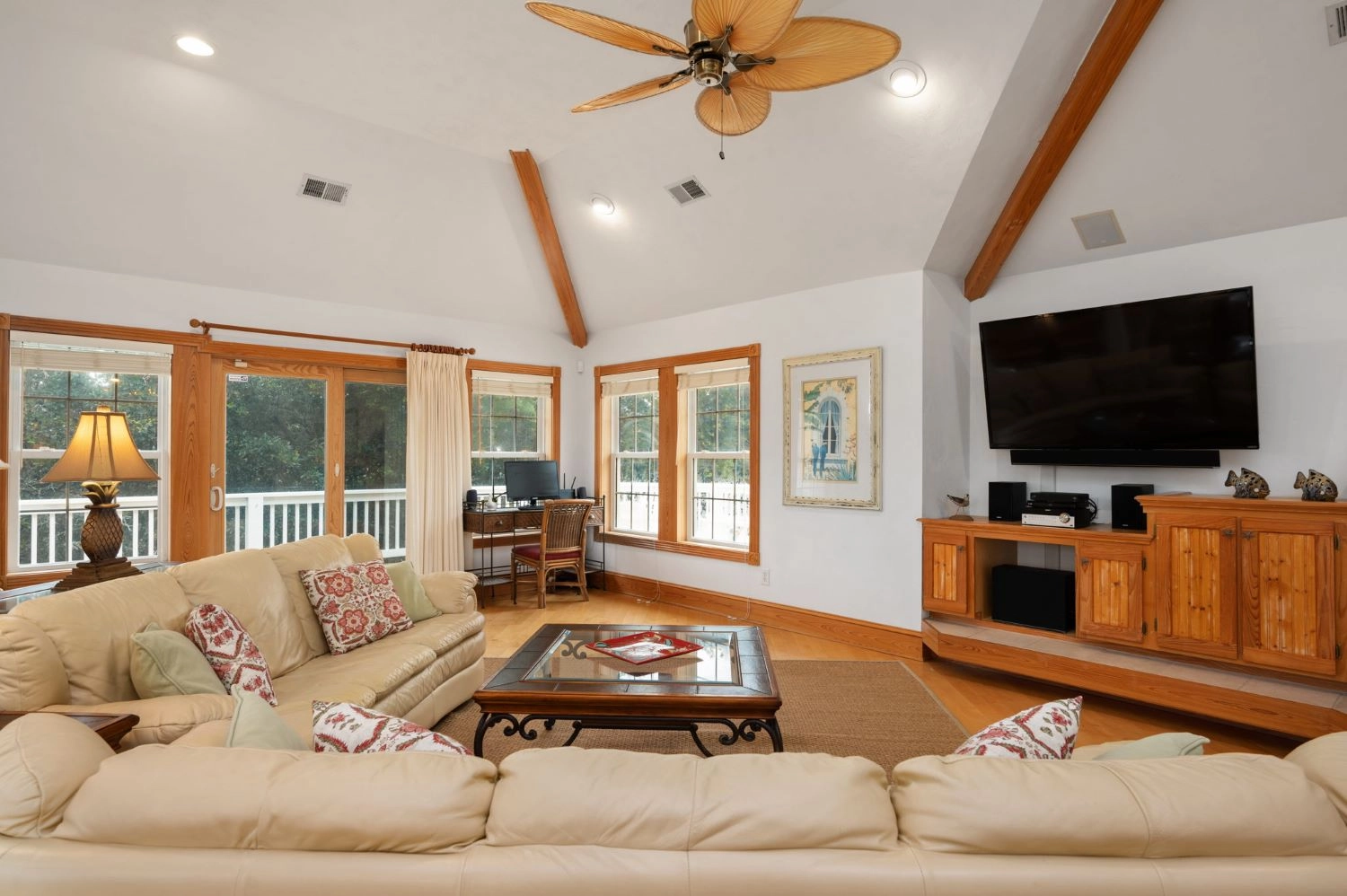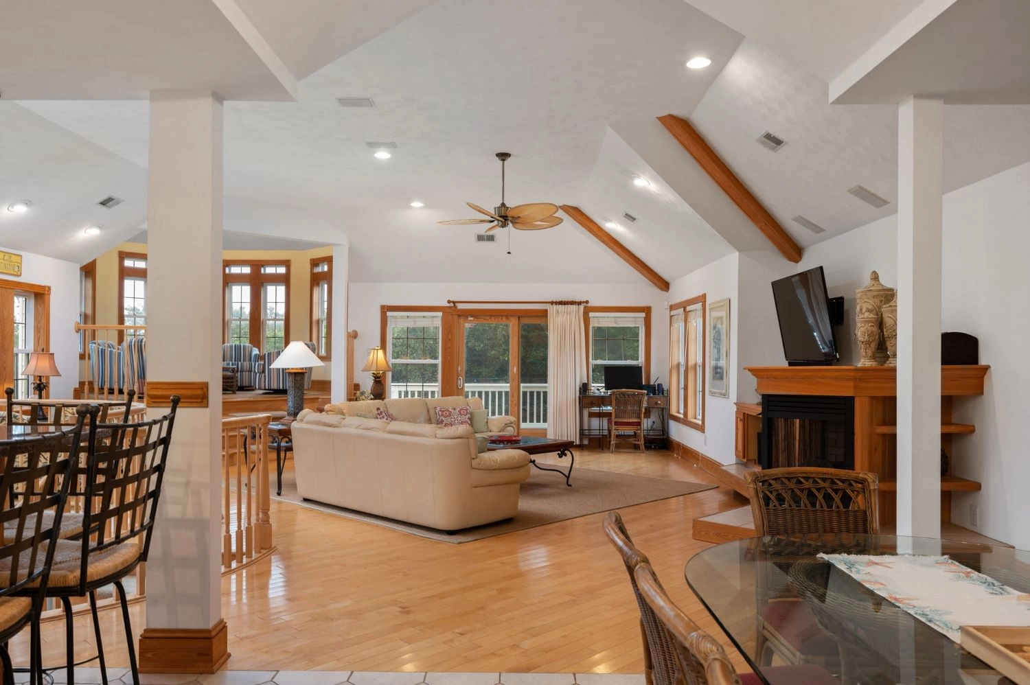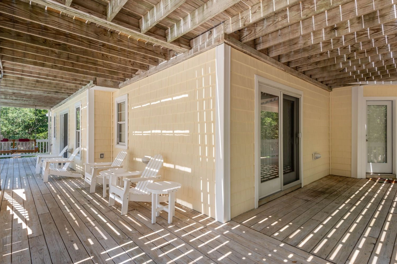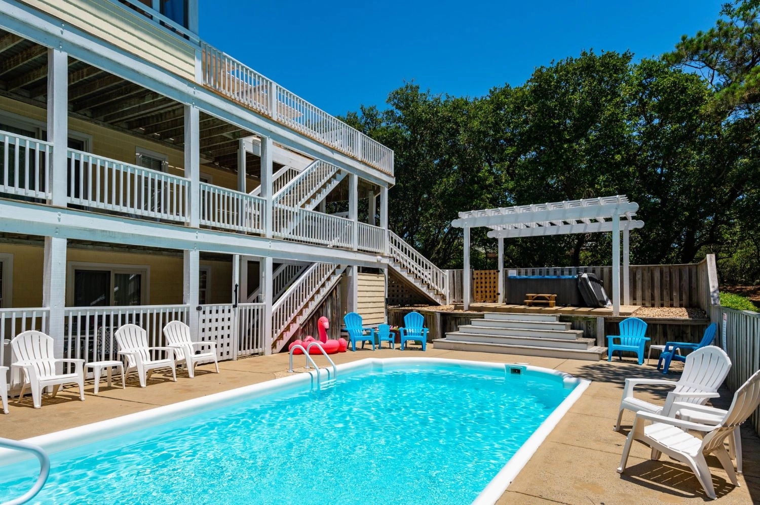 "spacious house for the seven of us (3 generations) beautifully decorated & in perfect condition lawn & surrounding plants beautifully maintained furniture like new pool is beautiful & well kept deck & poolside furniture sturdy & clean short walk to the dune & beach beach is on a private road & well kept & few people kitchen well furnished wifi access perfect"