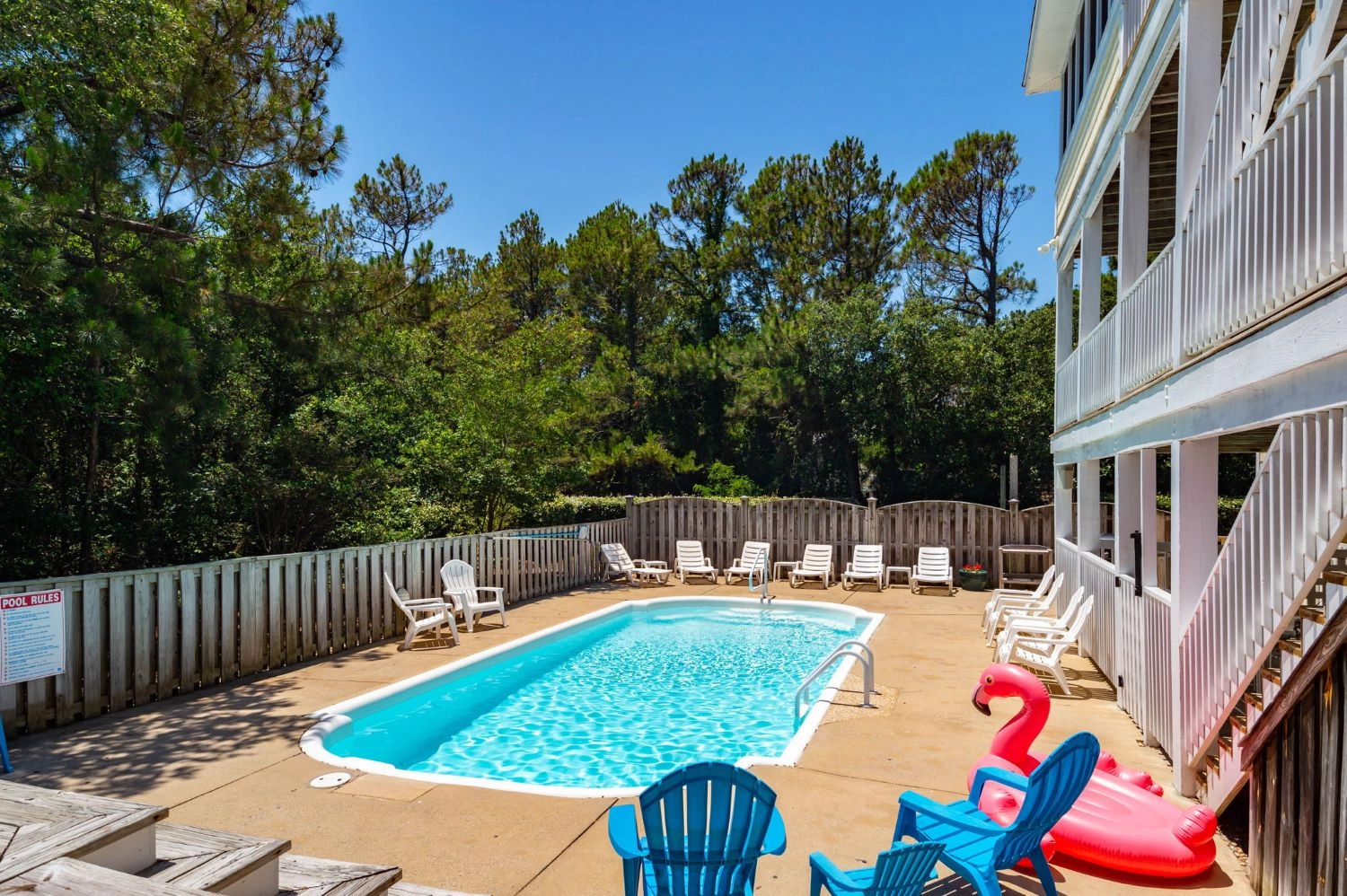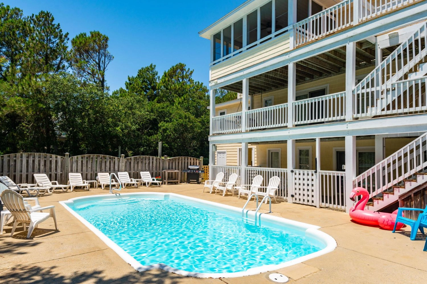 Private pool with optional pool heat, hot tub, gas grill, basketball goal.