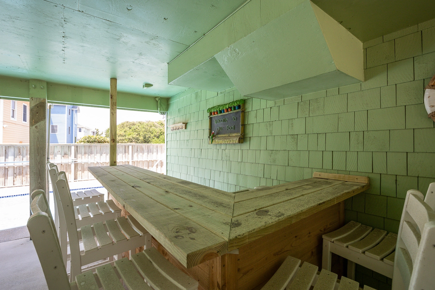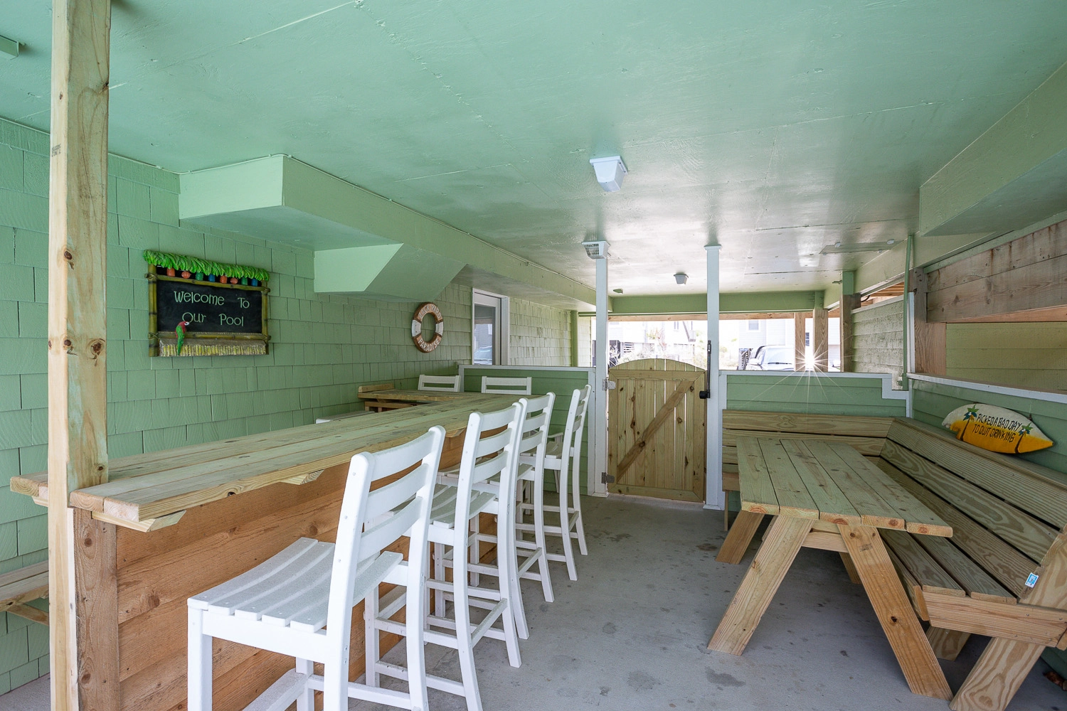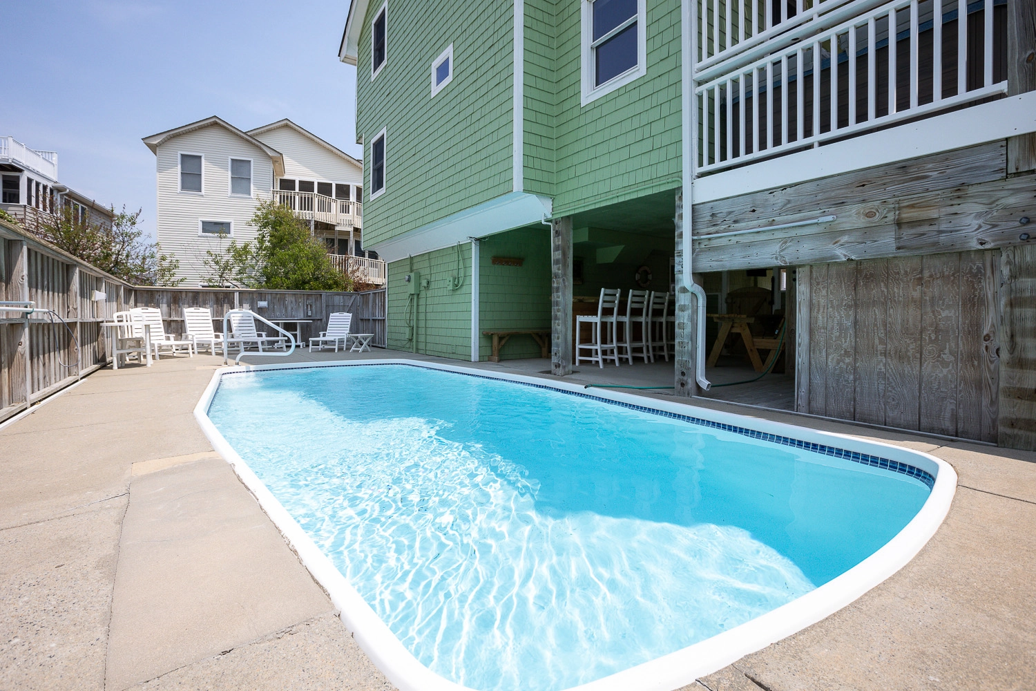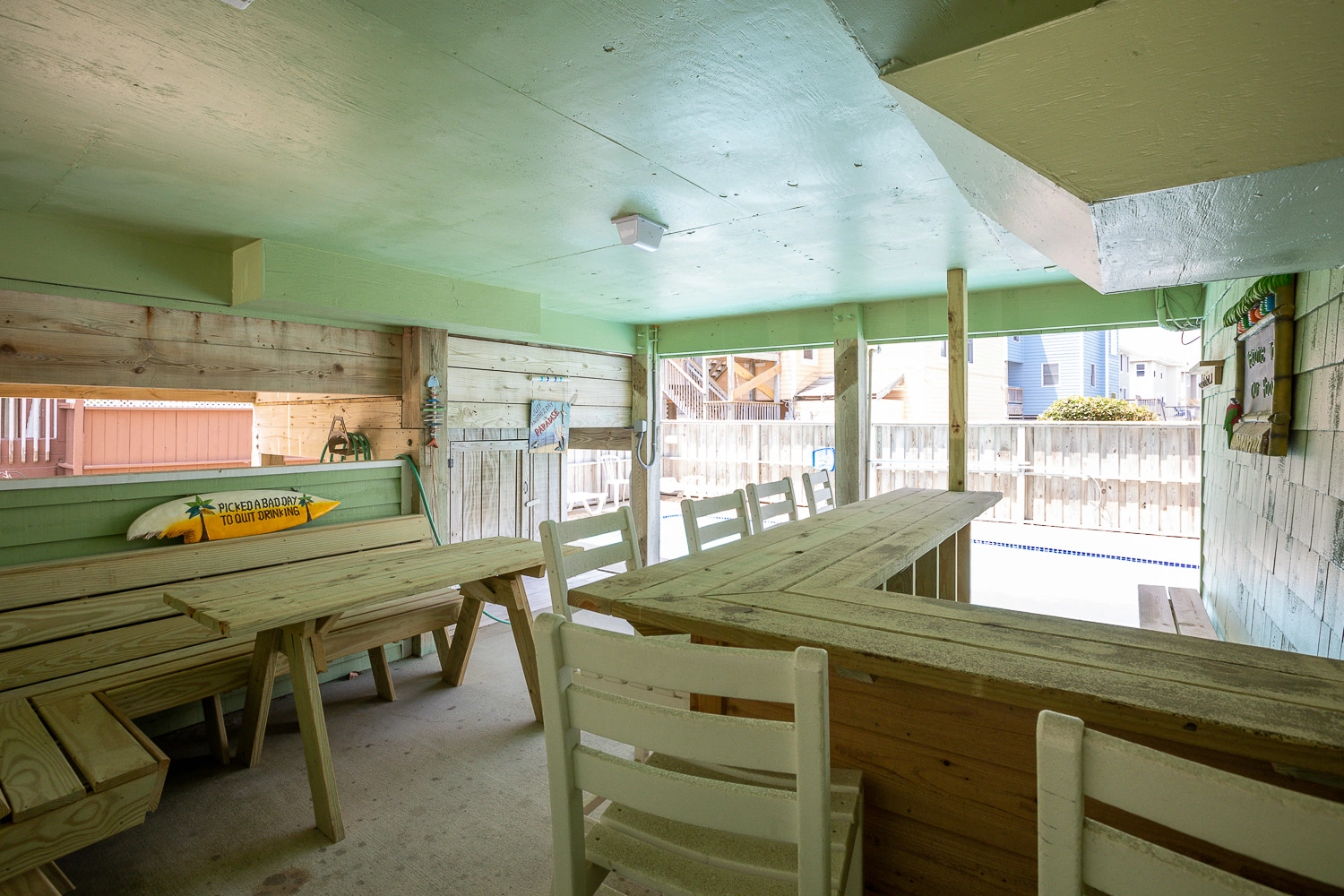 Laundry; refrigerator; patio with gated private pool, tiki bar and two outside showers.