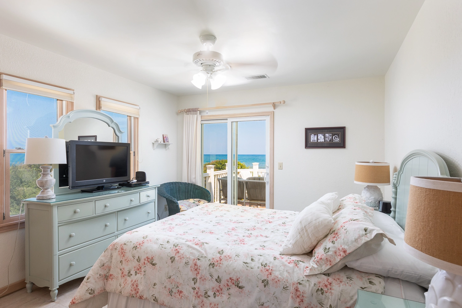 "Our stay at Ocean Sunrise was wonderful! The location was perfect...the beach was quiet enough but we were also a short drive, walk, or bike ride to shops. The view from the living room and balcony was breathtaking and even with kids and all their belongings the walk to and from the beach was a breeze. The house was well maintained and had everything we needed. The kitchen was fully stocked with cookware, Tupperware, utensils and serving ware, there were several beach chairs, a basketball for the hoop, games, ample blankets and towels, etc. We would love to stay at Ocean Sunrise again in the future."