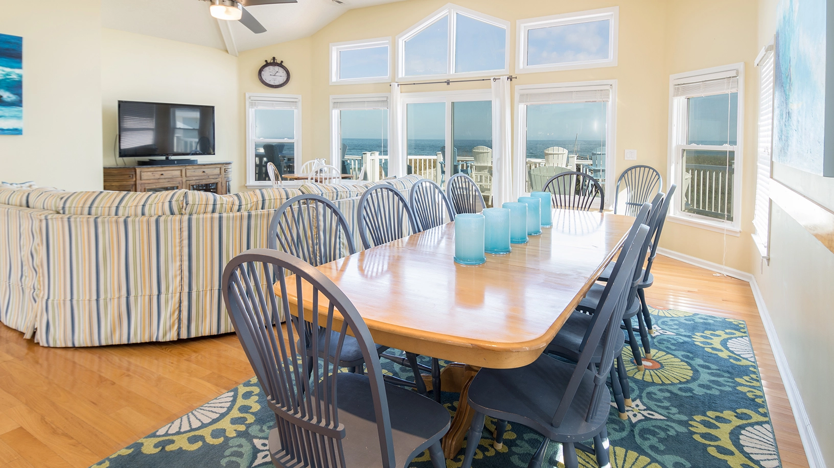 "We had a really nice week at Stayin' by the Sea. The house was well cleaned and organized, especially the kitchen. Loved the view of the ocean & the hot tub. Master bedroom mattress is really comfortable. The layout is a little different, probably because the house is right near the public beach access. So there is no stairway to get from the outdoor shower up to the deck or from the deck to the ocean walkway. We figured this is for security reasons. Overall, a good location - we walked to the bagel shop for coffee in the morning & could walk to the Food Lion. Also nice being near the Lighthouse & old town Corolla."
