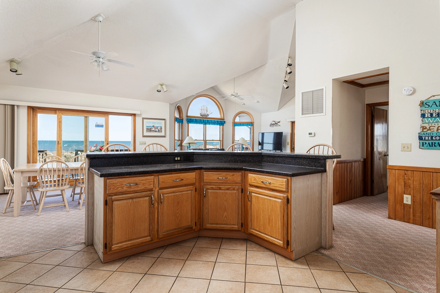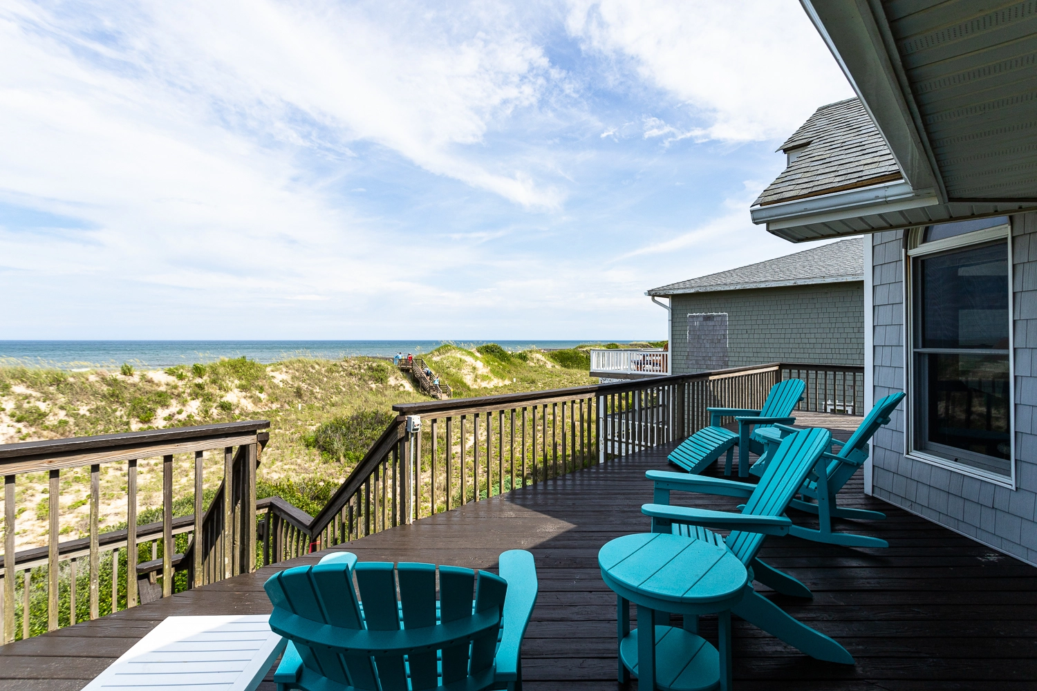 "Oceanfront. While not new, home has been very well maintained. Kitchen stocked with pots, pans, dishes, etc."