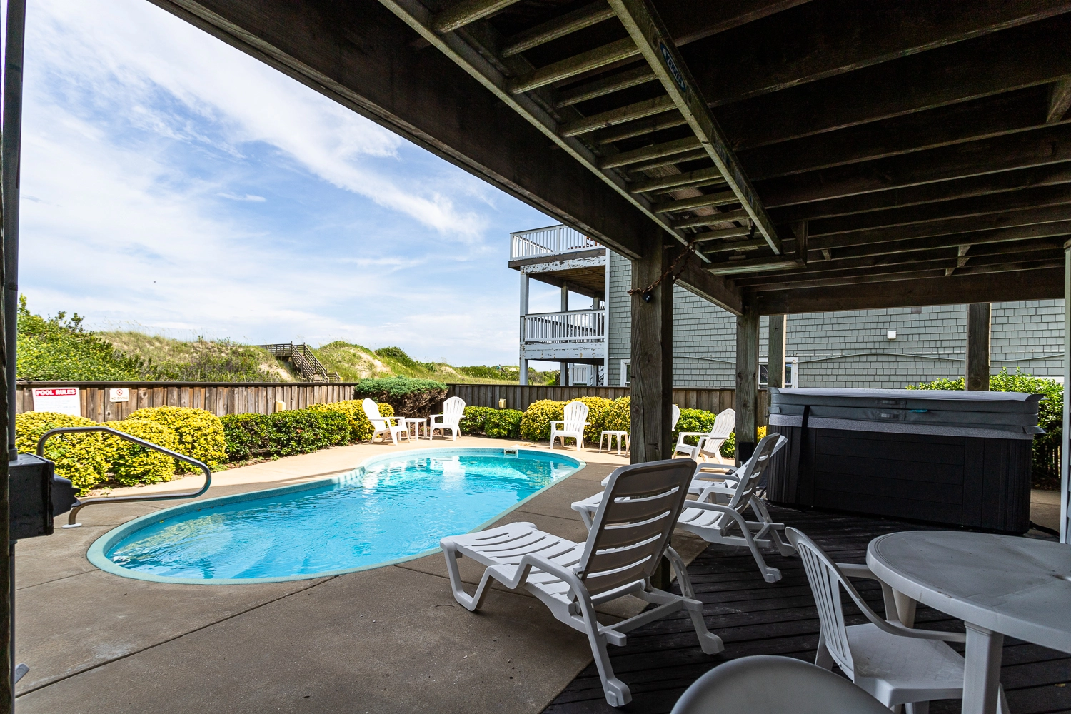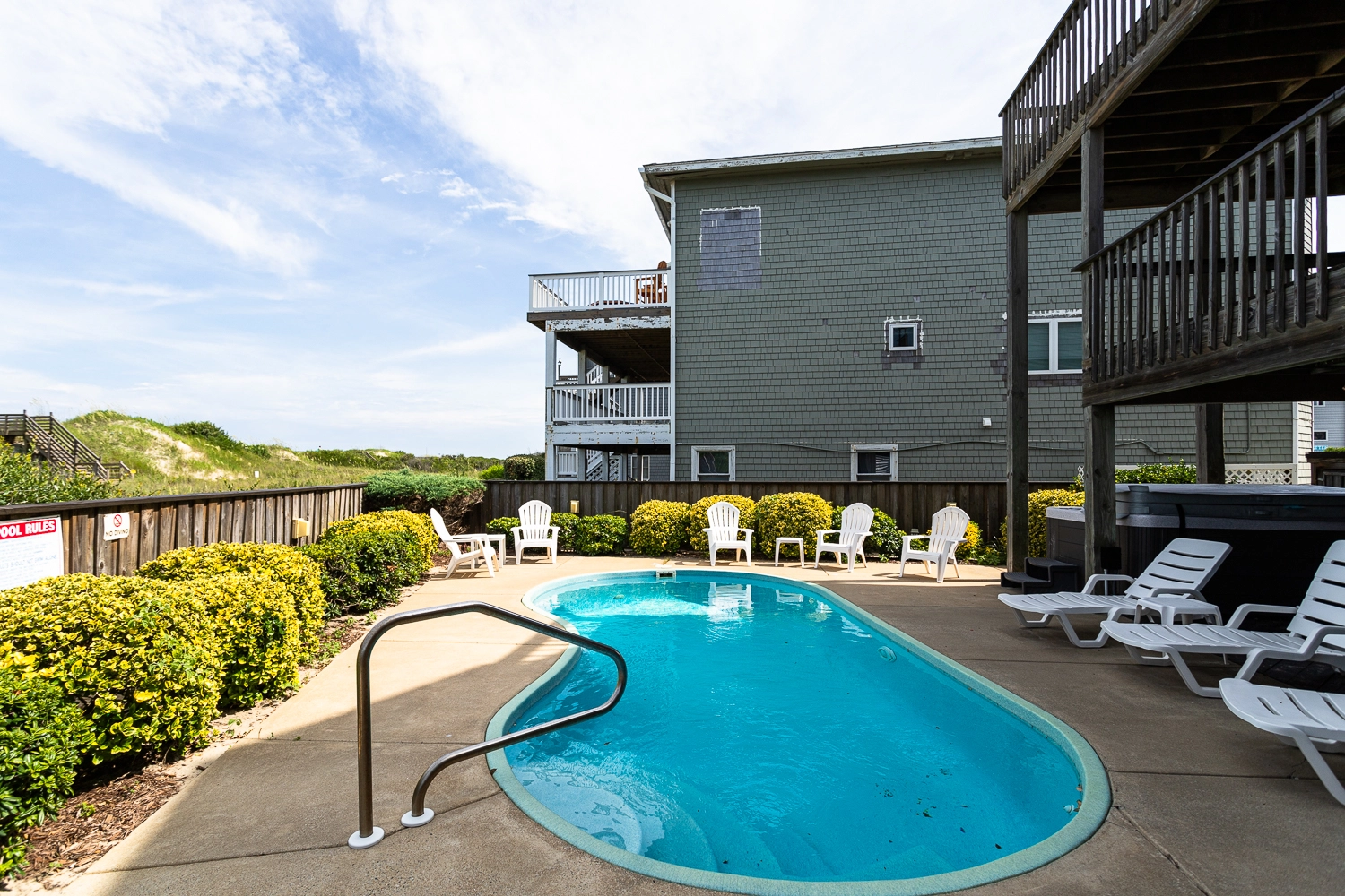 "We booked very last minute and The Mary Elizabeth was one of only a few oceanfront homes that were available at that time. We were very pleasantly surprised with how well laid-out and clean the home was. The kitchen was stocked with about any cookware or utensil you would need. Our extended family of 9 adults and 2 young children had ample space and comfortable bed options. The pool area is very nicely landscaped and the pool easily fit our group. Access to the beach was just a short walk past the neighboring house and over the common boardwalk so that was very convenient as well. Twiddy's check-in process was fast and efficient. Thanks for a fun and relaxing week on the Outer Banks!"