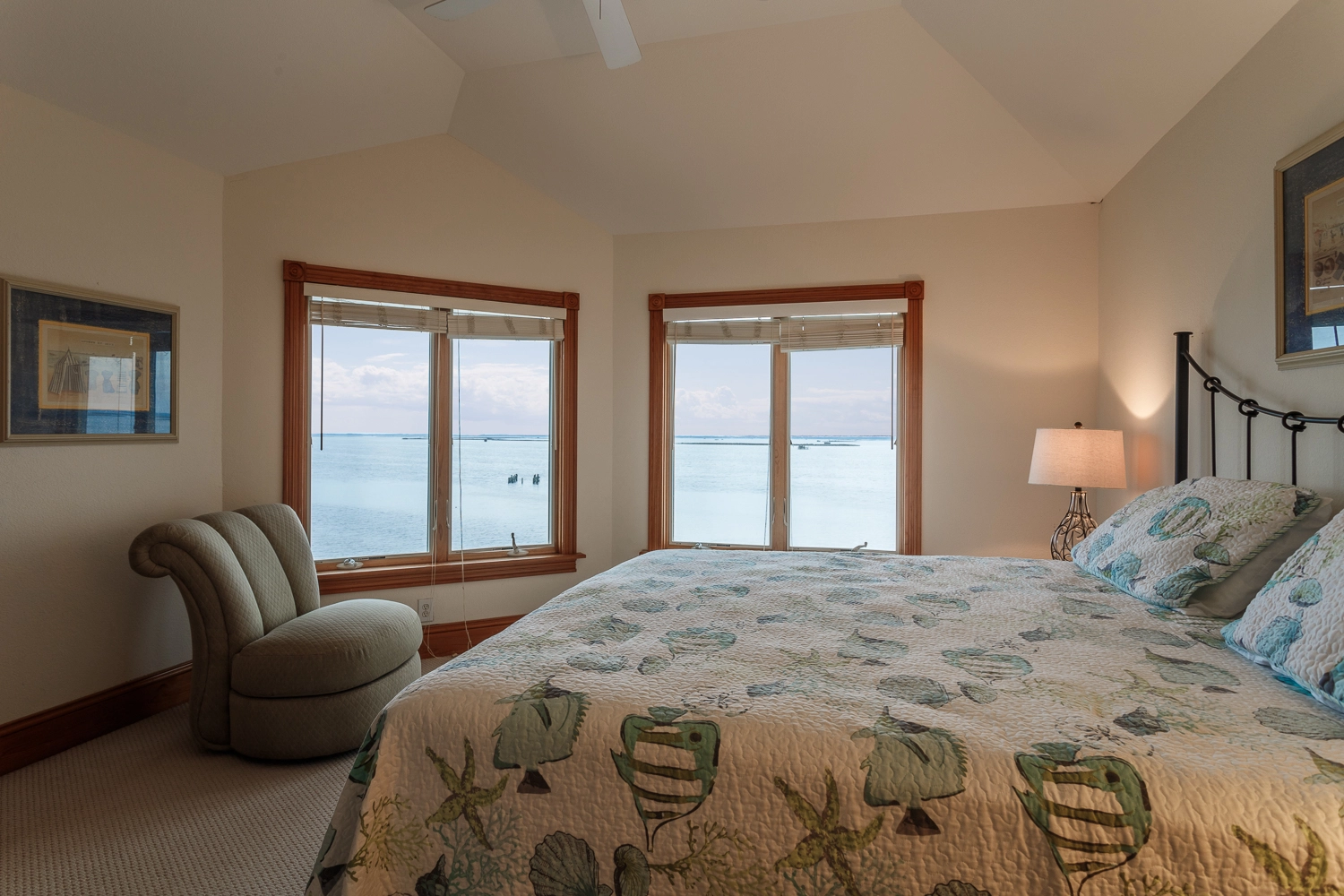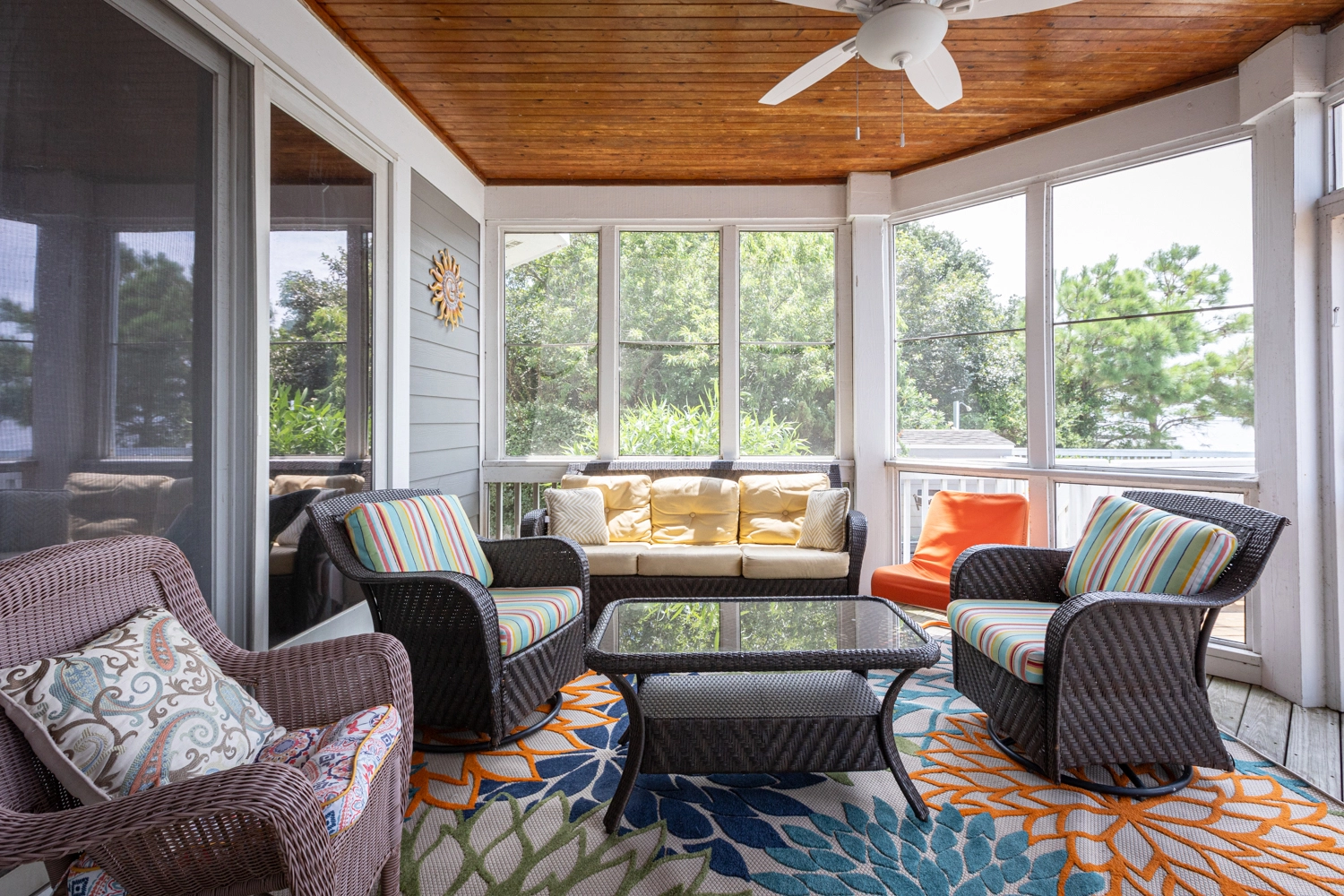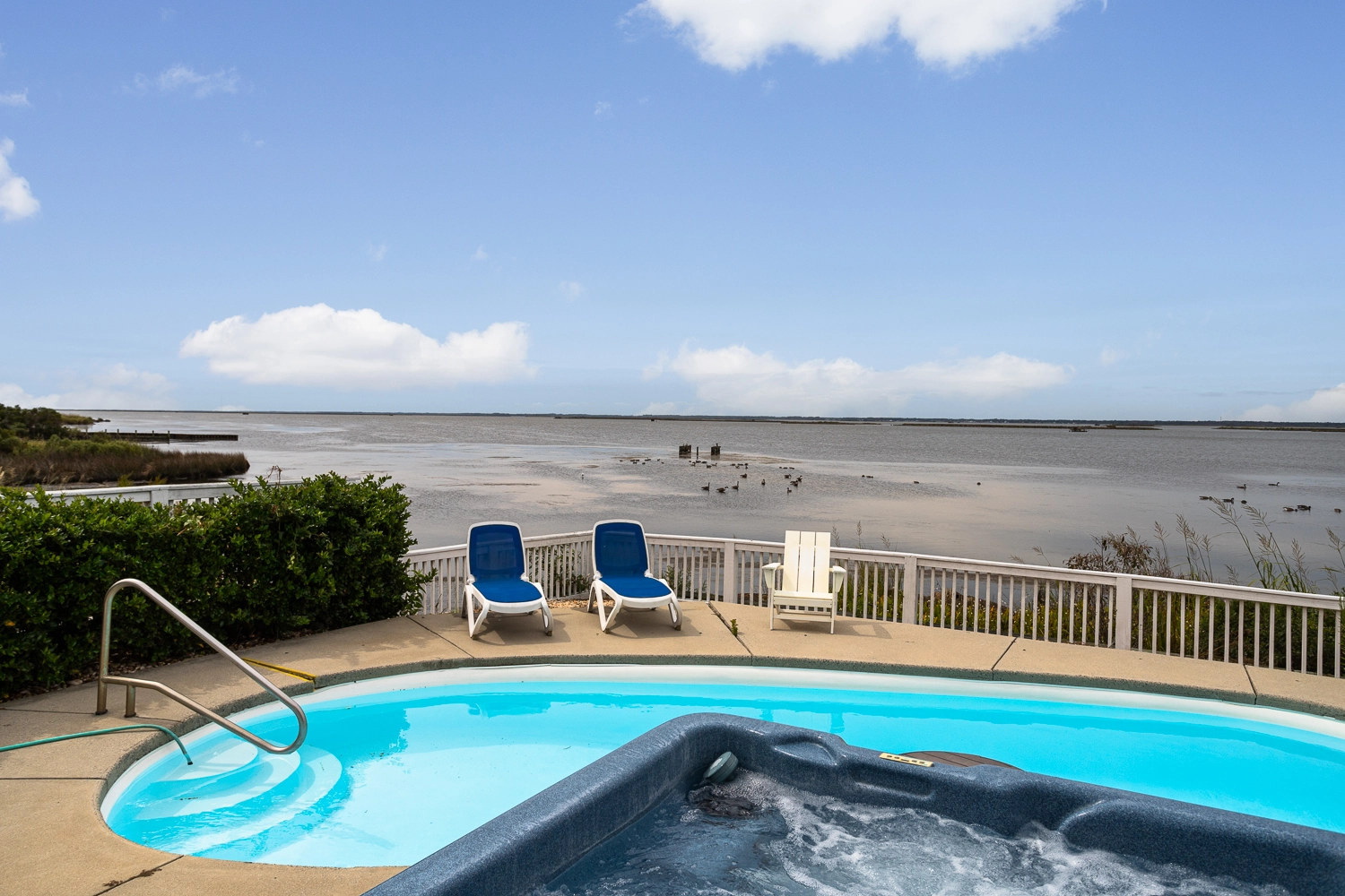 "When you open the front door, the view greets you! The water is right there. With it being migration season, every day brought new visitors to the sound. My Mother loved watching them. The other big benefit is that there are few srairs. We come to the Outer Banks every year and we have had to get a home with an elevator because my Mother can’t climb a full flight. She could. Abigale the few within the home and at the entry."