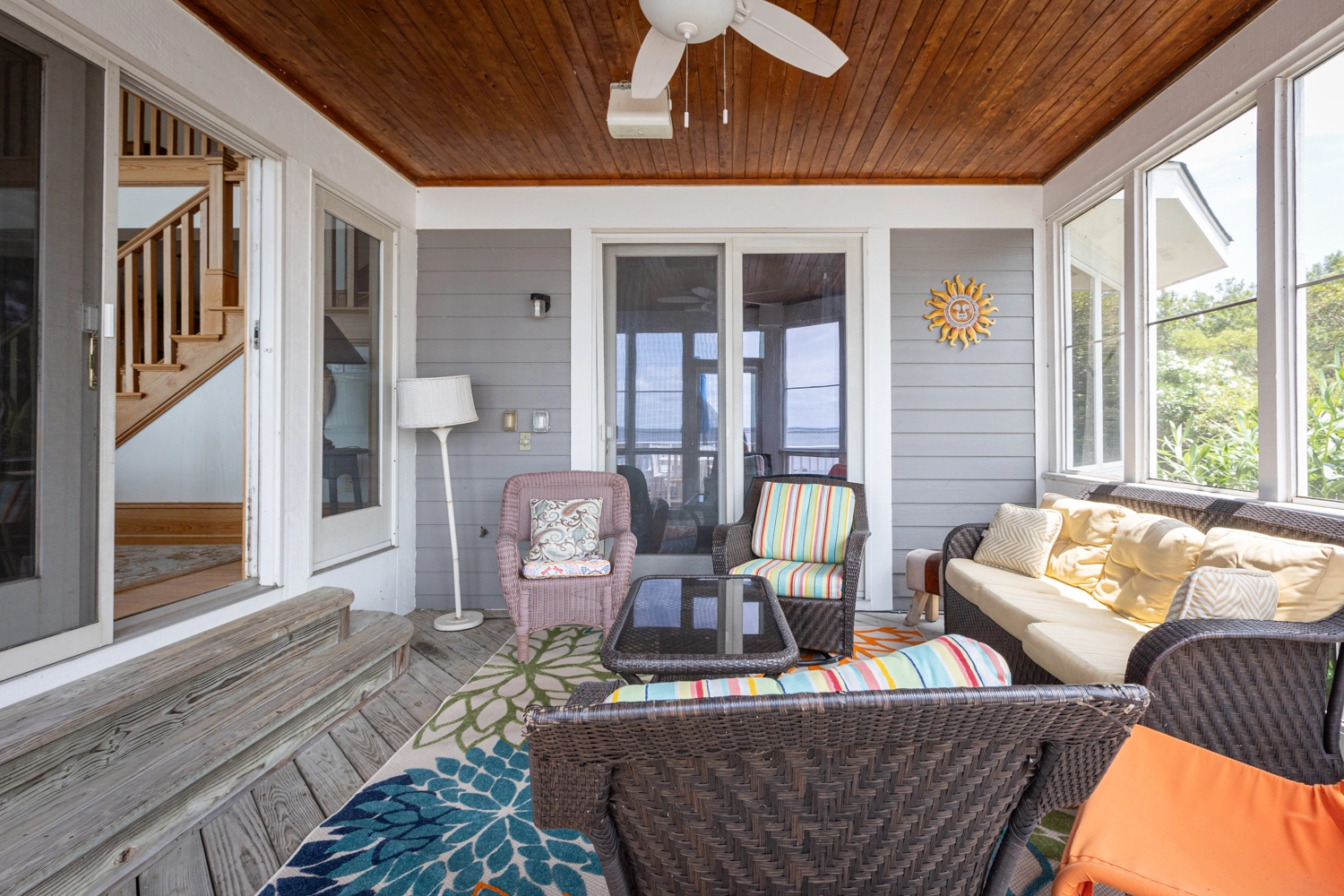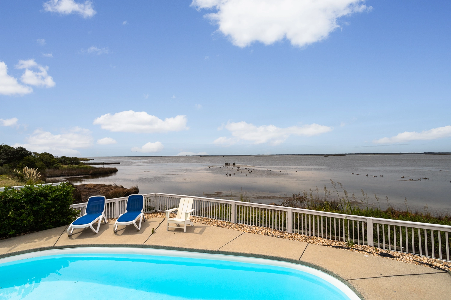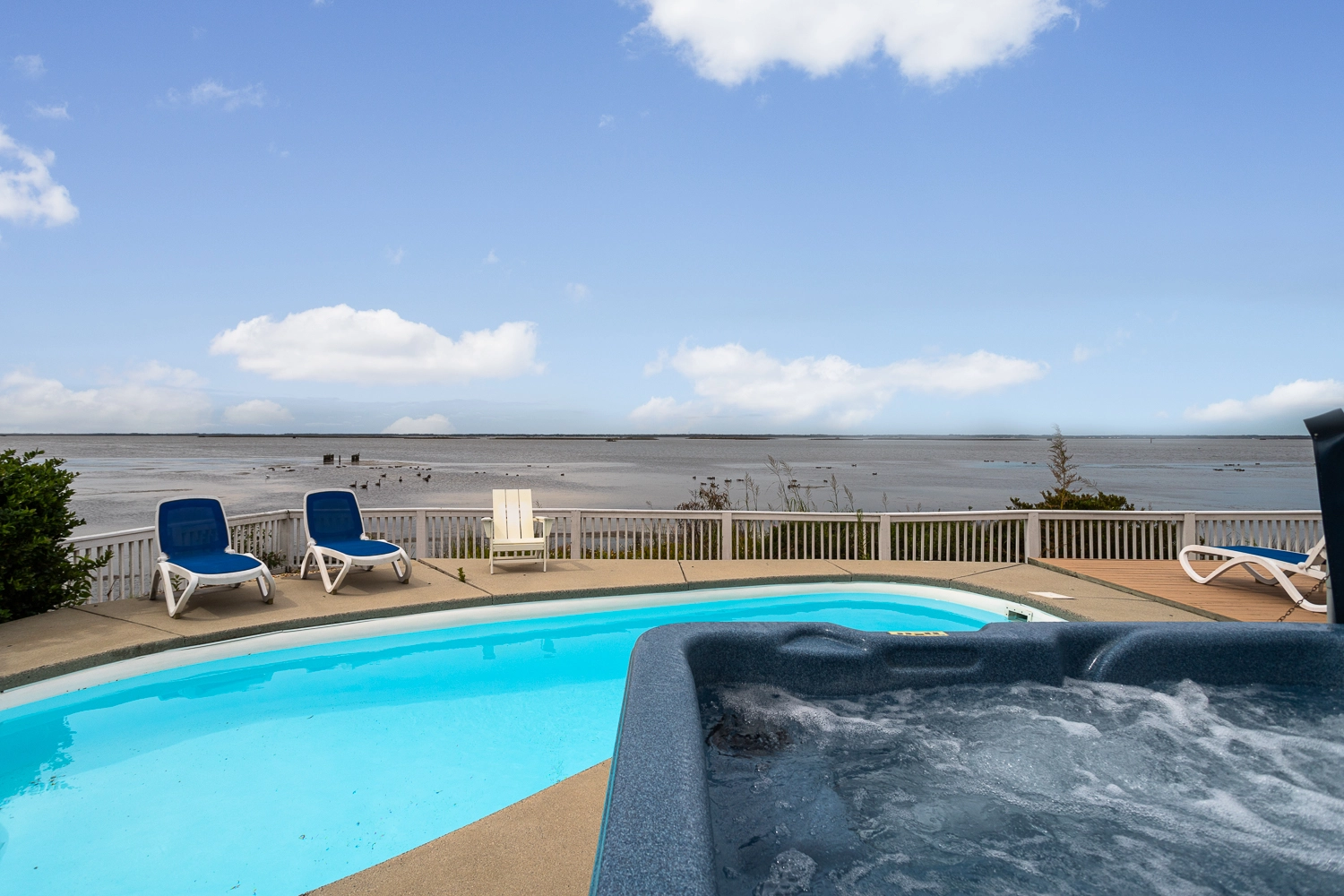 "When you open the front door, the view greets you! The water is right there. With it being migration season, every day brought new visitors to the sound. My Mother loved watching them. The other big benefit is that there are few srairs. We come to the Outer Banks every year and we have had to get a home with an elevator because my Mother can’t climb a full flight. She could. Abigale the few within the home and at the entry."