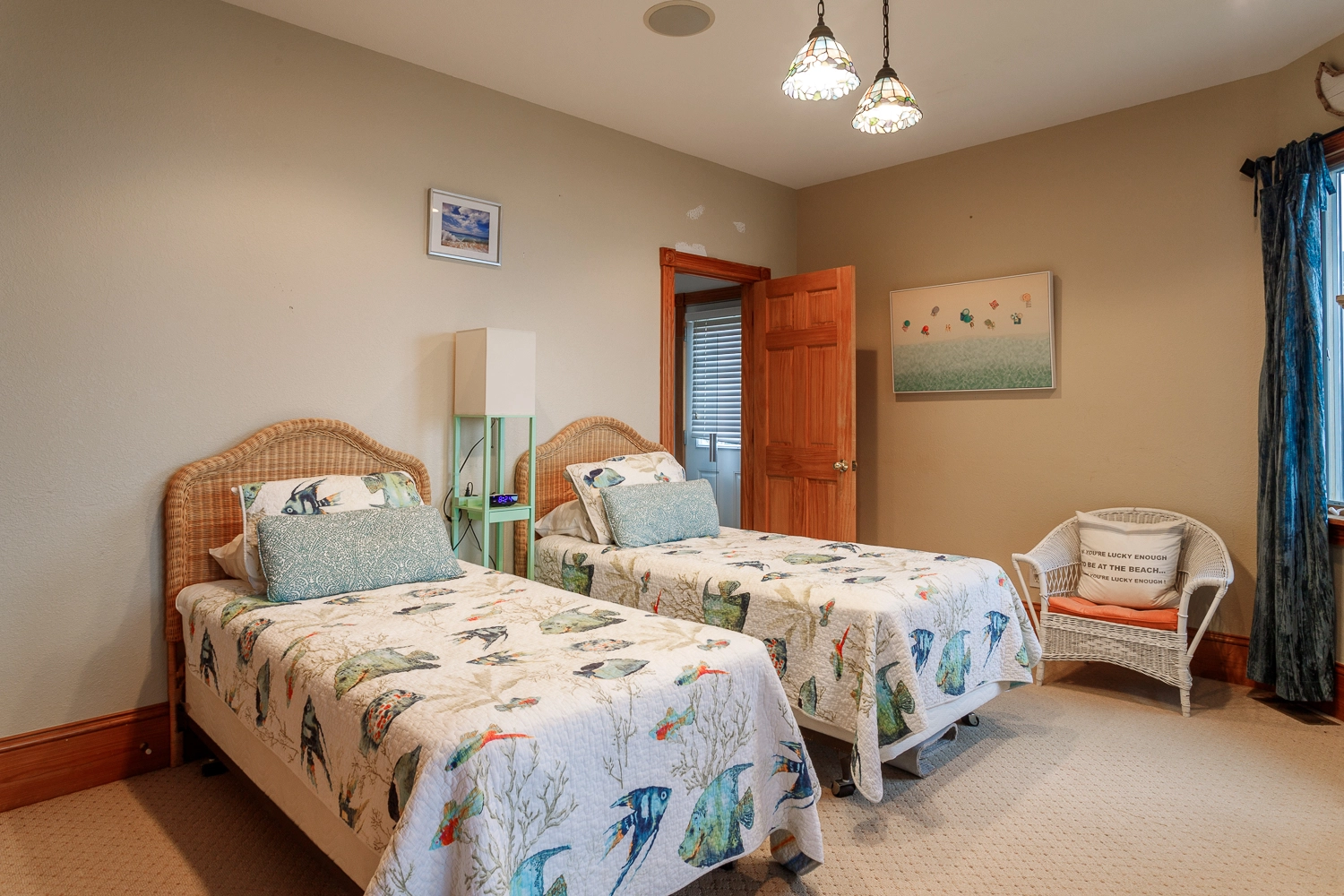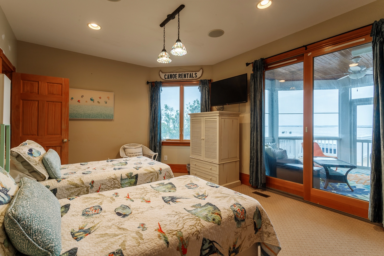 Two Twins, Semi-private full cabana bath, Standing shower, Screened porch access