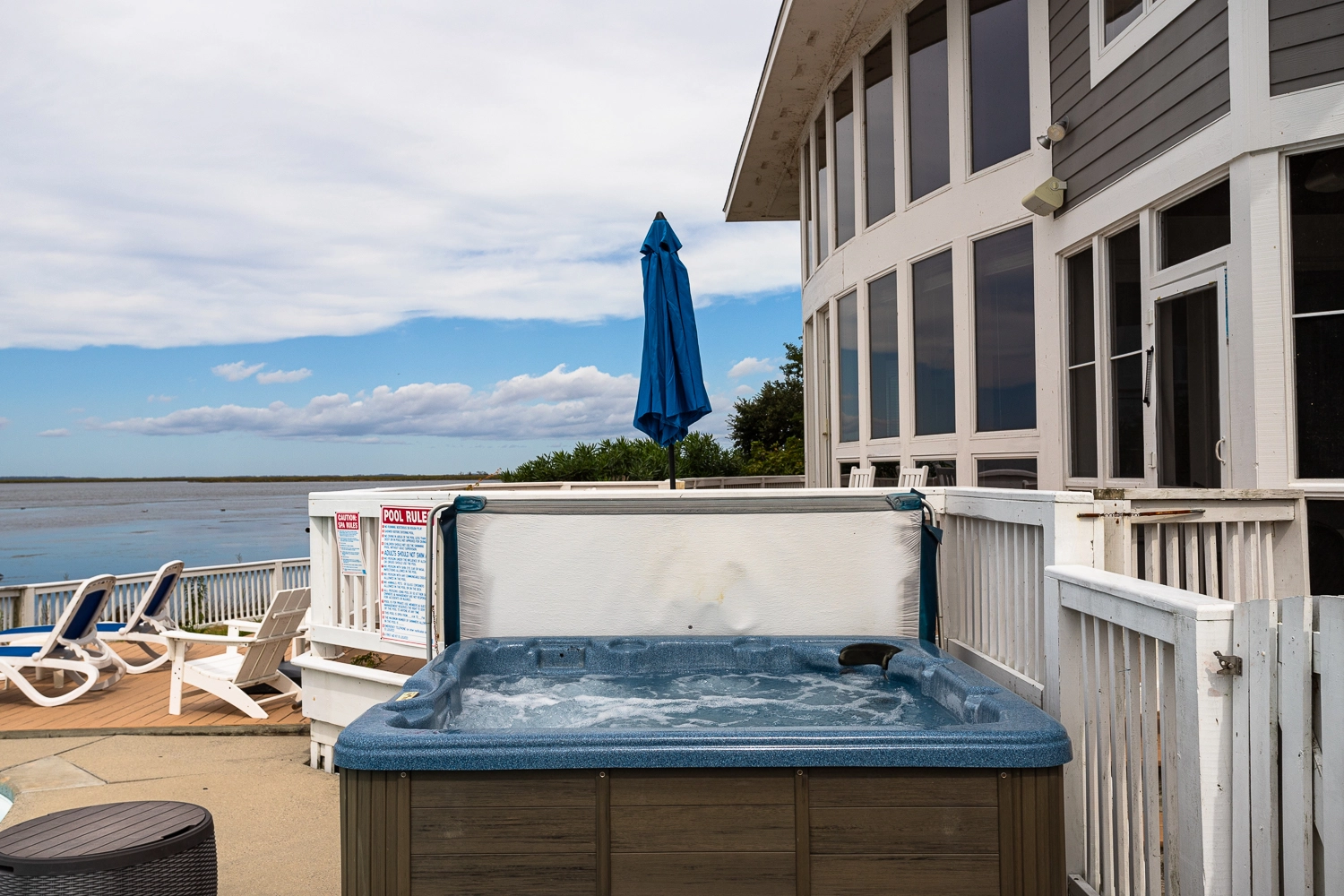 Private pool, hot tub and charcoal grill. Community amenities include swimming pools, tennis courts, shuffleboard court.