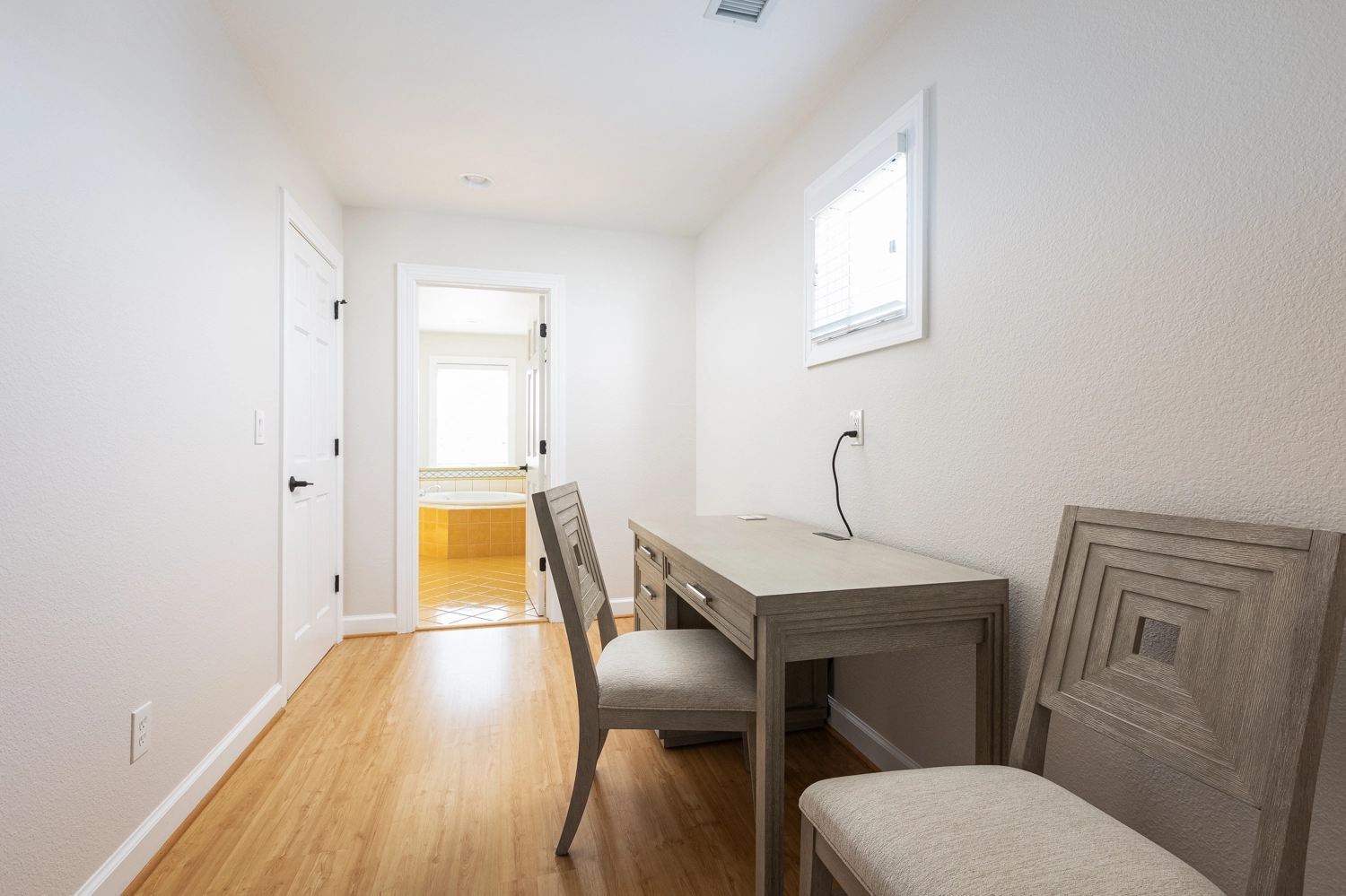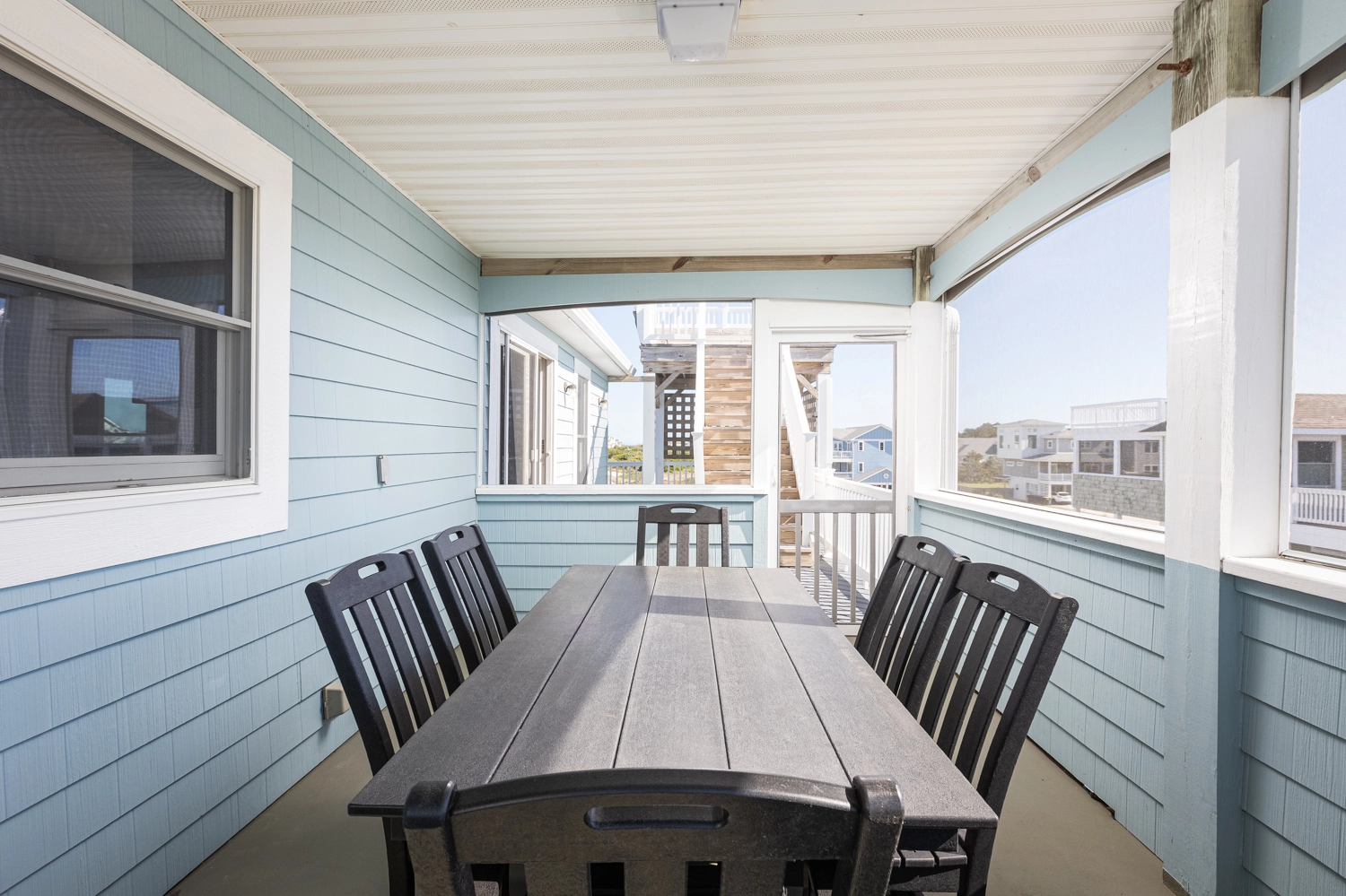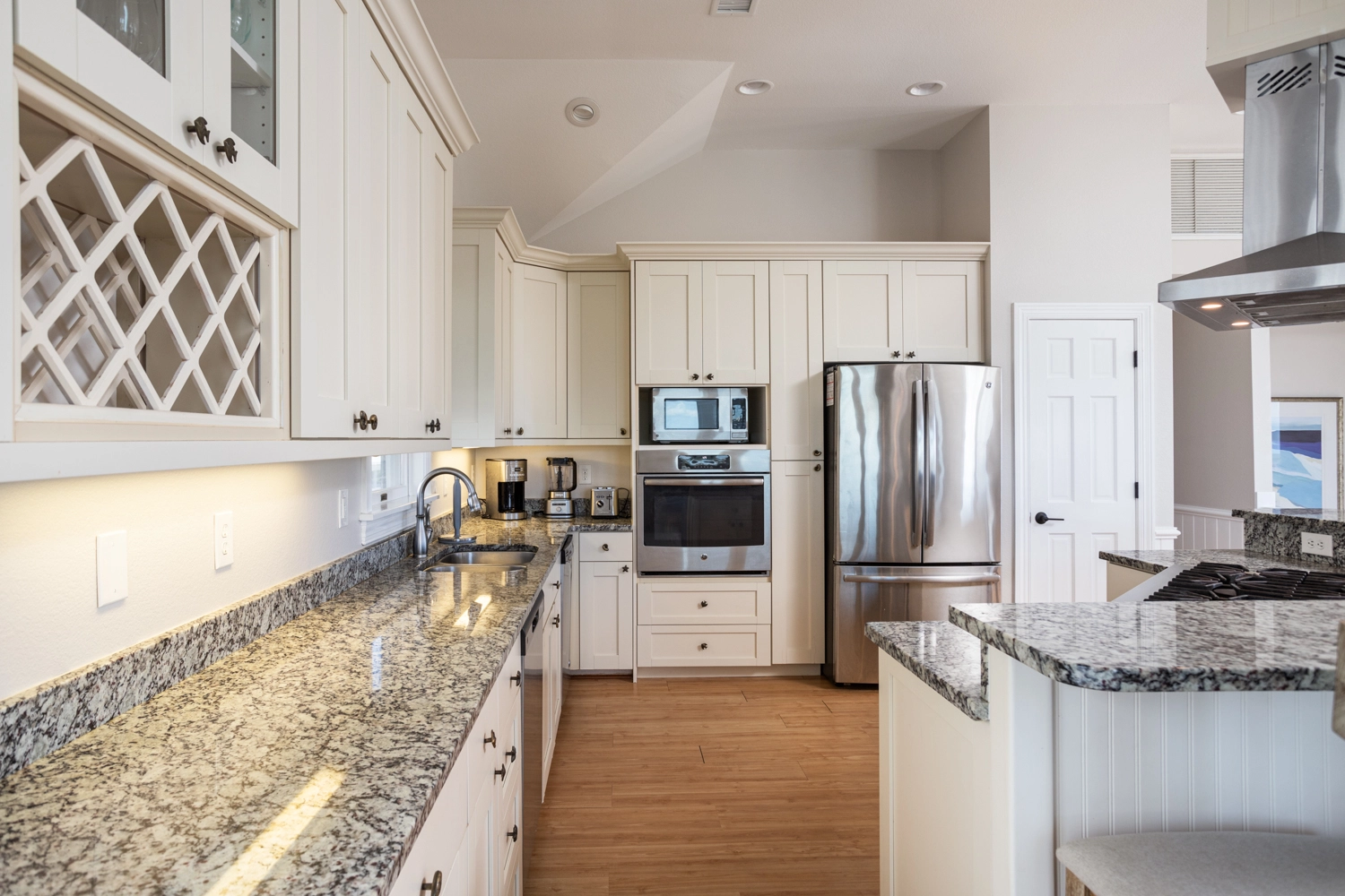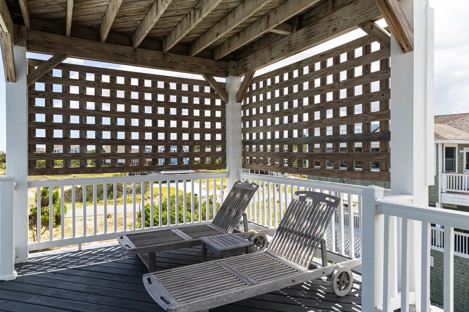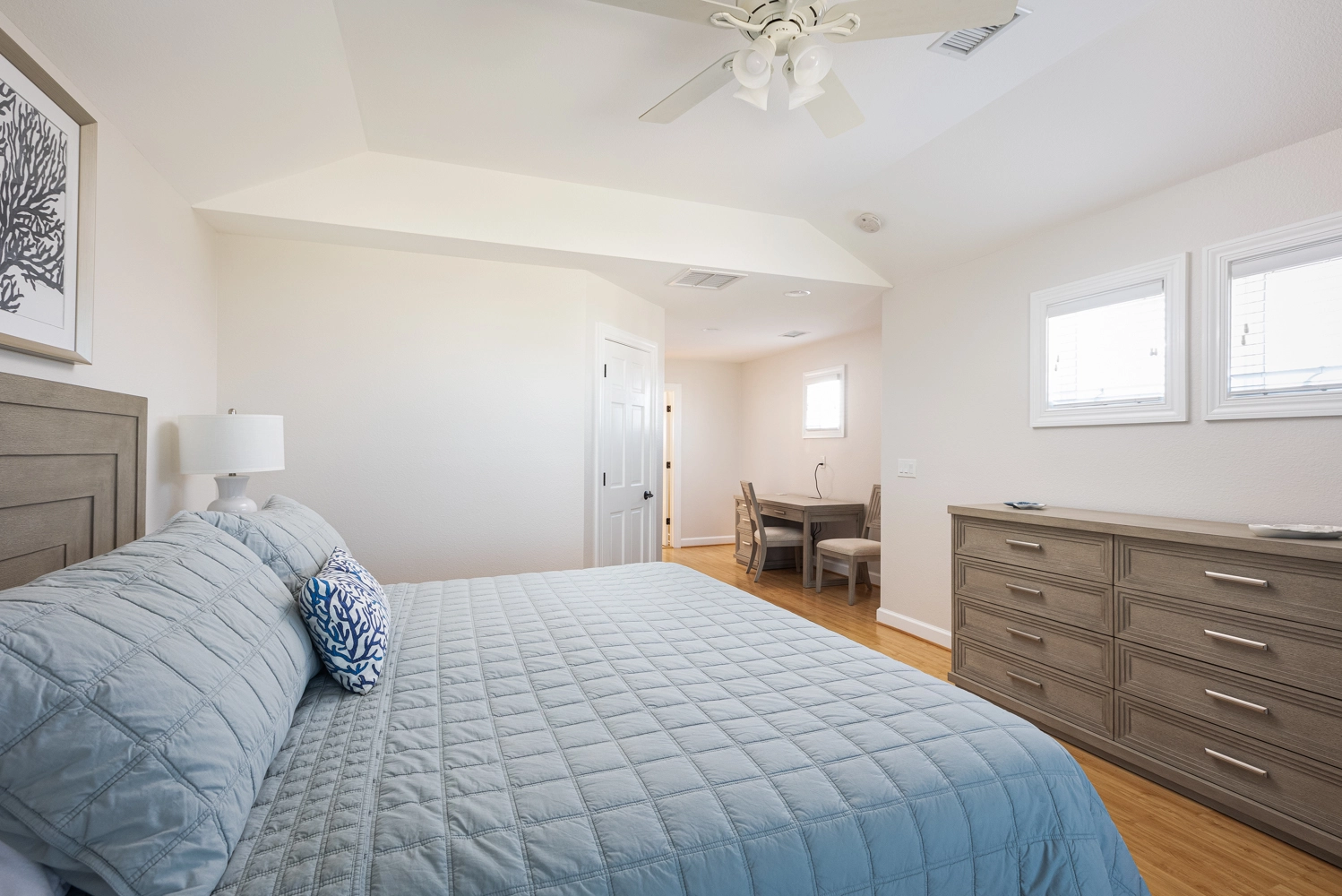 "No carpet was a great plus. All the decking was in great shape...no splinters for little feet. The walk to the beach was just the right length. The large number of plates, flatware, bowls and coffee mugs and the two dishwashers made meals easier. The bathrooms, especially the top floor master, were awesome. The pool was perfect temp since we paid to have it heated. Having two sets of washer and dryer made life so easy for all visitors. Loads of parking for everyone."