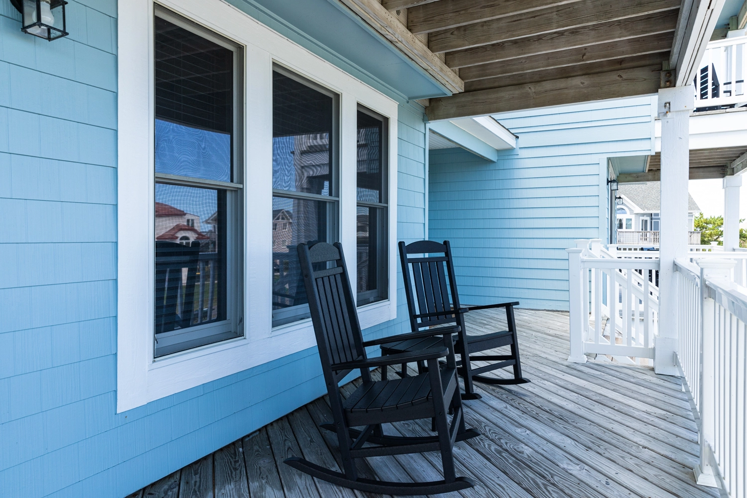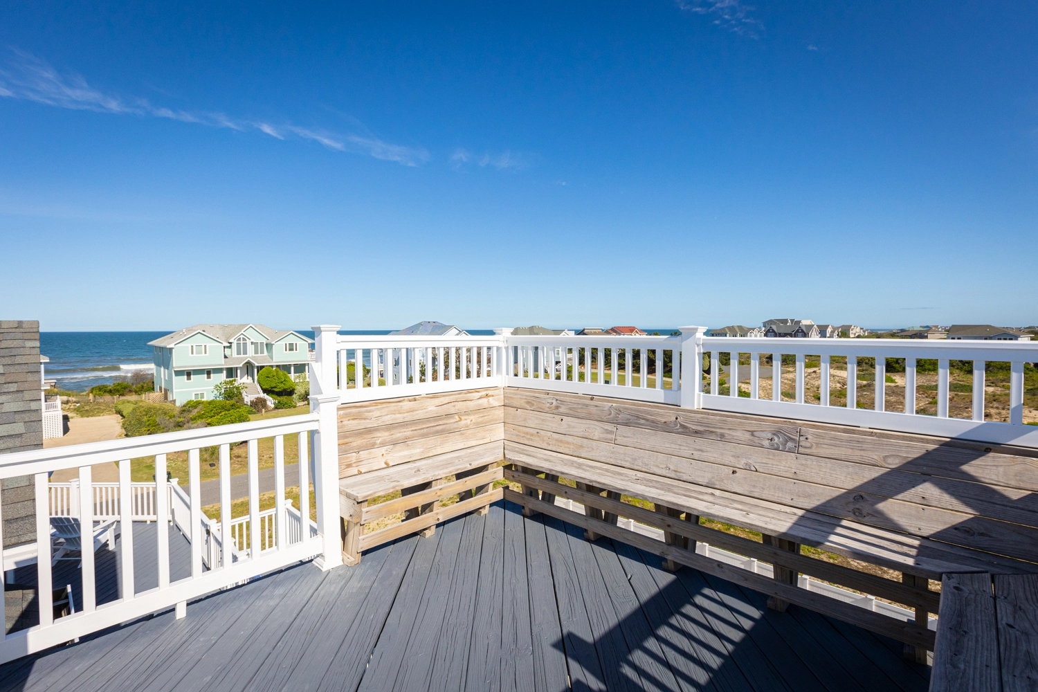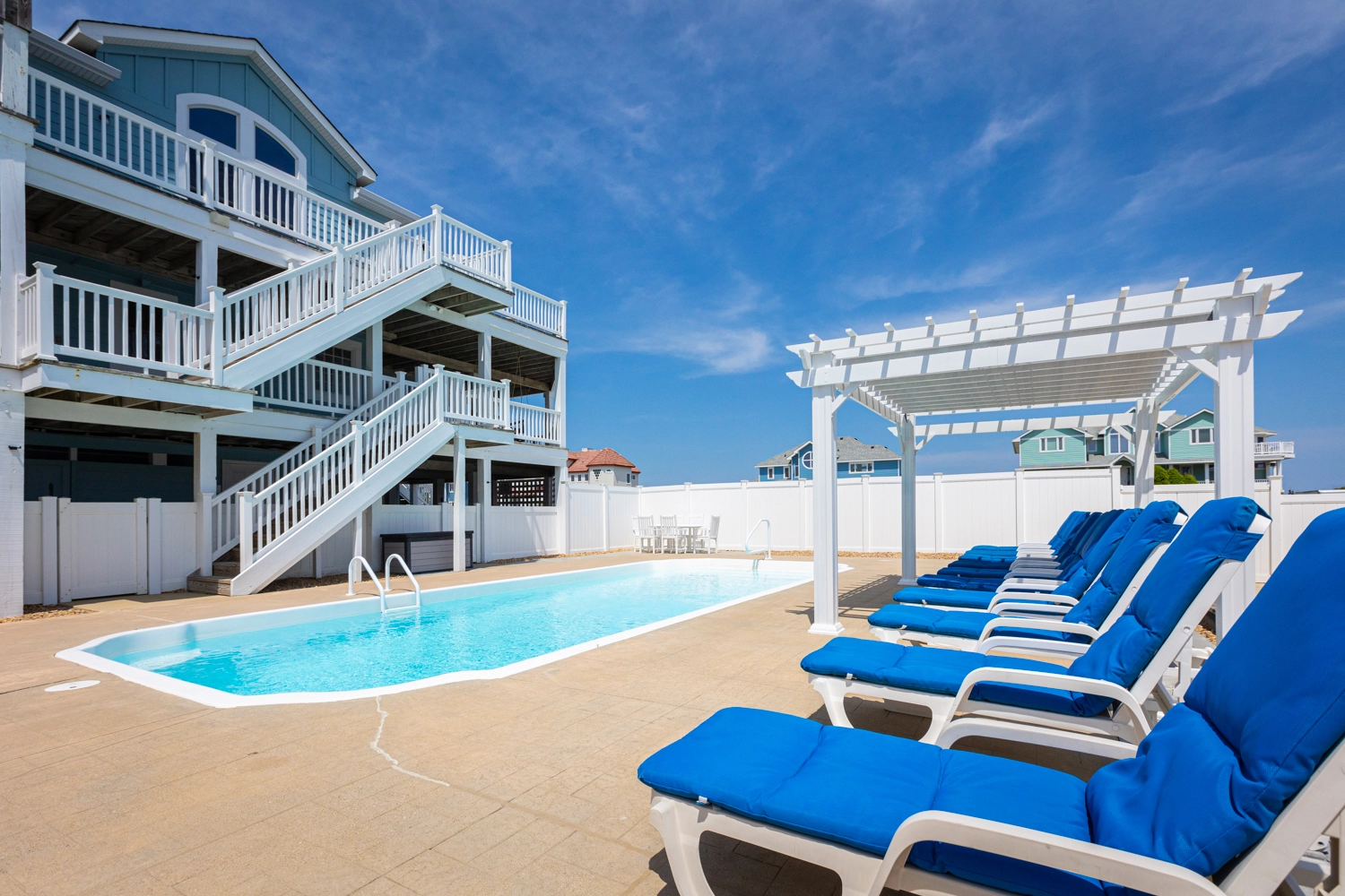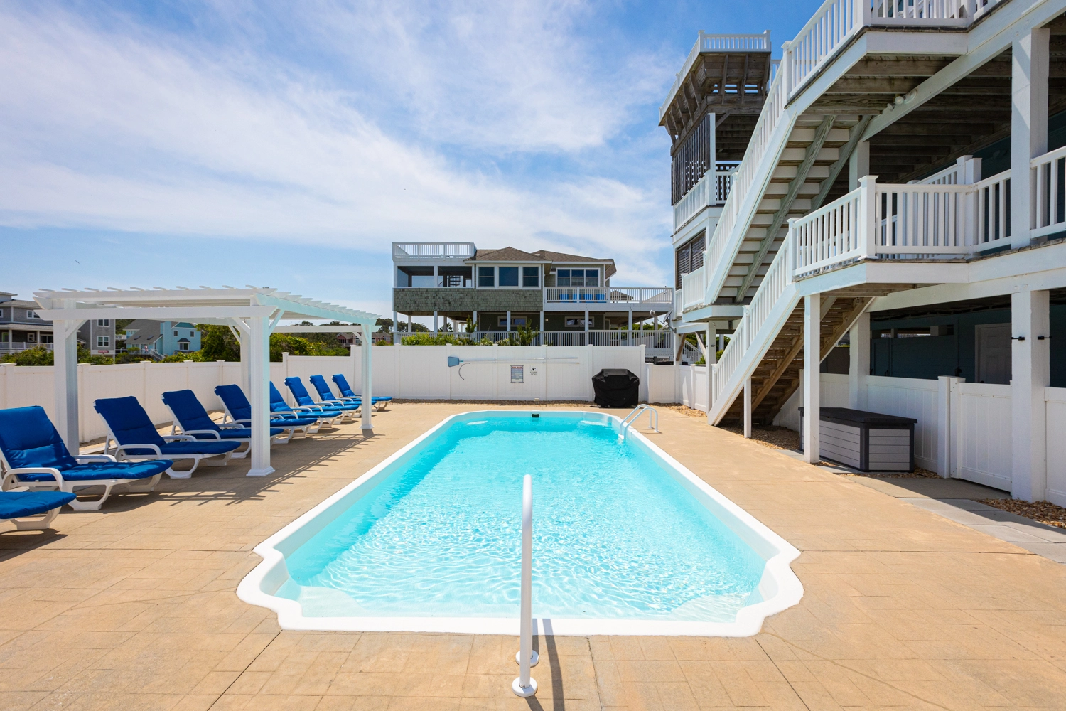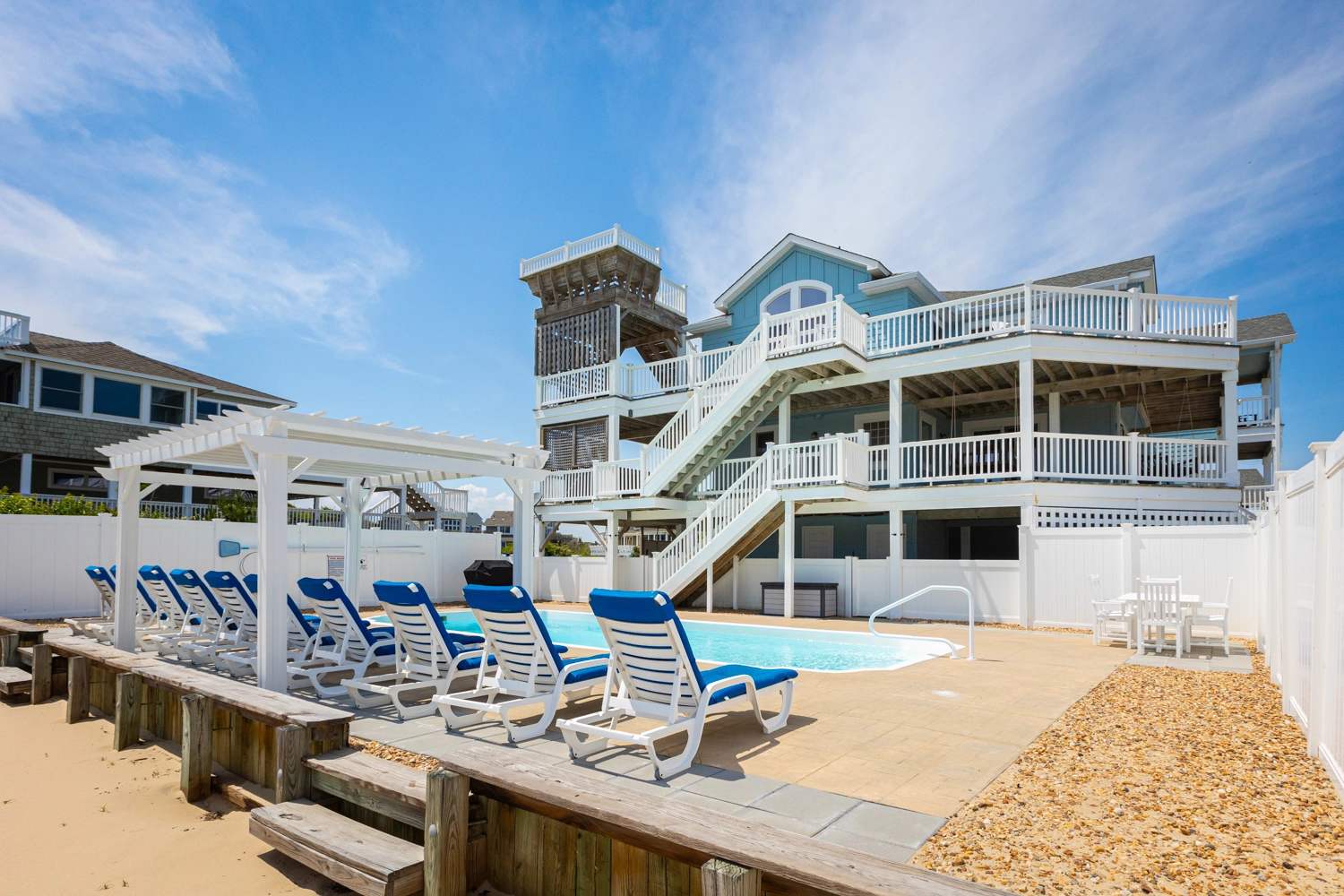"Salty Dogs 2 was outstanding and we look forward to coming back for many years to come. We began each day with sunrise views of a colorful sky on fire over the ocean, and ended with a glass of wine on the crow’s nest to watch the sunset over the Corolla lighthouse. The walk to the beach was easy, and we enjoyed riding bikes all around the area. The pool was so relaxing, and our family enjoyed many competitive cornhole games in the horseshoe pit area. It was clear the owner takes pride in providing a great experience, and we really appreciated all the updates. The kitchen had everything we needed, and bedrooms were so cozy. Our dog Ella also says thank you for letting her be a part of the family vacation! We’ll be back for sure! ."