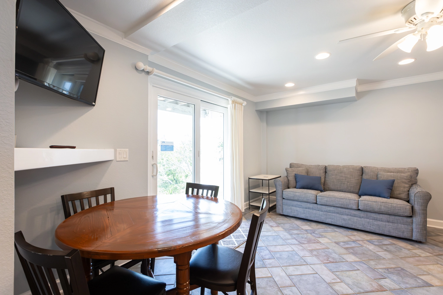 "Great layout inside, close walk to beach, excellent pool area (large pool, seating area, shade options, horseshoe pit), game room with ice maker, and close to shopping plazas for convenience"