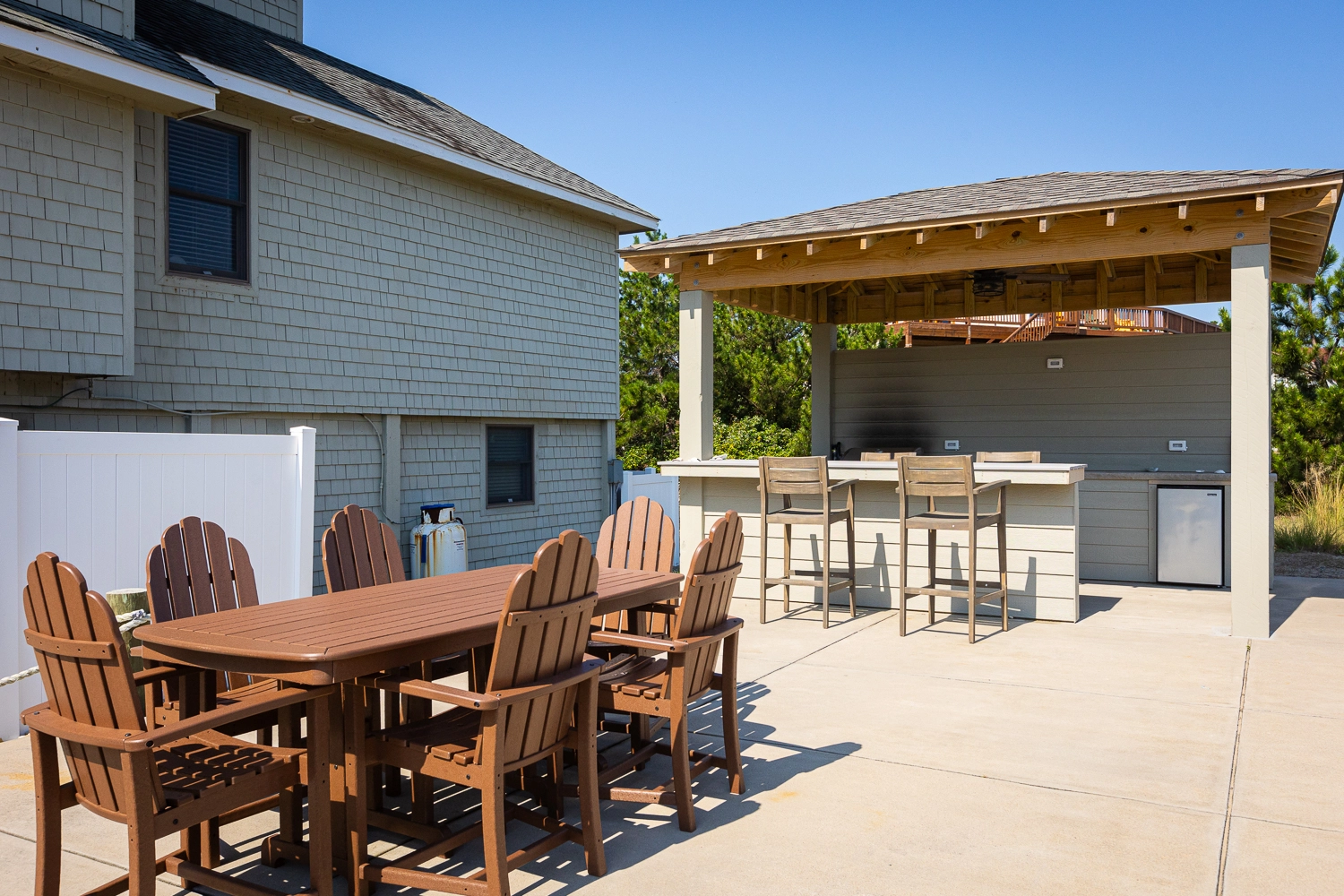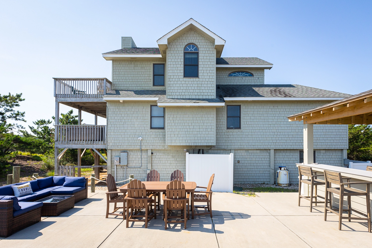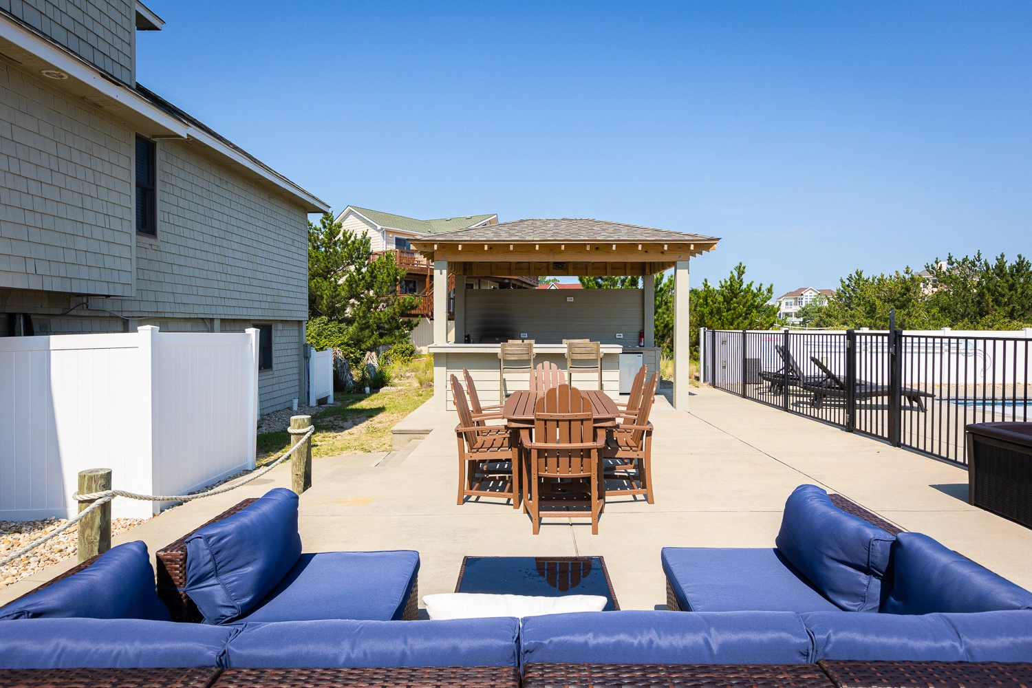 "Beautiful and clean home located in my favorite community and just steps from the beach. Great layout. The pool area is wonderful with full sun exposure (may want to bring a little pop up cabana if you want shade). Love the addition of the outdoor kitchen area. The fenced in area for the dogs makes vacation so much easier. I’ve been renting in Corolla for 25 years and this is my favorite house!"