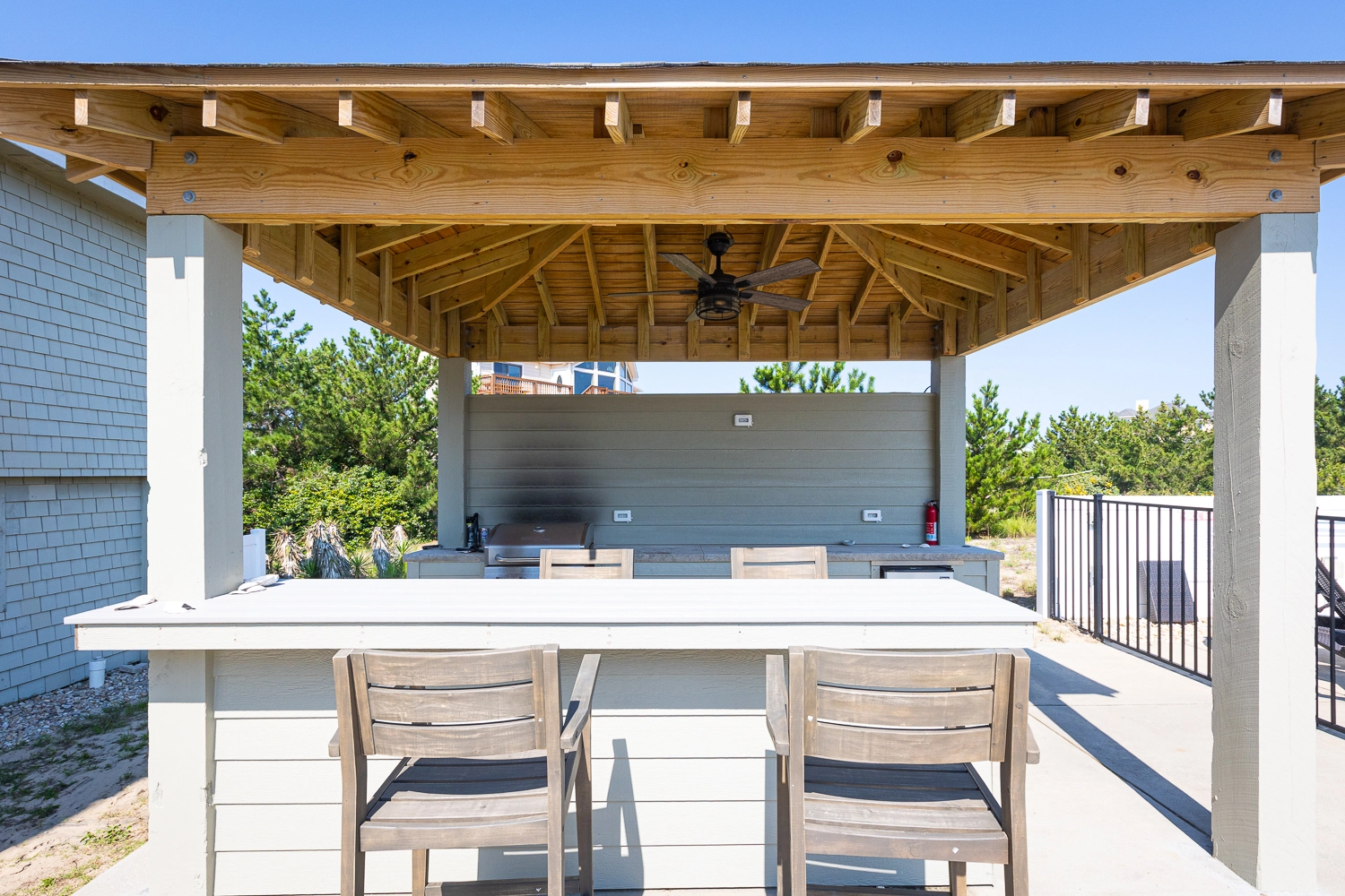 Outside shower. Access to the community pool, fitness center, two tennis, and two pickleball courts at Villages of Ocean Hill are available for an additional fee.