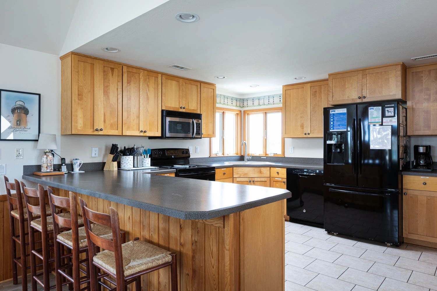 "Very pleasantly surprised by how well the kitchen was outfitted. 4 coffee pots, electric griddle, crock pot, 2 blenders, 2 four slice toasters all went to make our stay more enjoyable. However, the dishwasher was very temperamental, frustrating us more than once."