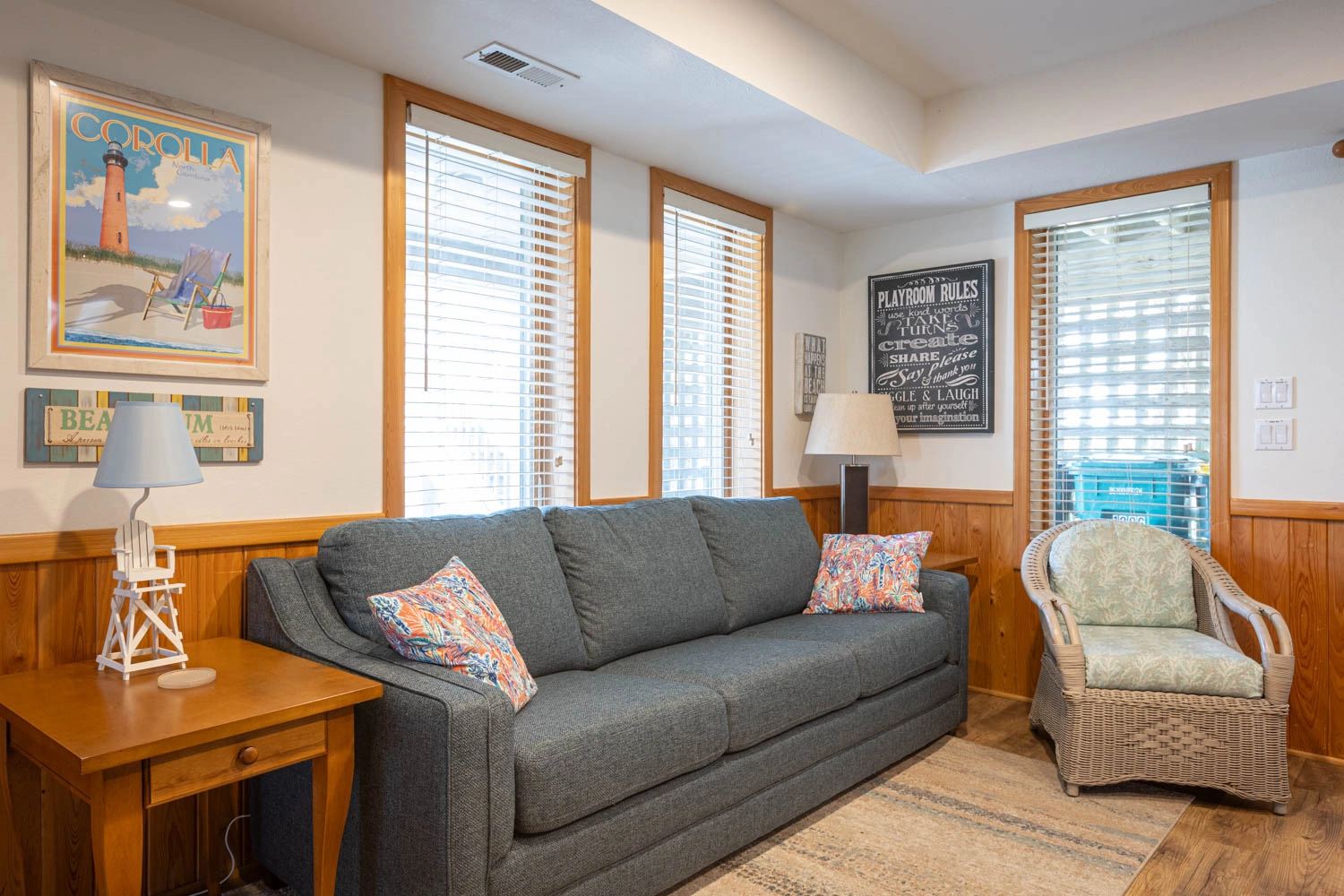 "Castle on the Sand had the most well stocked kitchen we have ever seen! The house was decorated great and had everything we needed for a wonderful week. The outside was amazing! The pool was in the sun all day, which is a must for us, and the bar area provided shade for us older people! The TV and the refrigerator out there were an added bonus that was great! The ice makers were used plenty and were so appreciated. There were 2 blenders in the house but neither worked so I texted Twiddy and they replaced them with a new one immediately! Thank you one of the best houses we have stayed at over the past 20+ years of vacationing in the OBX!!"