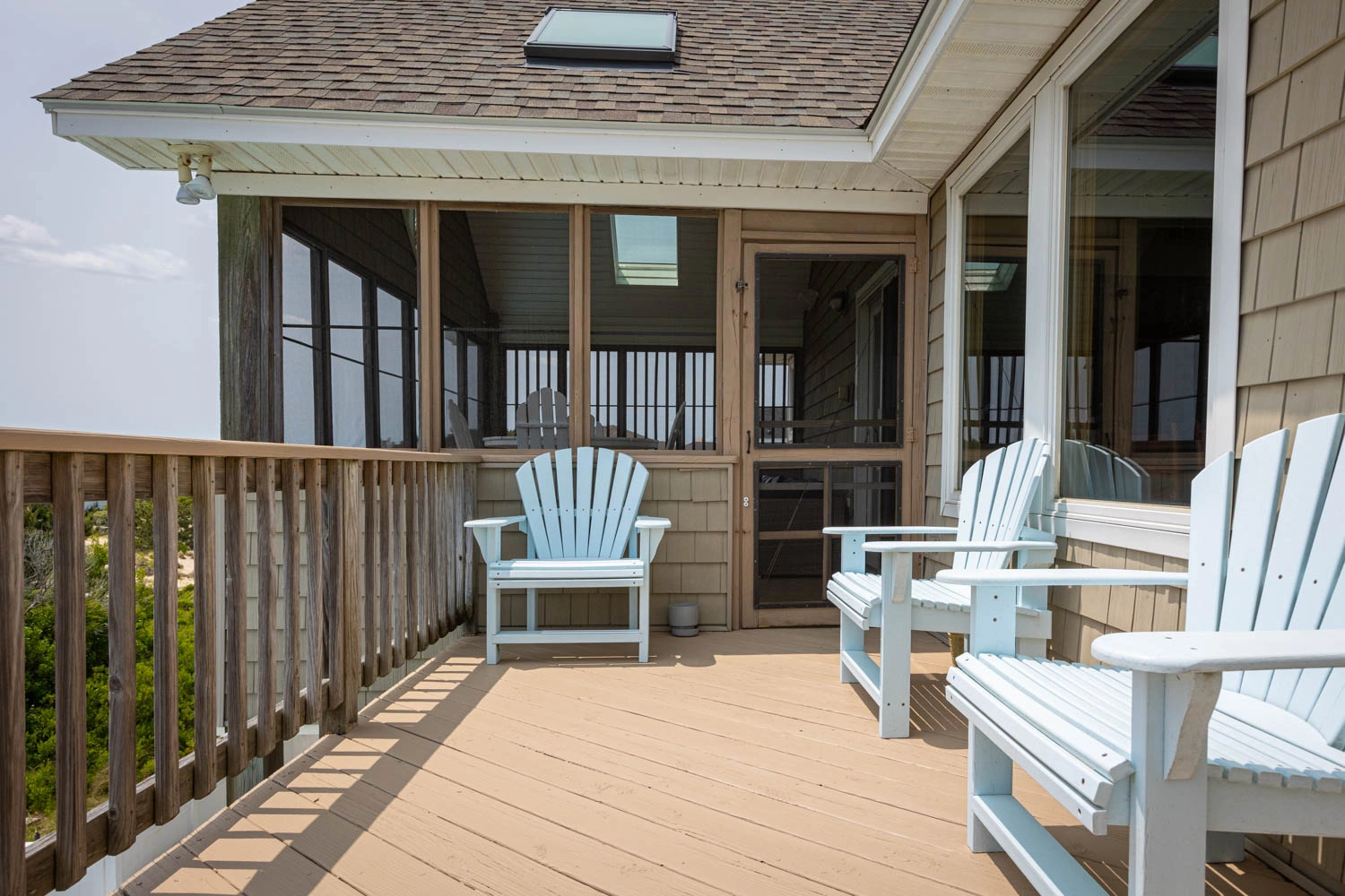 Well-equipped kitchen; wet bar; great room; dining area; open decks with views; screened porch.