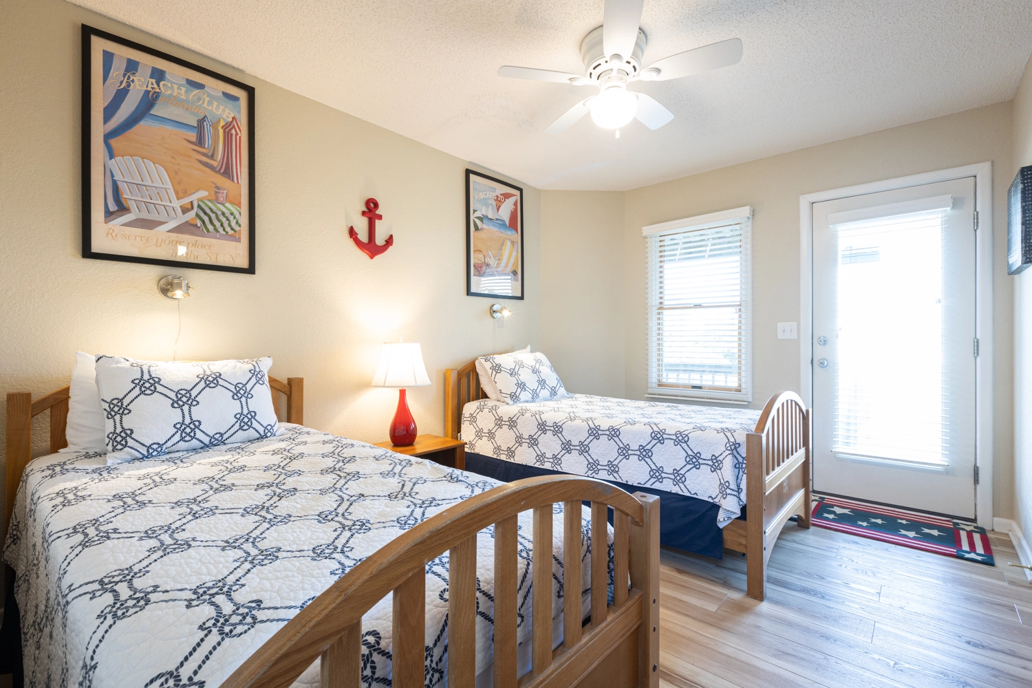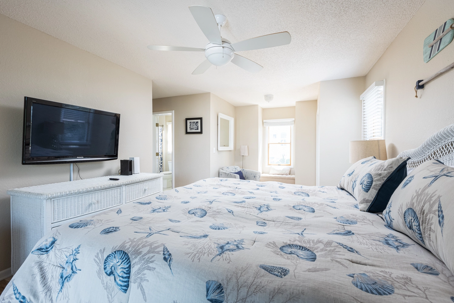 "Nice ocean views between the ocean front homes across the street. The home was nicely updated and maintained by the owner. Very effective overhead fan in the main room."