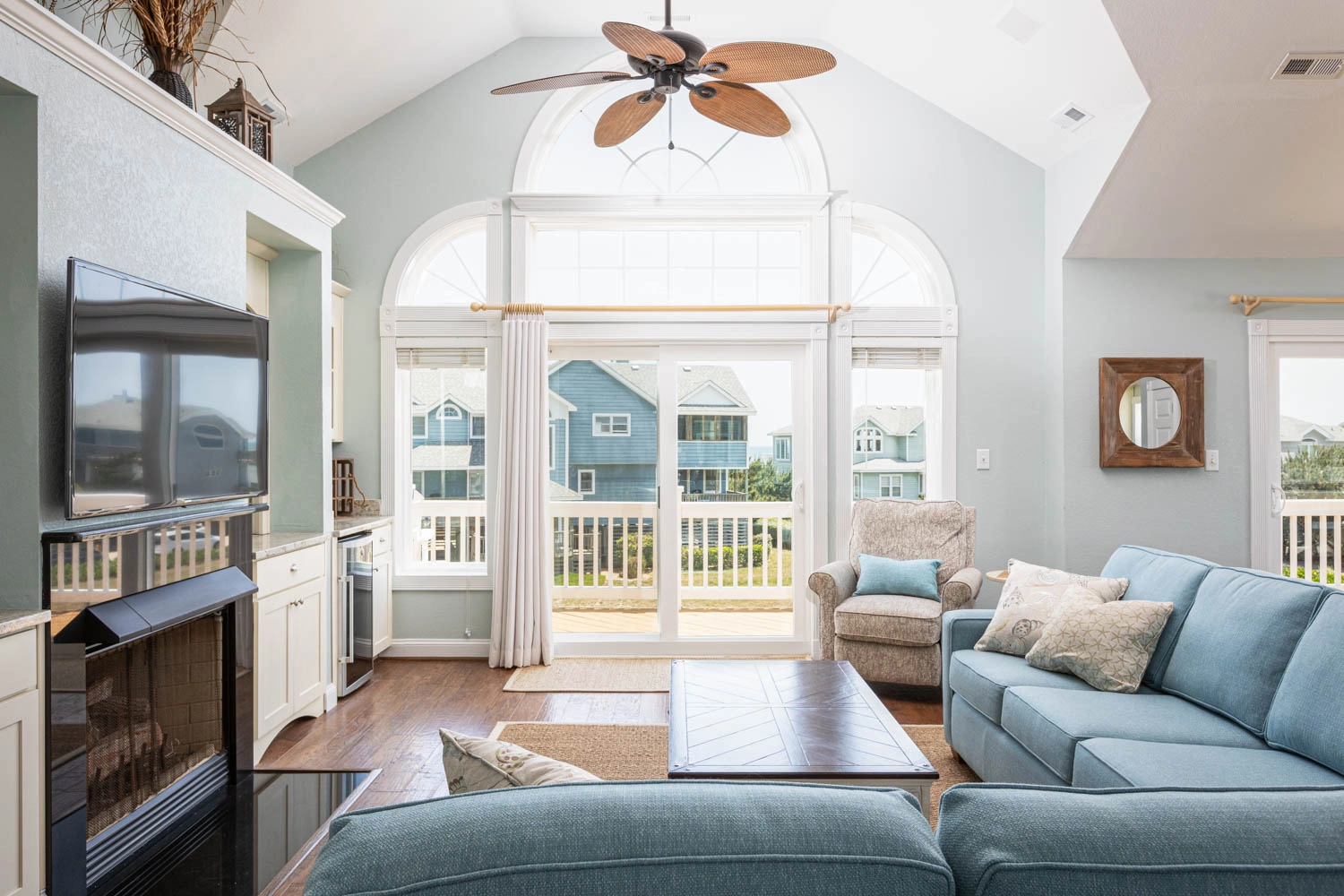 "We love the layout, the upkeep and the views. The pool is one of the biggest we’ve had at any of our other rentals in Corolla. I love how there’s many bedrooms with a king size bed and bathroom. A tv in the rooms is also nice. Even if it doesn’t get used much, it’s still a really nice feature to have."