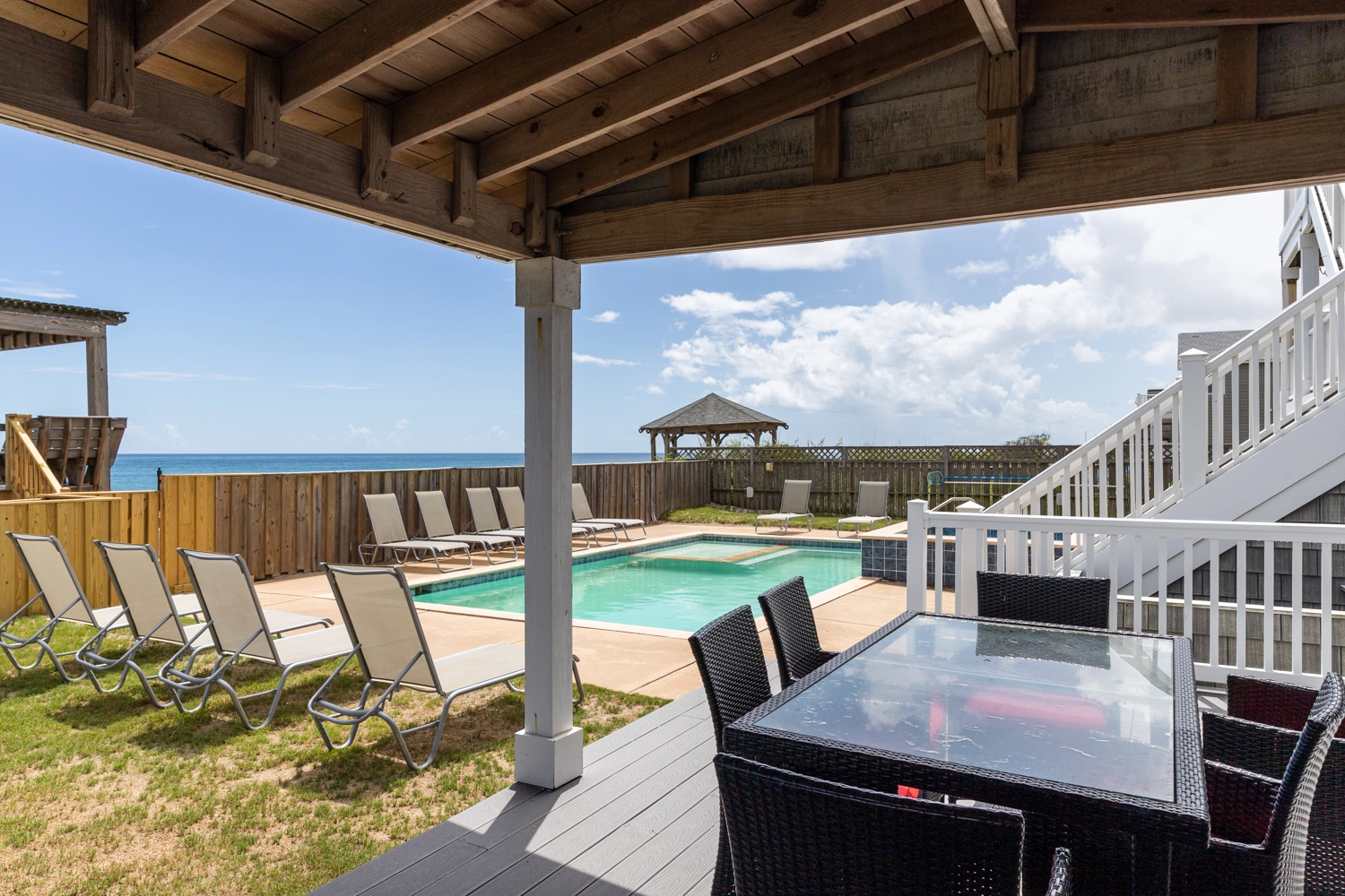 "The house was AMAZING!! Plenty of room for our crew and a well stocked kitchen!! Our grands loved the pool area the best and then, of course, being right on the beach was a game changer for our future vacations to Corolla."