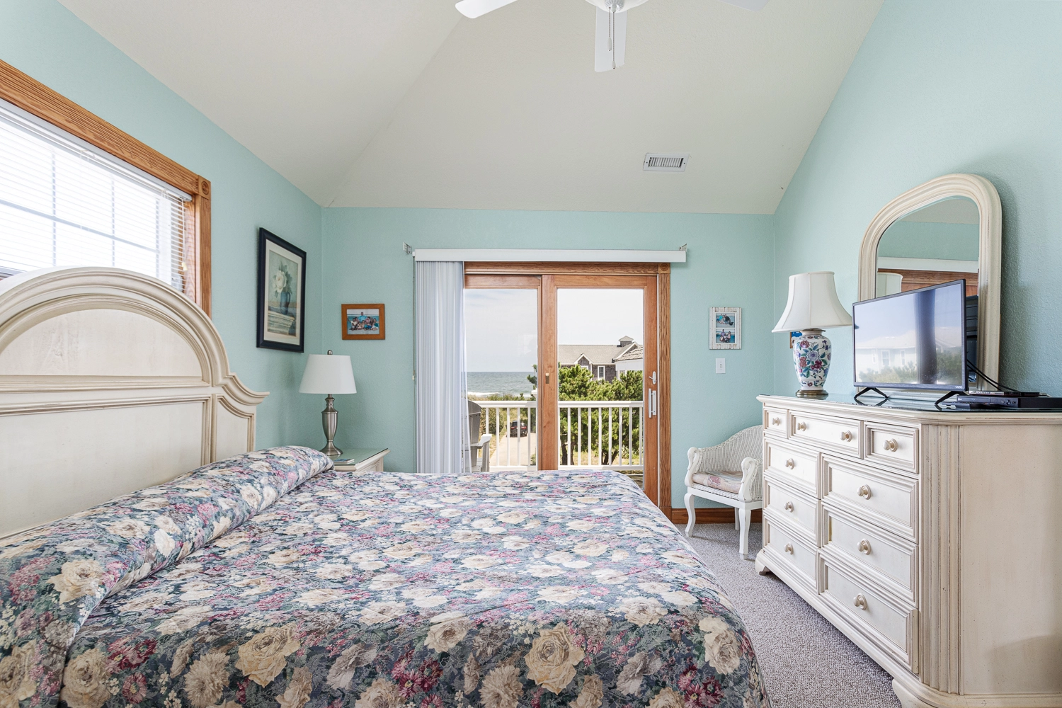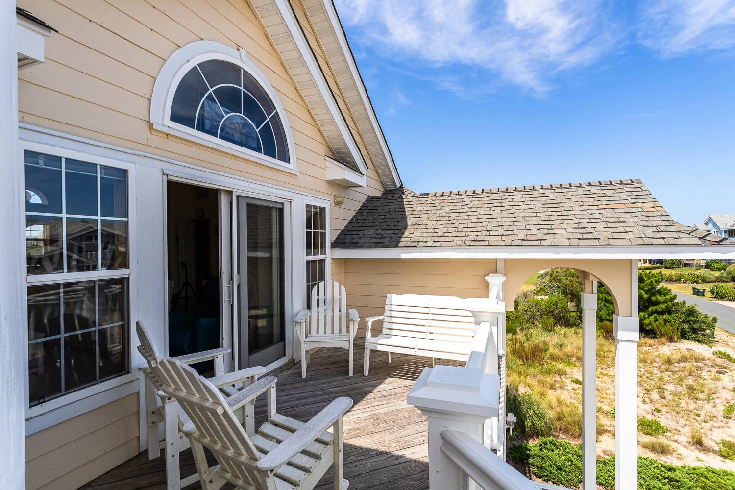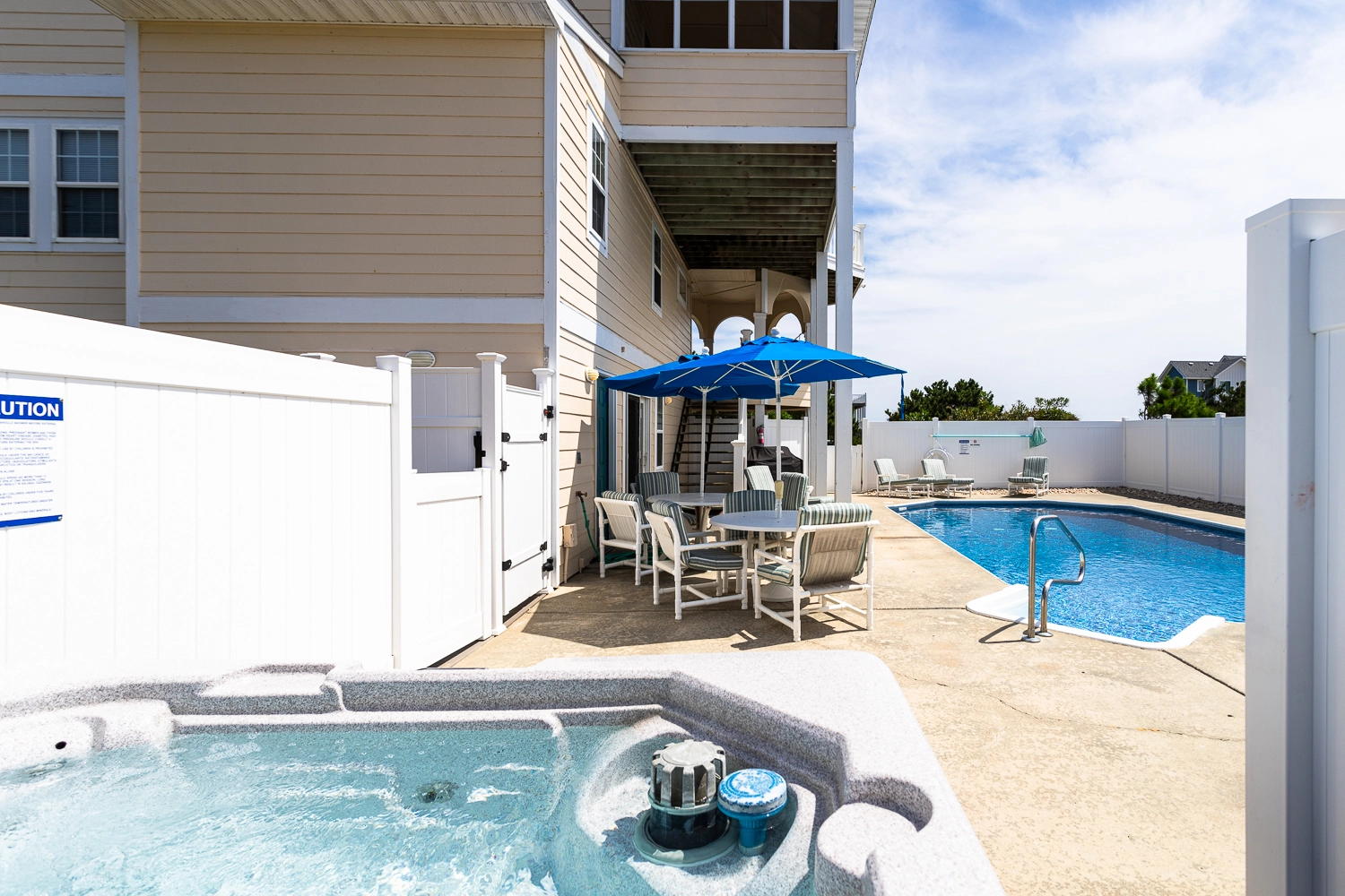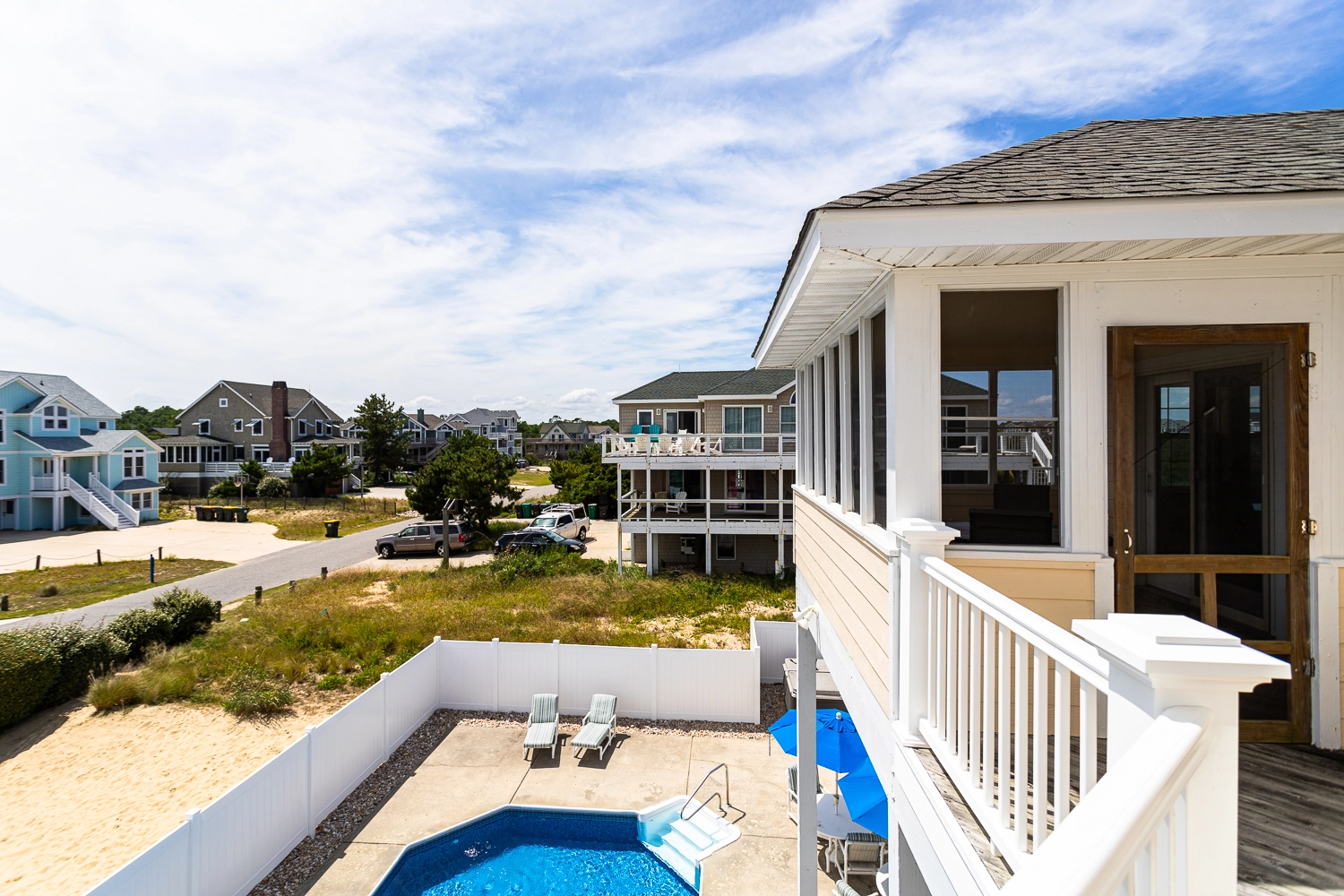"This is our second visit to Ocean Pearl. The view and location are why we returned. Seeing the ocean and the dolphins every day from our bedroom balcony was amazing. A quick sand path walk to the uncrowded beach of Ocean Hill, is much easier for us than climbing a multistep beach access. The beach cottage is lovingly maintained by the home owners. The pool area is our favorite place after a day at the beach. Comfortable pool lounges and a new hot tub were nice touches. Not to forget the excellent service of the Twiddy representatives. We actually didn't need to call Twiddy at all during our stay. It was a perfect vacation!"