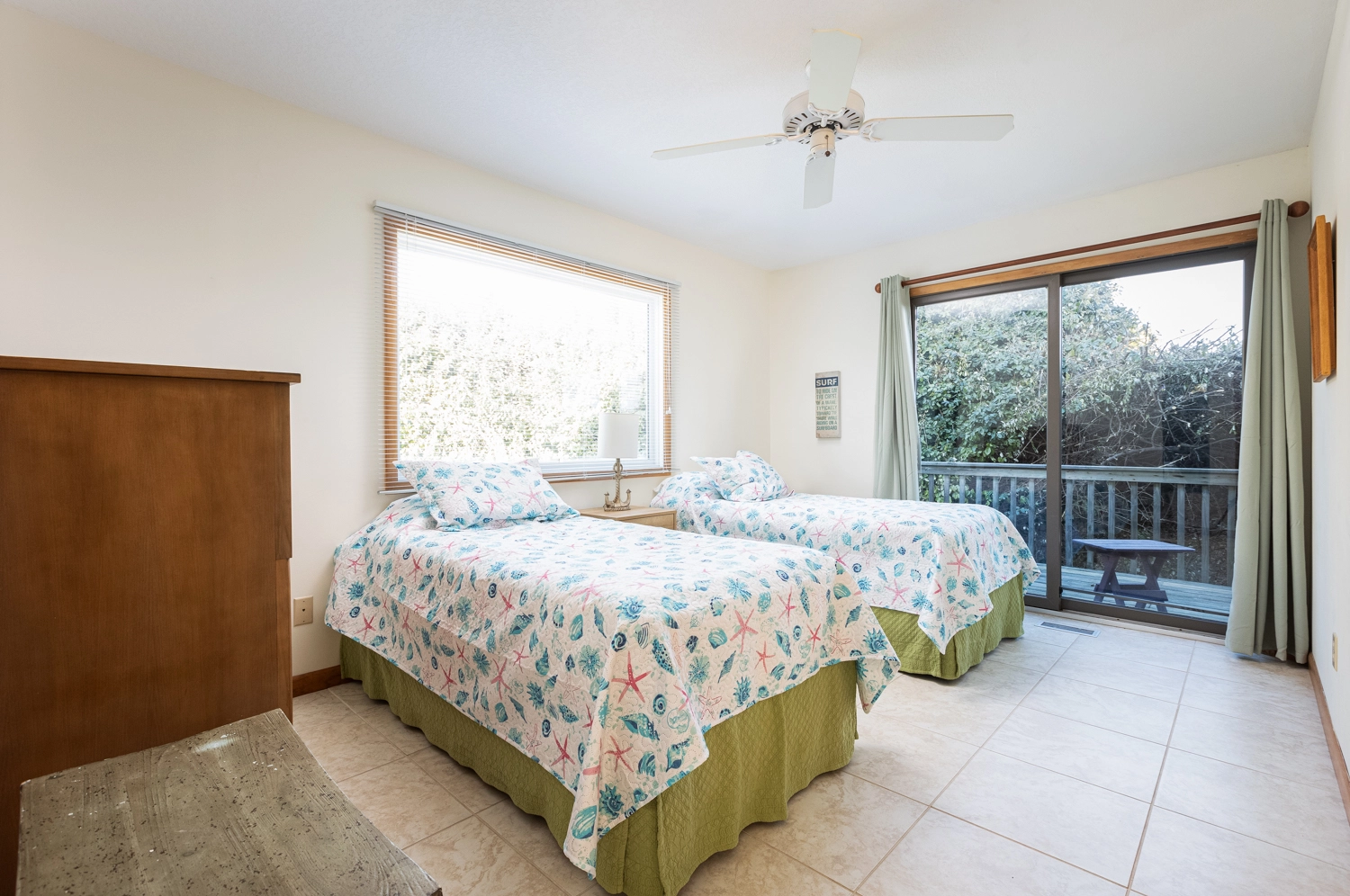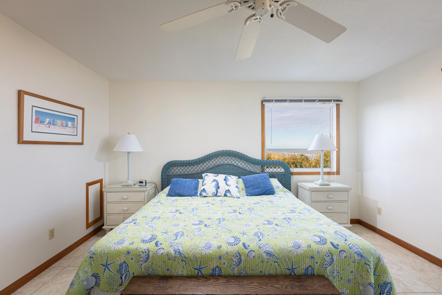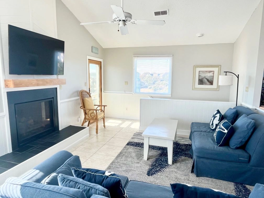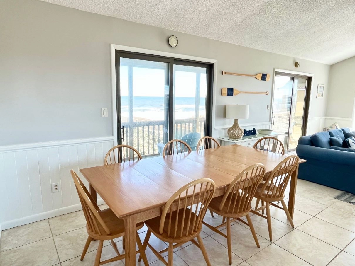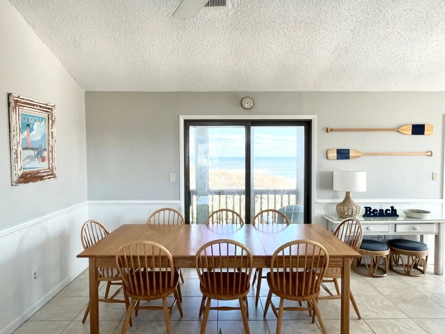 "Lovely, well maintained home with amazing views of the ocean. It is a smaller home for Corolla/Duck area and it is not the most updated, but, the house is meticulously maintained, the love shows. The owners have taken great care of the home, the bedding, curtains, shower curtains, all beautiful, and in great/new condition. The kitchen, pots, pans, dishes, utensils, serving dishes, everything were not a mesh mash or an afterthought, but high quality, plenty and matching complete sets. The covered porch was nice during the day providing shelter from the sun and from bugs in the evenings. We got lucky and there was a last minute opening that we booked and were so glad we did. Thank you to Twiddy for a smooth and seamless rental, check in and check out process and to the owners for sharing their lovely home with us. It was perfect for our family of four the three friends."