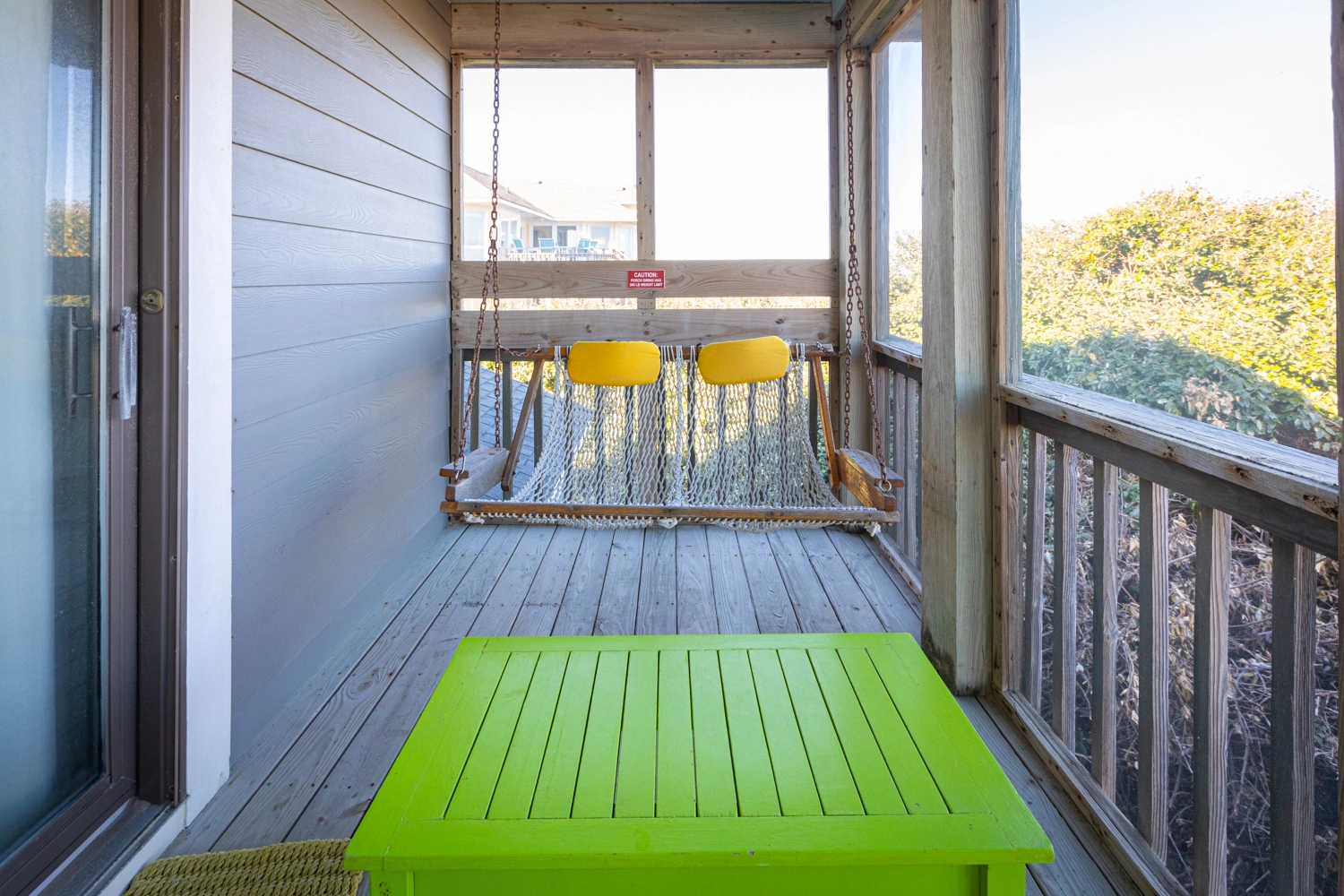"Screen porch with the hammock swin"