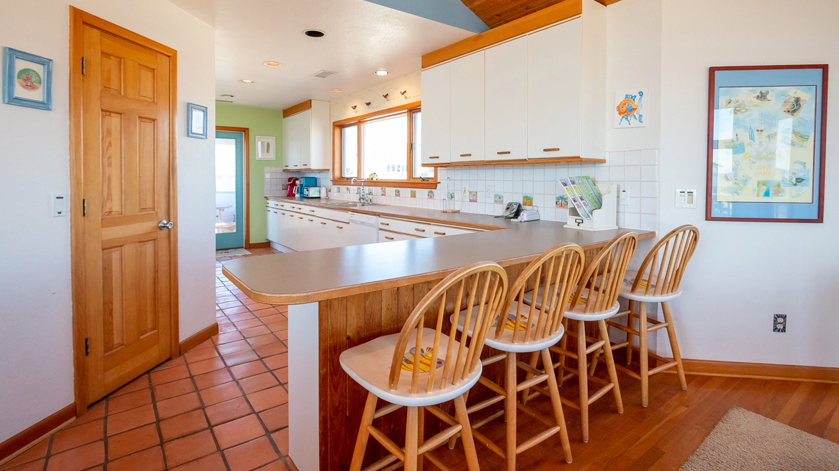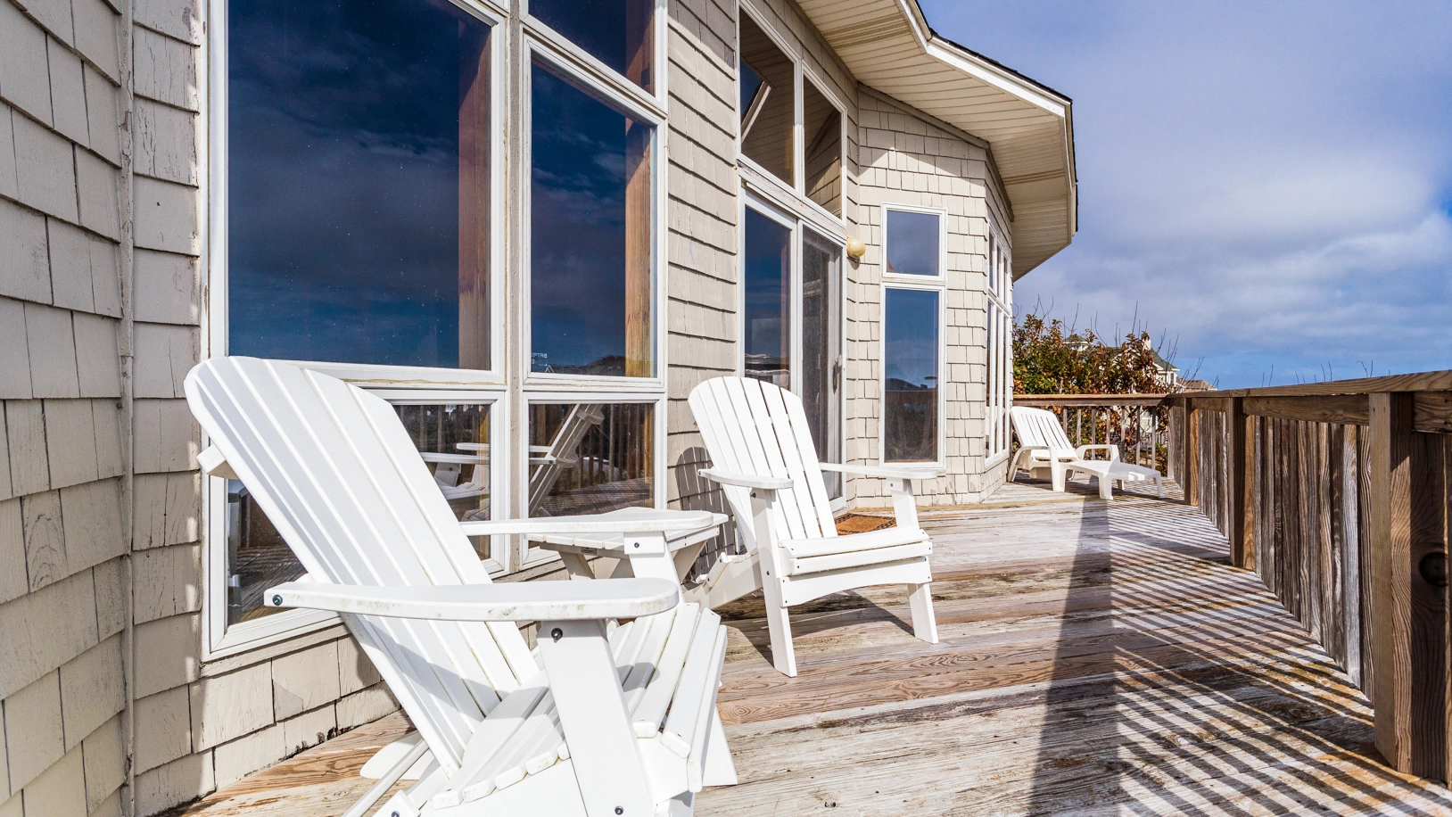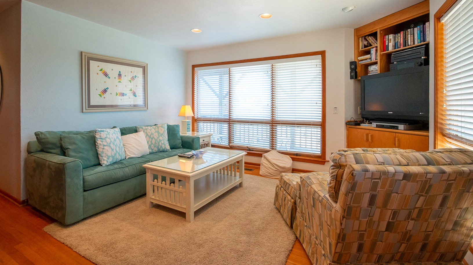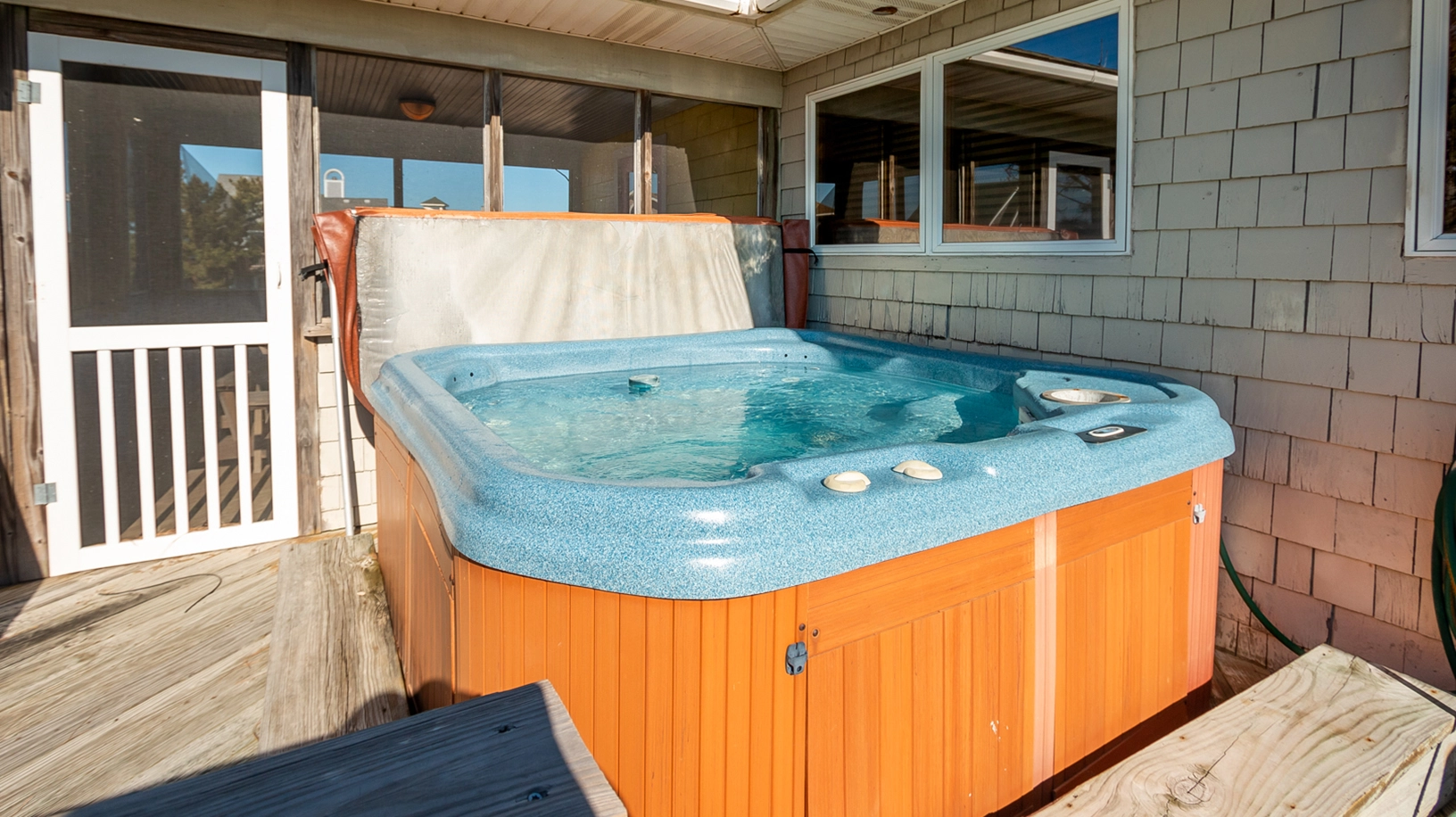 "This house is located on a unique lot - set up high and away from other houses. This gives it great views, still a feeling of privacy when inside and also a feeling of being in a natural beach setting. The main room with plentiful windows on 3 sides and the hot tub with sunset views are excellent features. All the bedrooms are spacious for a beach house. There are a few things in the house that need updating. However, overall the house has "great bones". This makes for a very pleasant visit."
