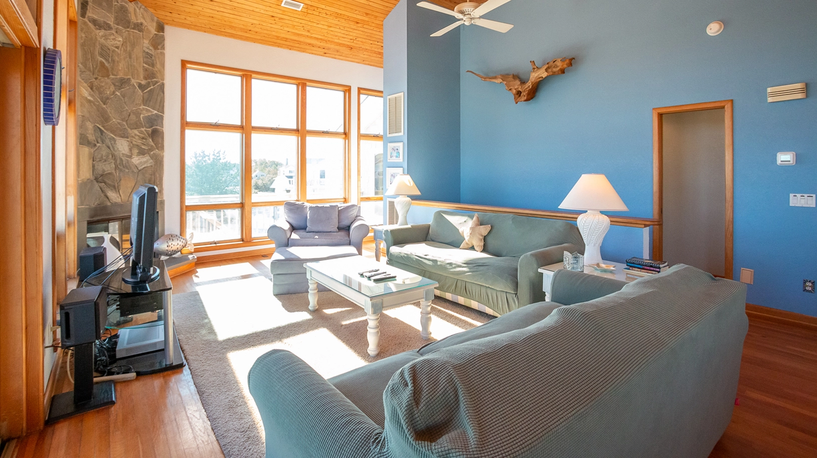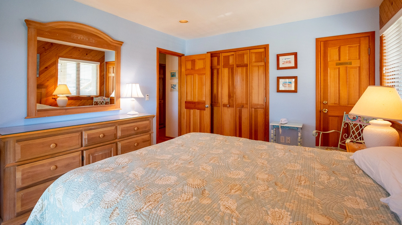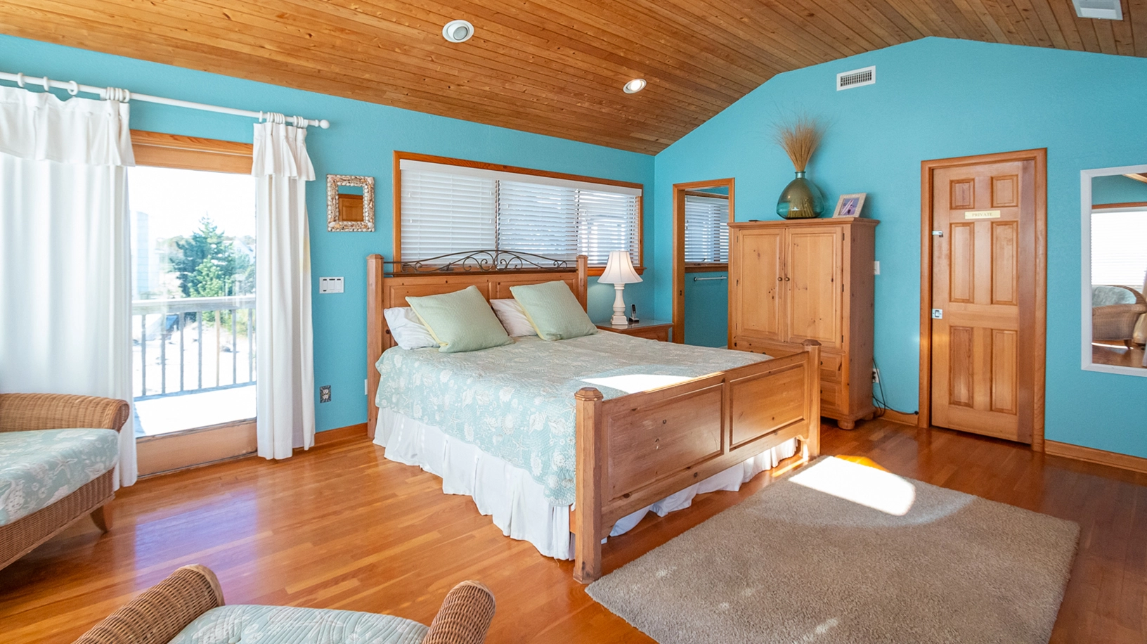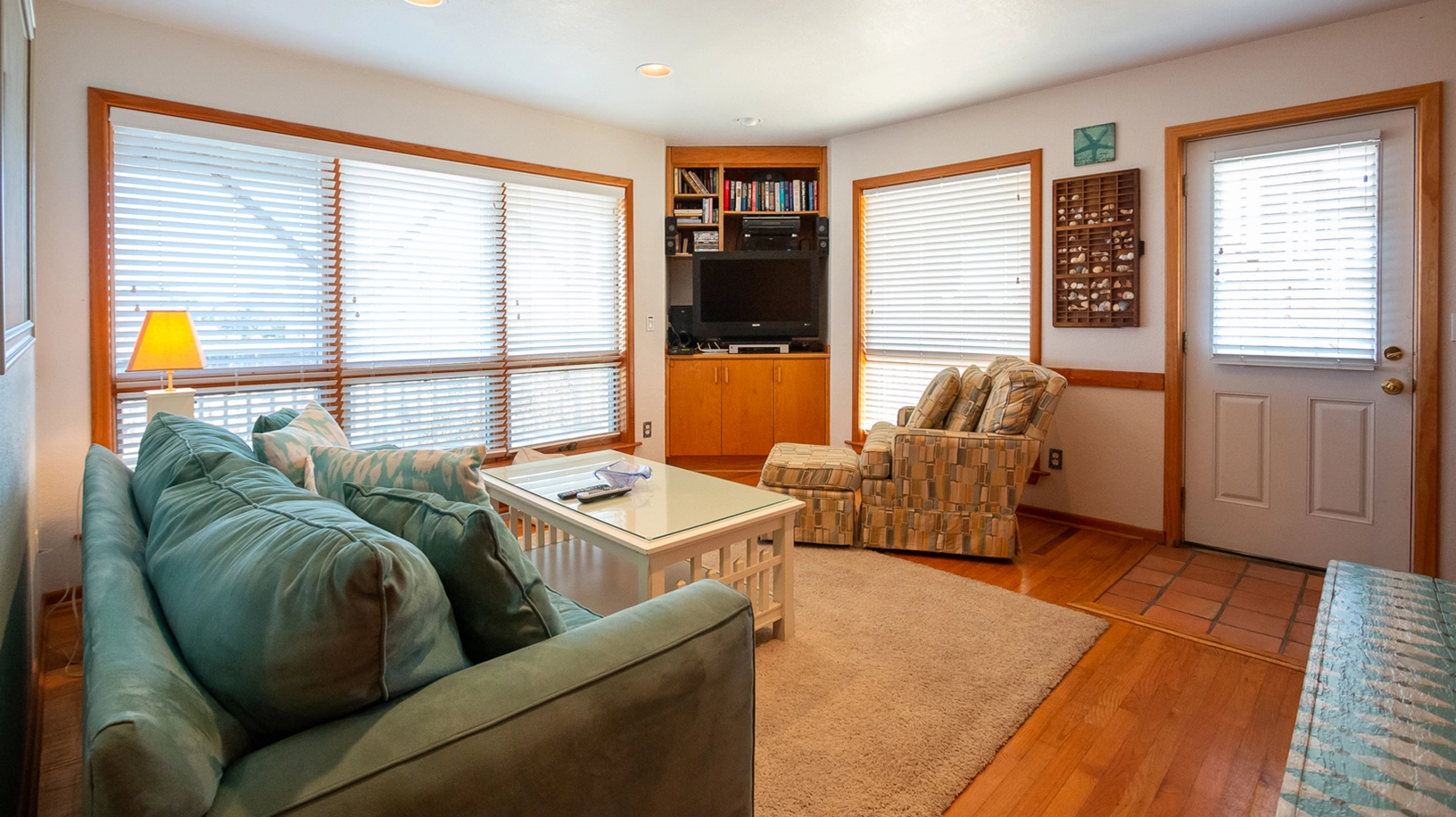 "This house is located on a unique lot - set up high and away from other houses. This gives it great views, still a feeling of privacy when inside and also a feeling of being in a natural beach setting. The main room with plentiful windows on 3 sides and the hot tub with sunset views are excellent features. All the bedrooms are spacious for a beach house. There are a few things in the house that need updating. However, overall the house has "great bones". This makes for a very pleasant visit."