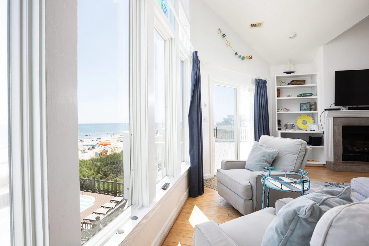 "Amazing kitchen!! The long family table was perfect for our group of 14, to bring us together to share dinners and board games. Loved the big picture window to watch the ocean while prepping meals and shaking cocktails! Kitchen was well appointed, new appliances and the icemaker was a real bonus!! Having two dishwashers in the main kitchen was very helpful. Along with an additional full refrigerator on the lower level and beverage fridge. The pooltable and poker table were great too. Beds clean and comfortable, with good bedding. We loved the large couch and swivel chairs in the living room too. The location was perfect! Loved being able to walk to a few shops and of course being beachfront is the best! Nice new decking and we enjoyed the pool and hot tub too. Beach chairs were in good condition, and we loved the Director style chairs on the top deck, great for watching the sunrise and dolphins. And we were able to see many beautiful sunset from the deck as well. Thank you Twiddy and Seven Buoys for an awesome week in OBX!"