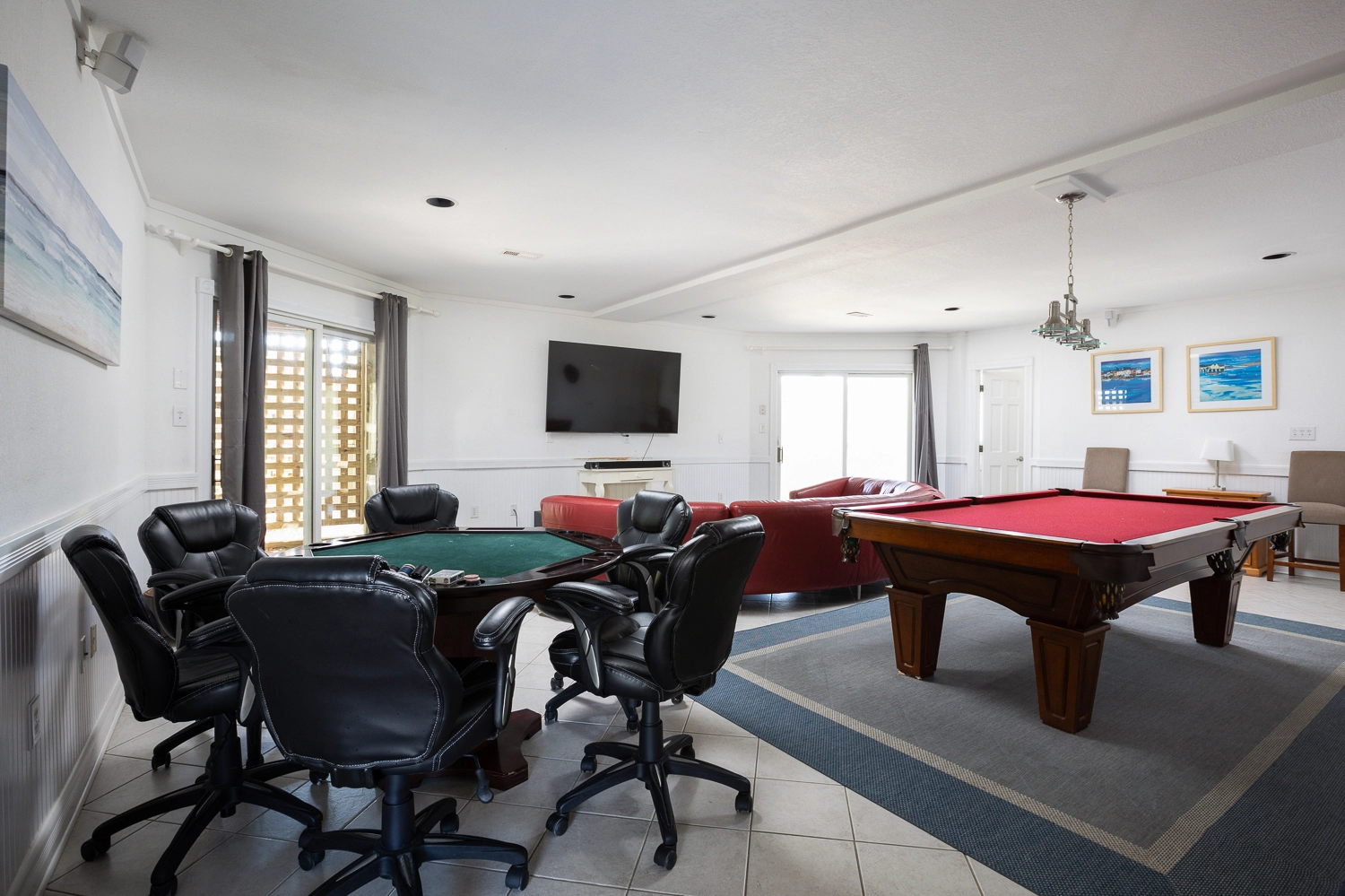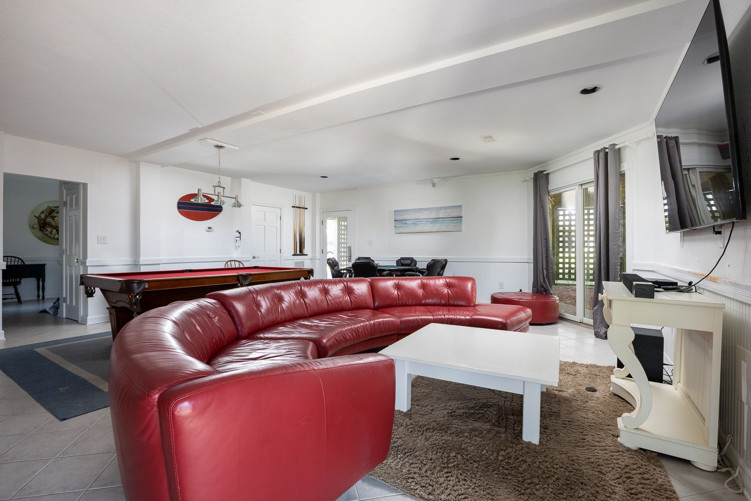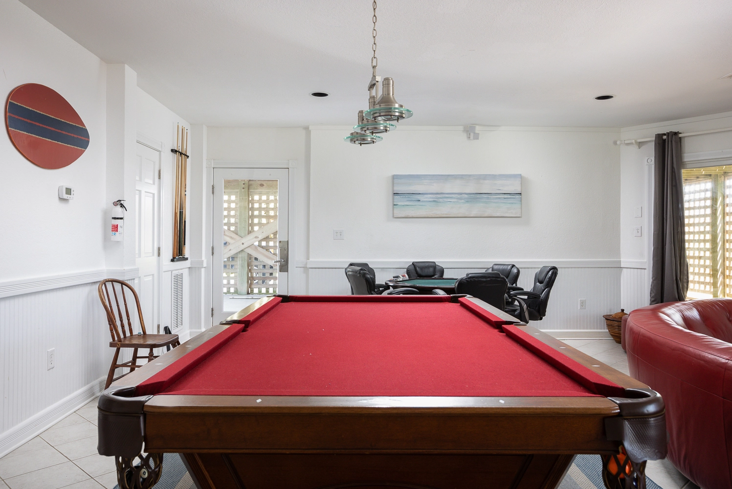 "Great beach access. Large table. Plenty of room. Pool table. Card table"