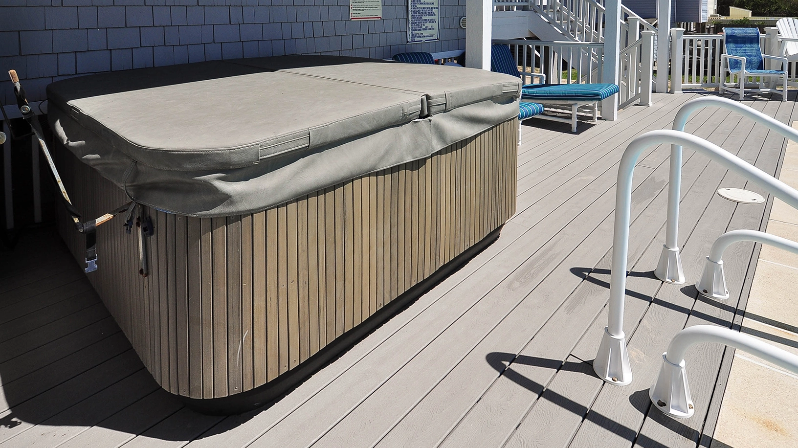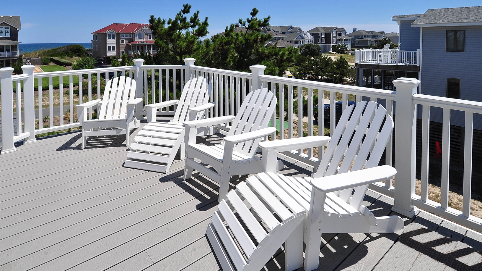 "Lovely house in a nice location near the beach. Real dinner plates and silverware. Great pots and pans. Lots of seating at the kitchen table. The decks are all covered with plastic boards so your kids don't get splinters in their feet!"