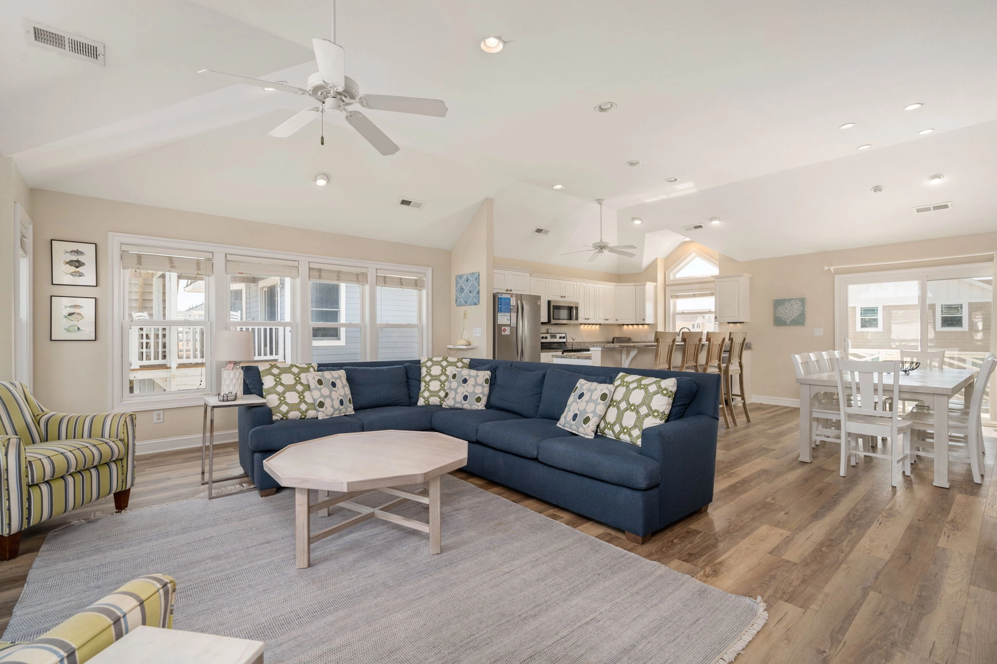 "We've stayed in this house for 4 years in a row now, and will continue to for the foreseeable future! The close proximity (one house down) from the beach access, views of the ocean from the back deck, and ample space for everyone in the house make it a great place to stay. Our one and only gripe: the internet leaves much to be desired. But that's if we have to nitpick!"