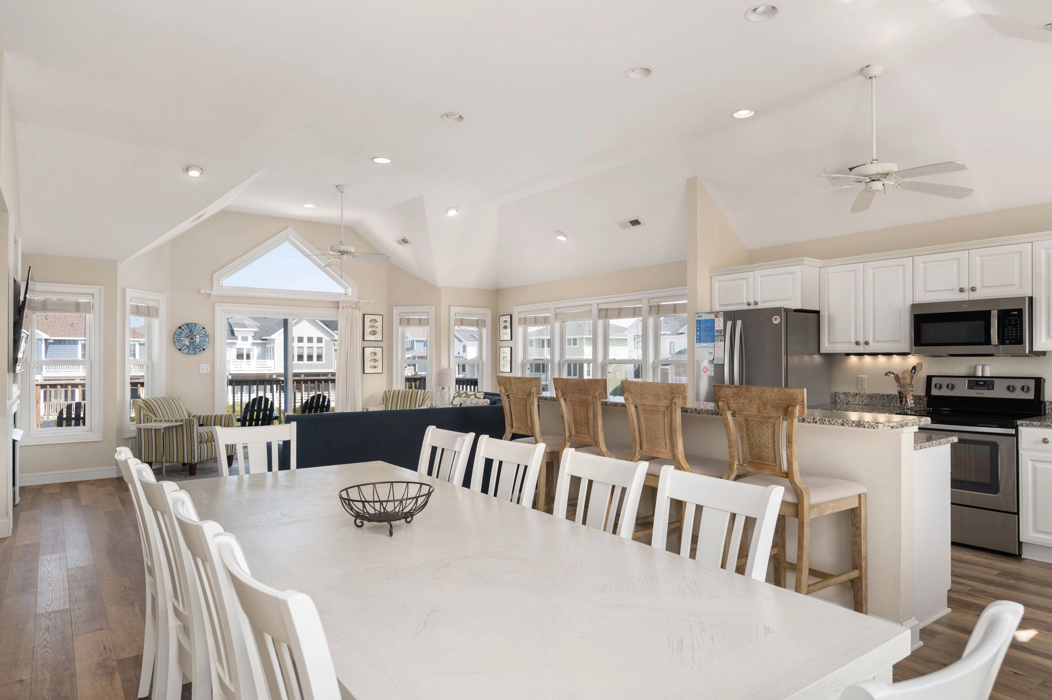 Great room; kitchen; dining area with seating for 18.
