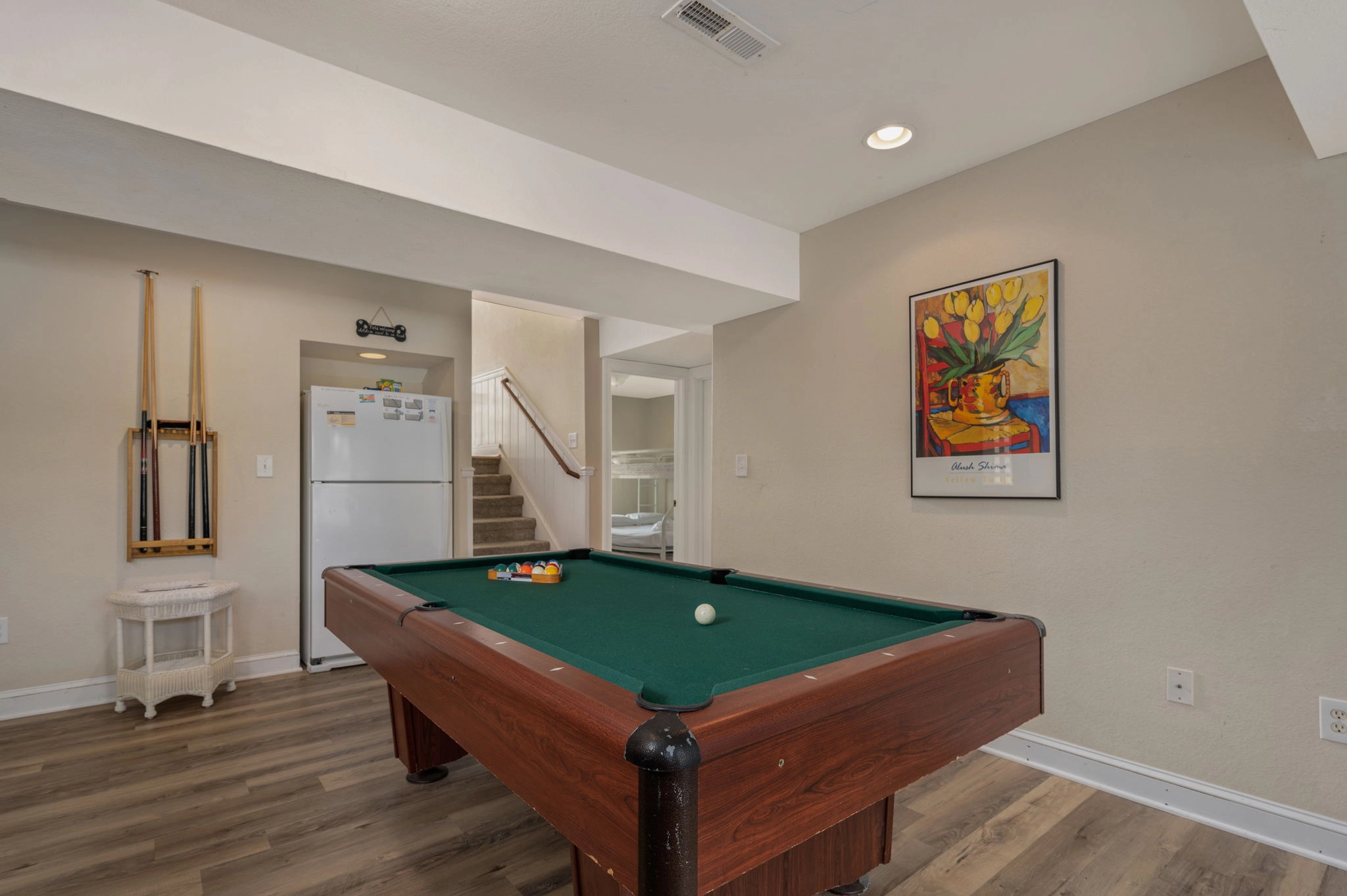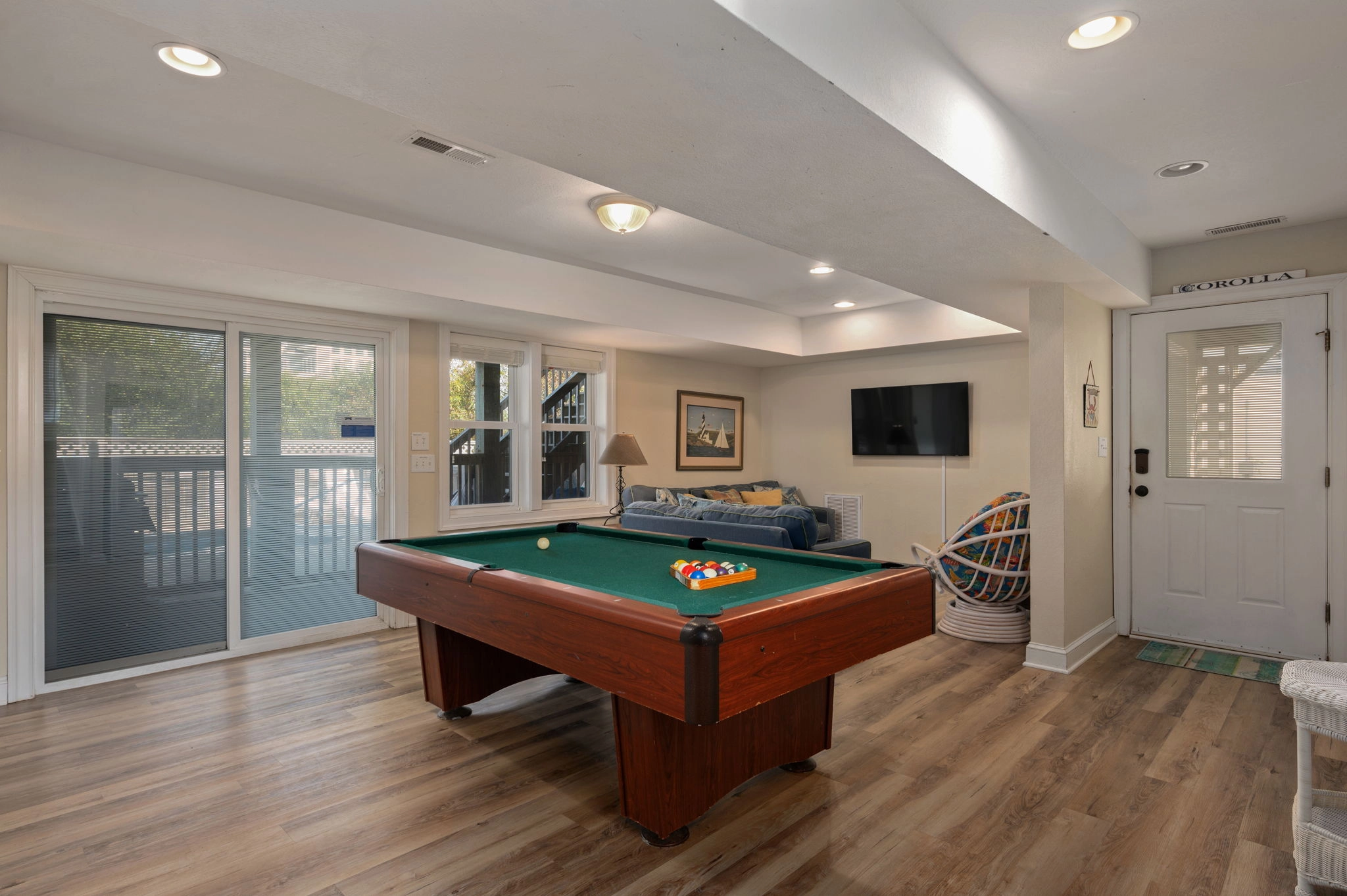 Rec room with pool table.