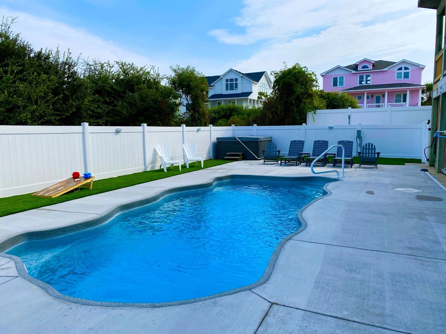 "House was spacious, well stocked, and close to the beach. Pool and hot tub area was nice and the gas grill was very nice. 2 refrigerators are great for keeping lots of cold drinks on hand."