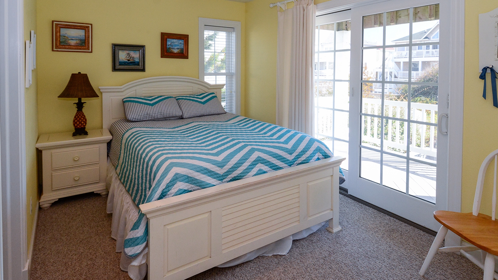 Queen, Shared bath with room 2, Shower/tub combo, Deck access