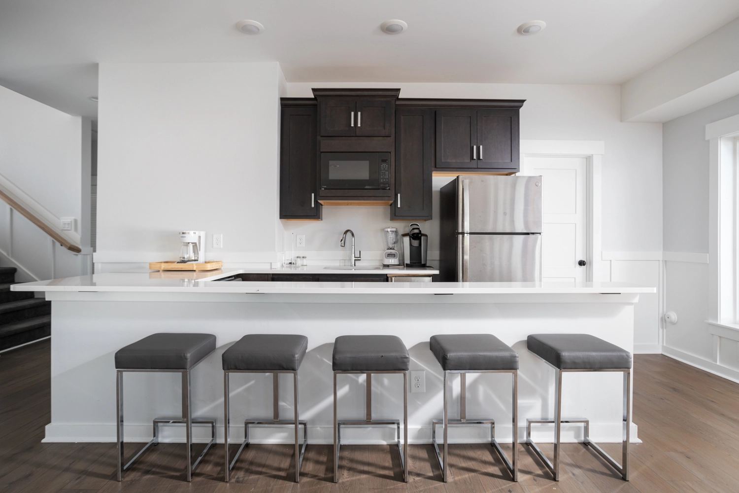 "new, clean, great location, bright, spacious and great kitchen for large crowds."