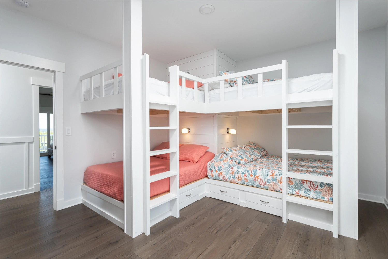 2 Double Bunk Sets, Shower/tub combo, Deck access