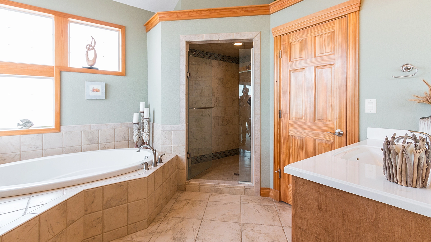 "5 master bedrooms and every bedroom has its own bathroom. Hot tub is a bonus and two dishwashers is amazing!!"