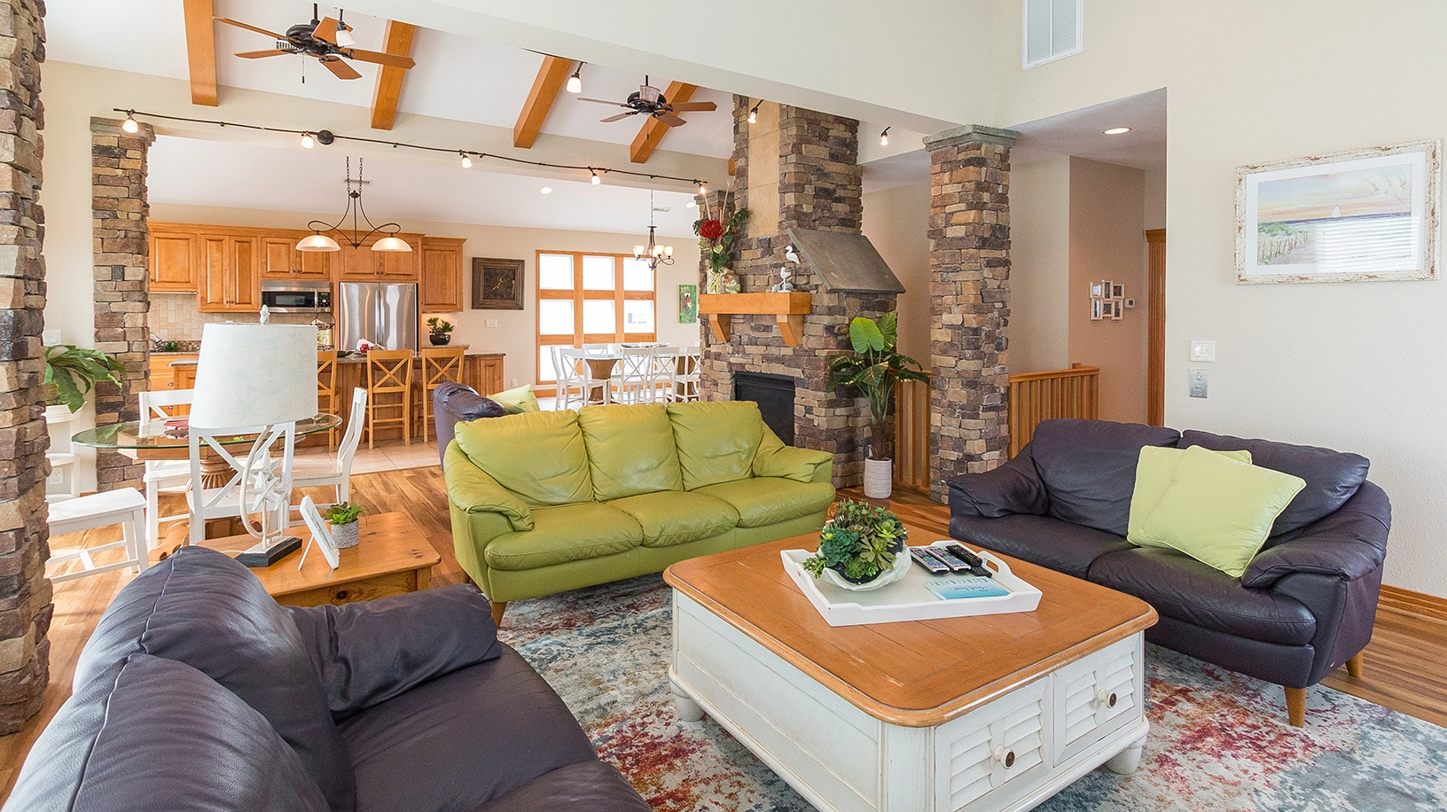 "Plenty of beds and bathrooms, plenty of seating, storage, comfortable furnishings and decor!"