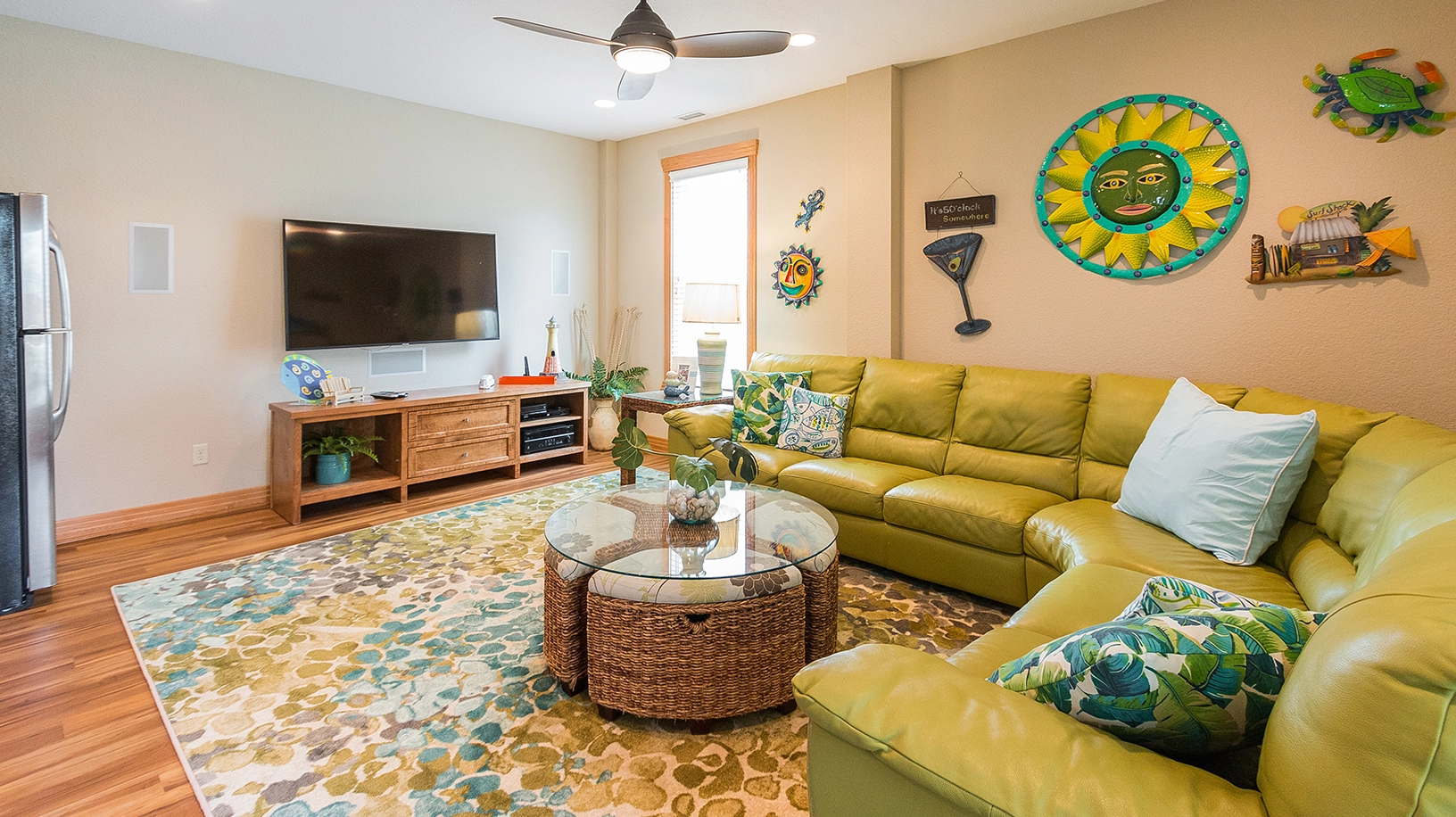"We love everything about the home. It is well-built with high quality materials so each room is insulated. The elevator is very helpful when moving in and out. The kitchen is well stocked with 2 dishwashers. There is plenty of room to spread out with more room on the deck and tiki bar. It is a short walk to the beach or neighborhood pool. We can’t wait to return next summer!"