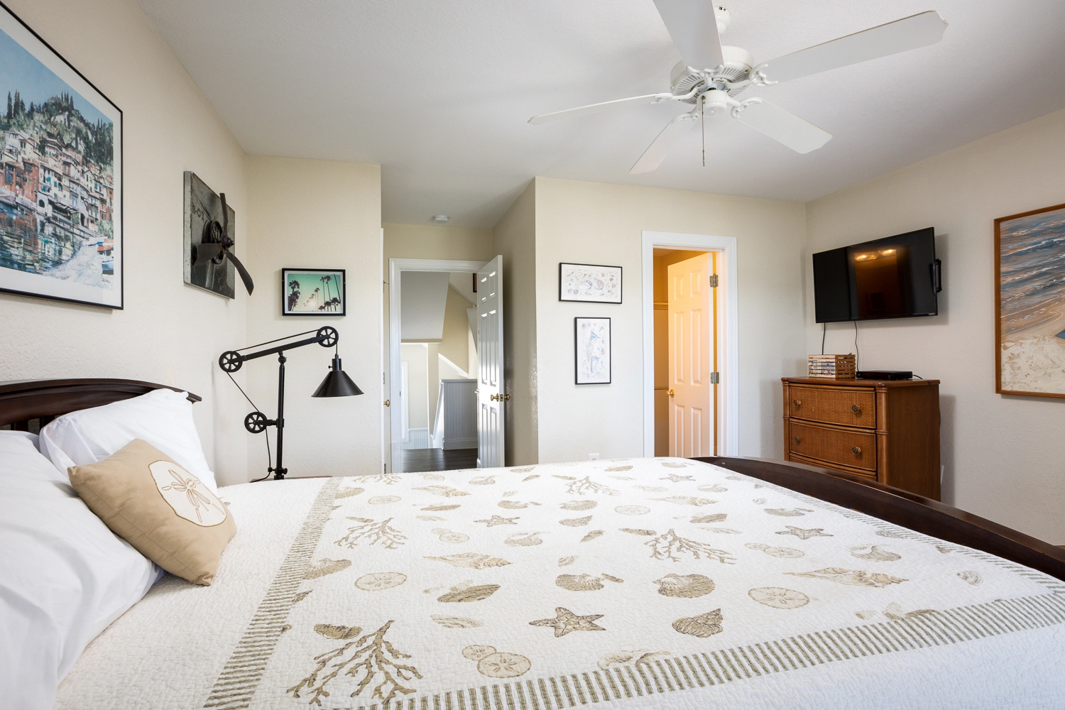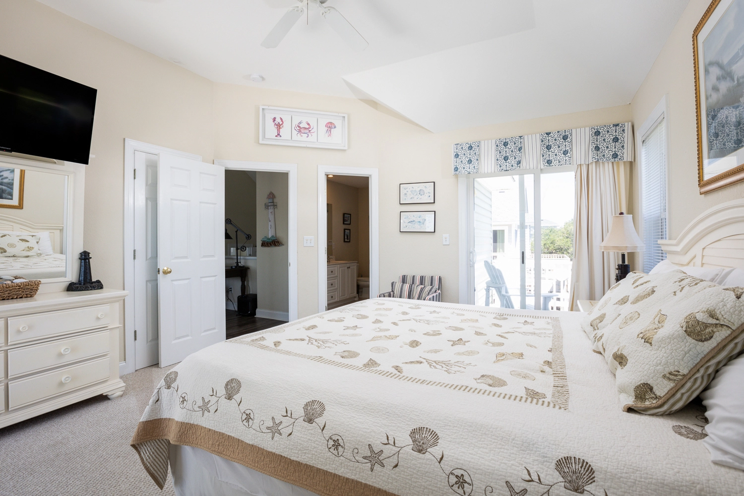 "Pond and sunset views. Proximity to food, stores and gas. Short walk to the beach. Plenty of balconies to 'escape' to. King size beds."