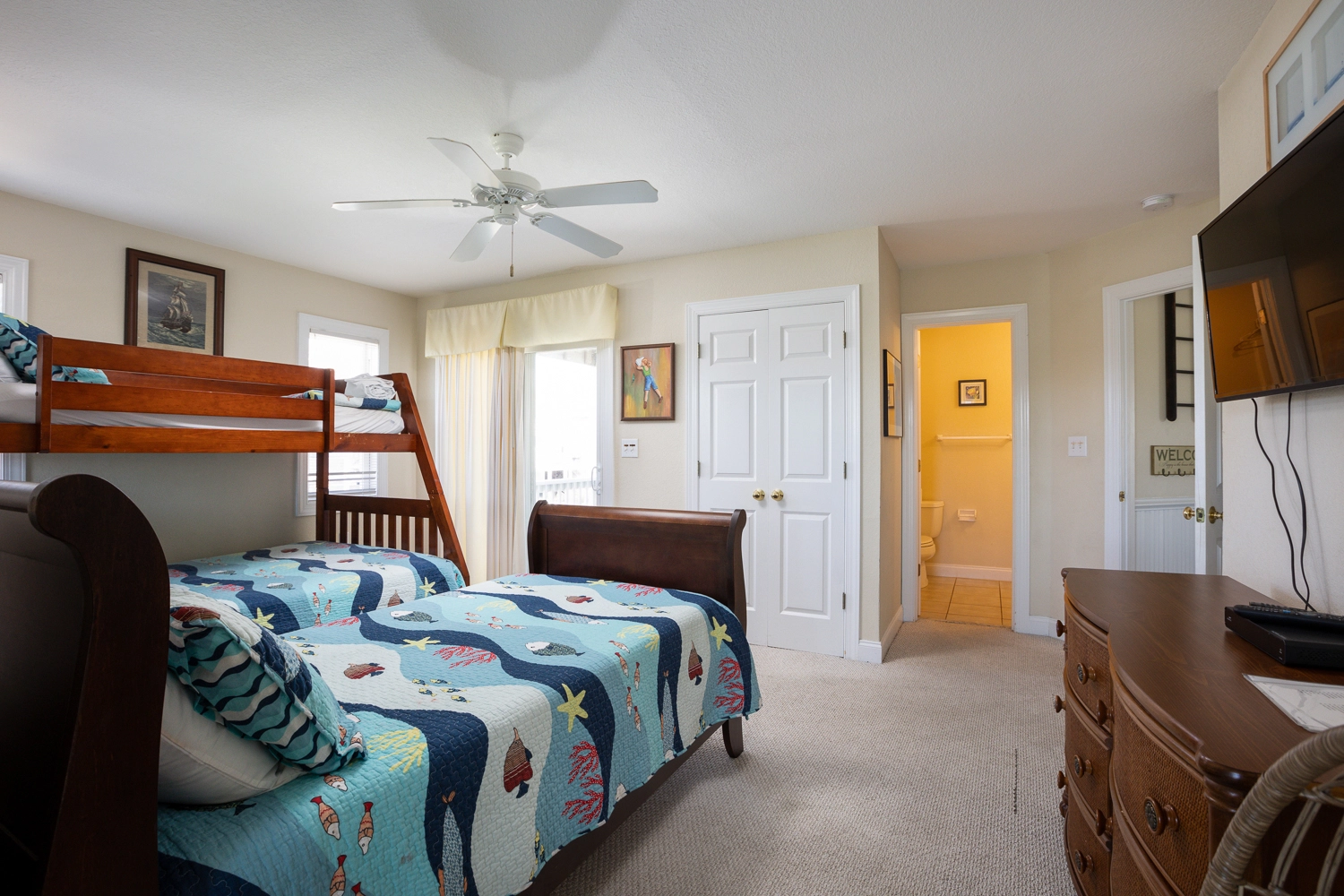 "Location was great. We especially enjoyed the view off the back upper deck and the pool. House is well appointed. Would have preferred another master r ather than two rooms of bunks. All in all great vacation spot."