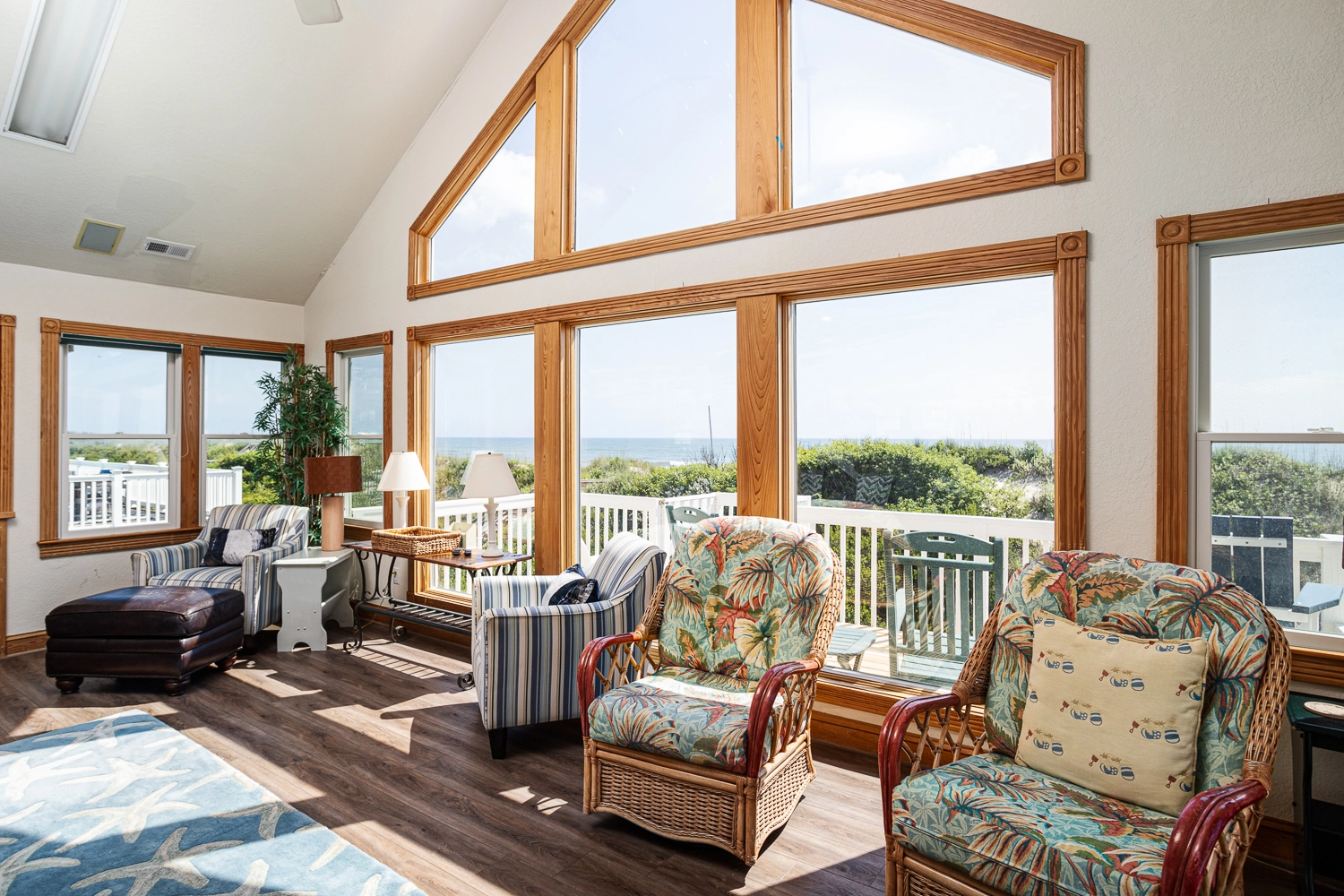 Entertainment center, ocean views; deck on west side for afternoon sunbathing.