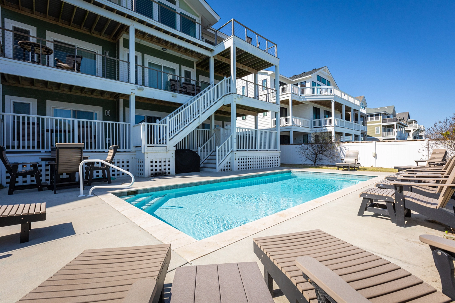 Private saltwater pool, hot tub, corn hole, community pool.