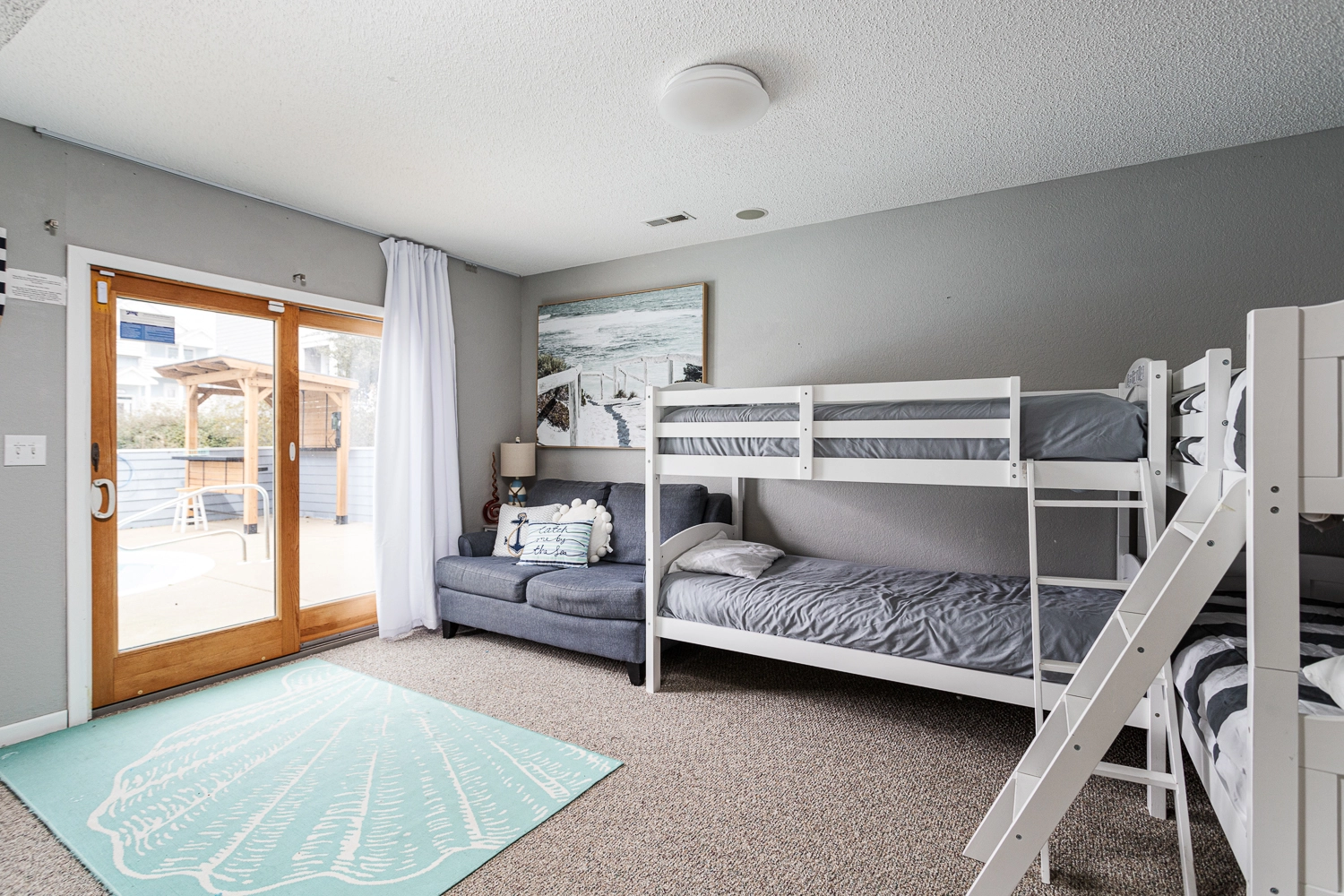 2 Bunk Sets, Shared bath with room 1, Shower/tub combo, Deck access